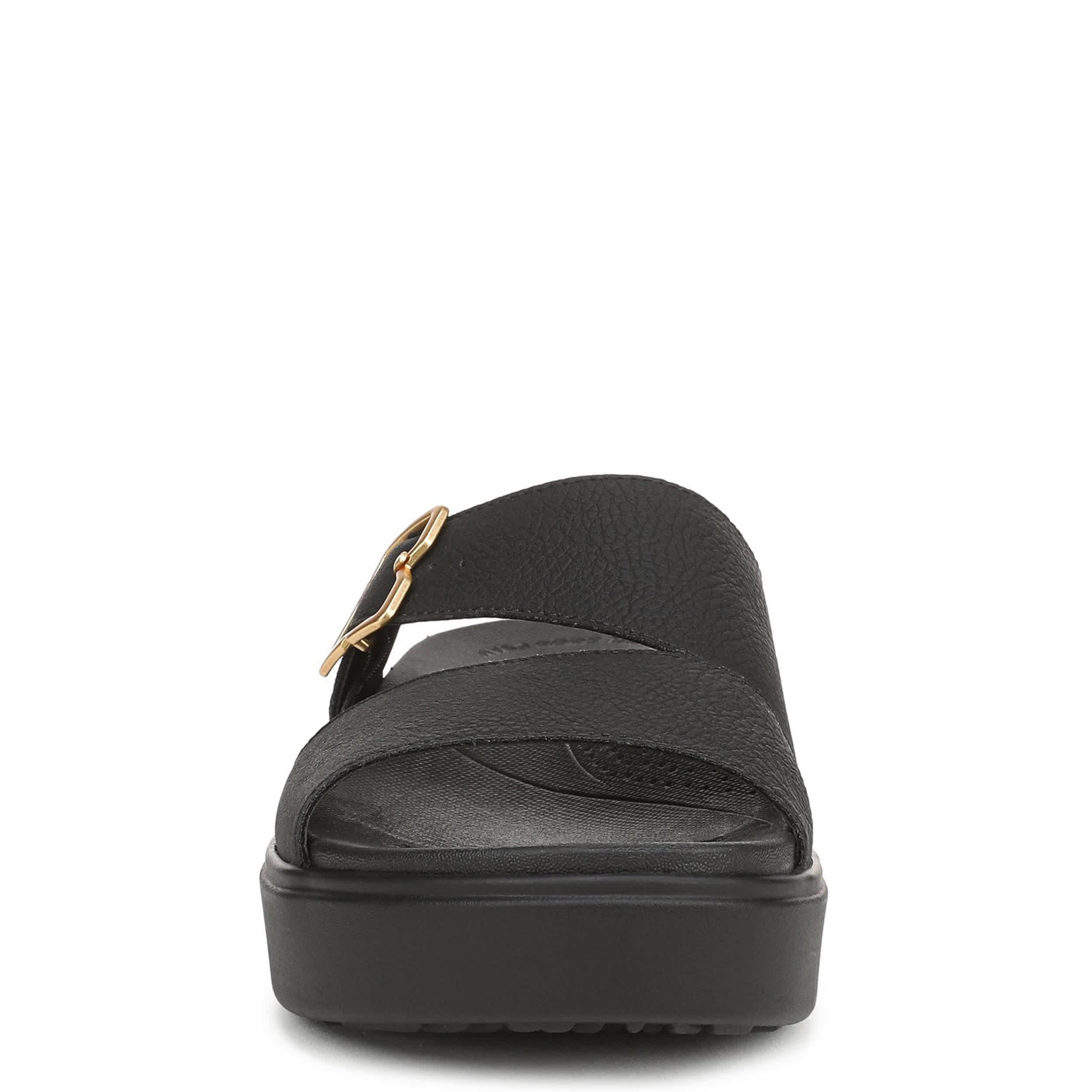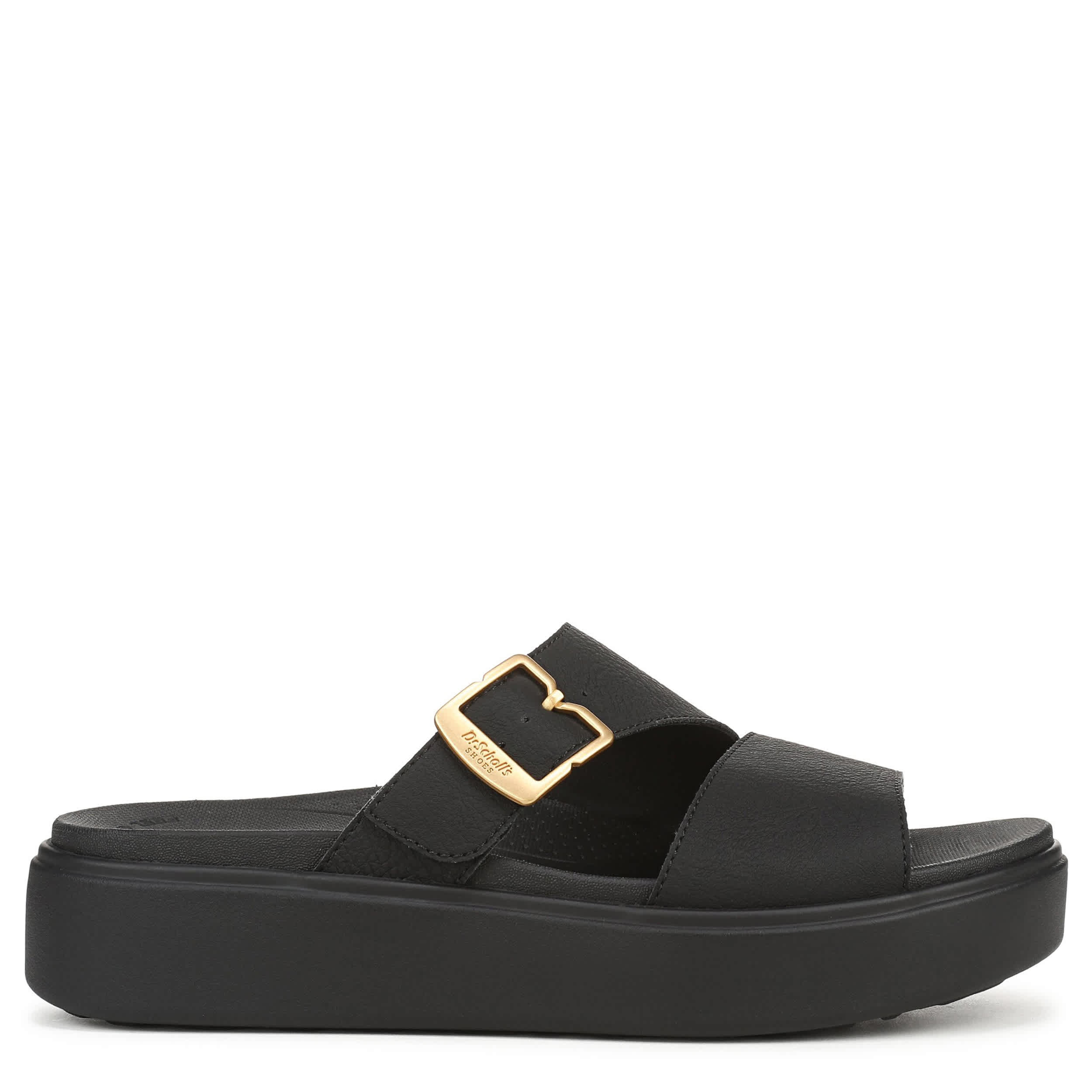 Trend-forward and still oh so comfy with a cloud-like platform, the Madison Cloud slide sandal is a plush remix of the popular Madison Cloud sneaker from Dr. Scholl's. Featuring a faux leather upper with wide straps, this easy-on must-have is ultra-flexible. The Feel Good Foam provides effortless support, while the lightweight outsole moves with you.