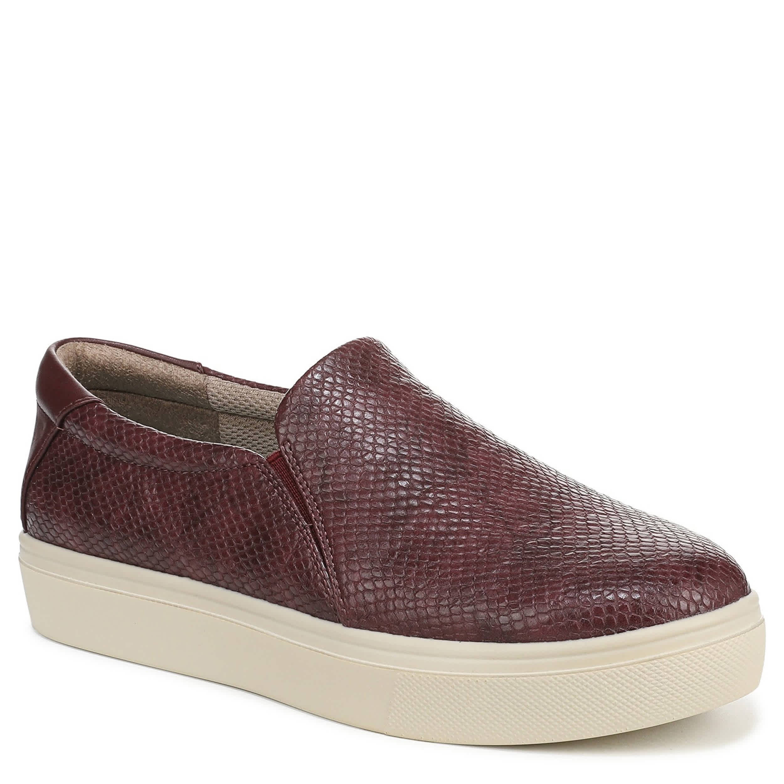 Walk on cloud nine in the Madison Cloud slip-on sneaker from Dr. Scholl's. Featuring a canvas, faux leather or microfiber upper with flexible goring, this shoe is simple to slip on and off. The anti-microbial, anti-odor Insole Technology and durable outsole provide fresh support, while the platform design keeps you lifted in style.