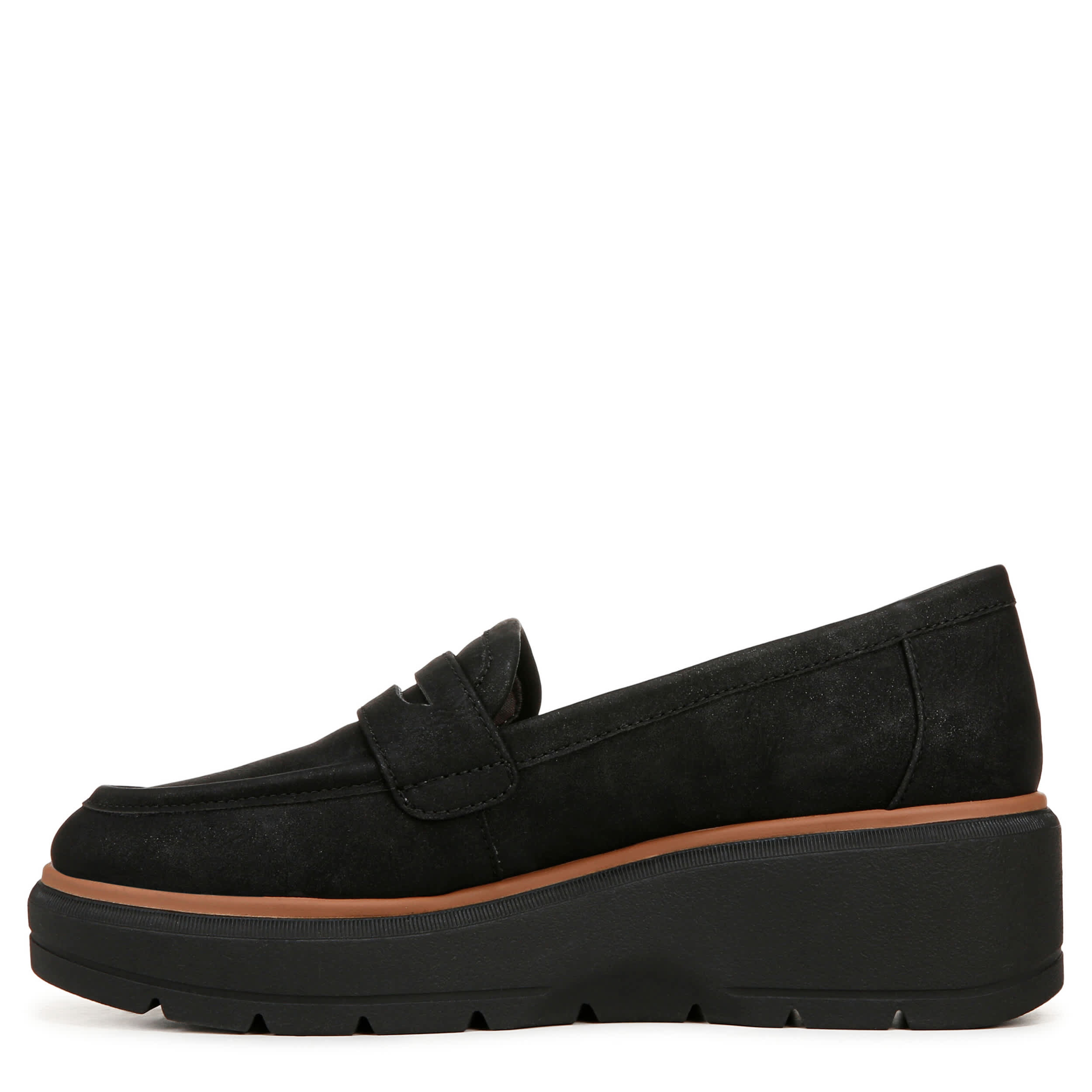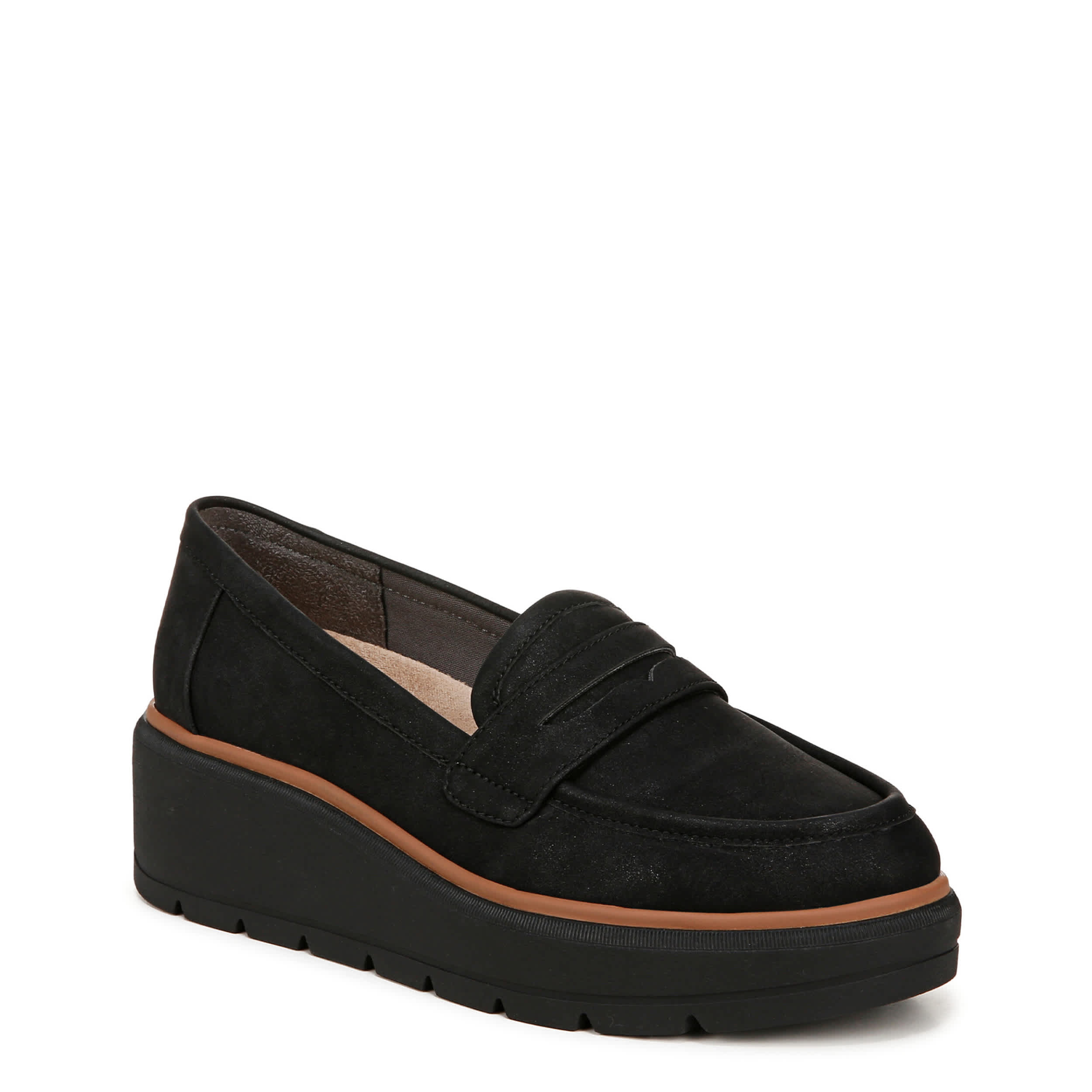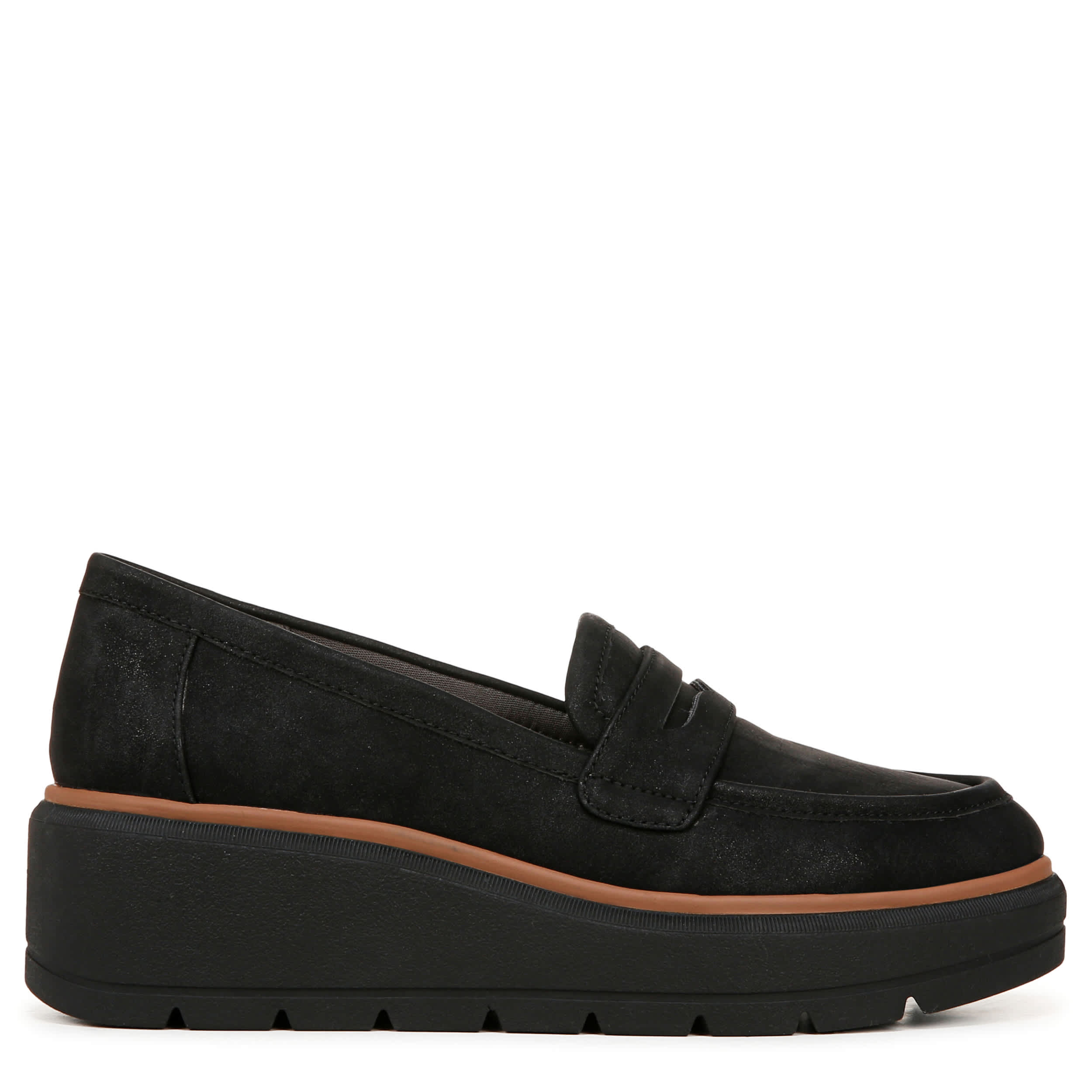 Wedge in some cool with the Nice Day Max loafer from Dr. Scholl's. Featuring a faux leather upper with penny strap detail for a extra preppy style, this platform wedge is innovative. The Insole Technology is anti-microbial and anti-odor with 15% BLOOM® foam cushioning & arch support.