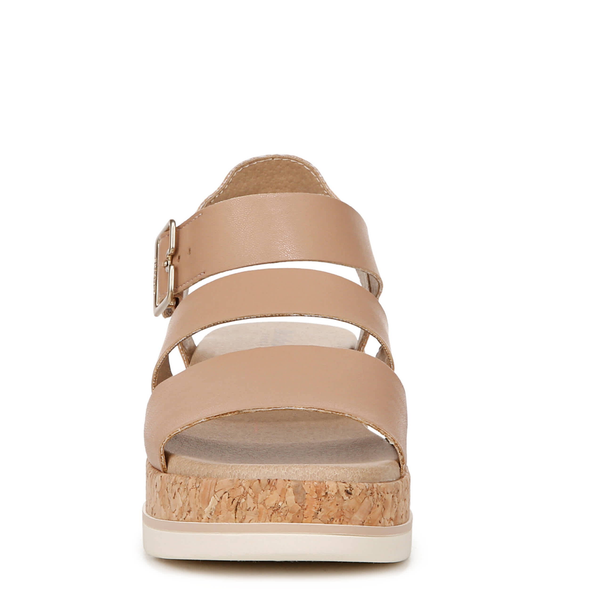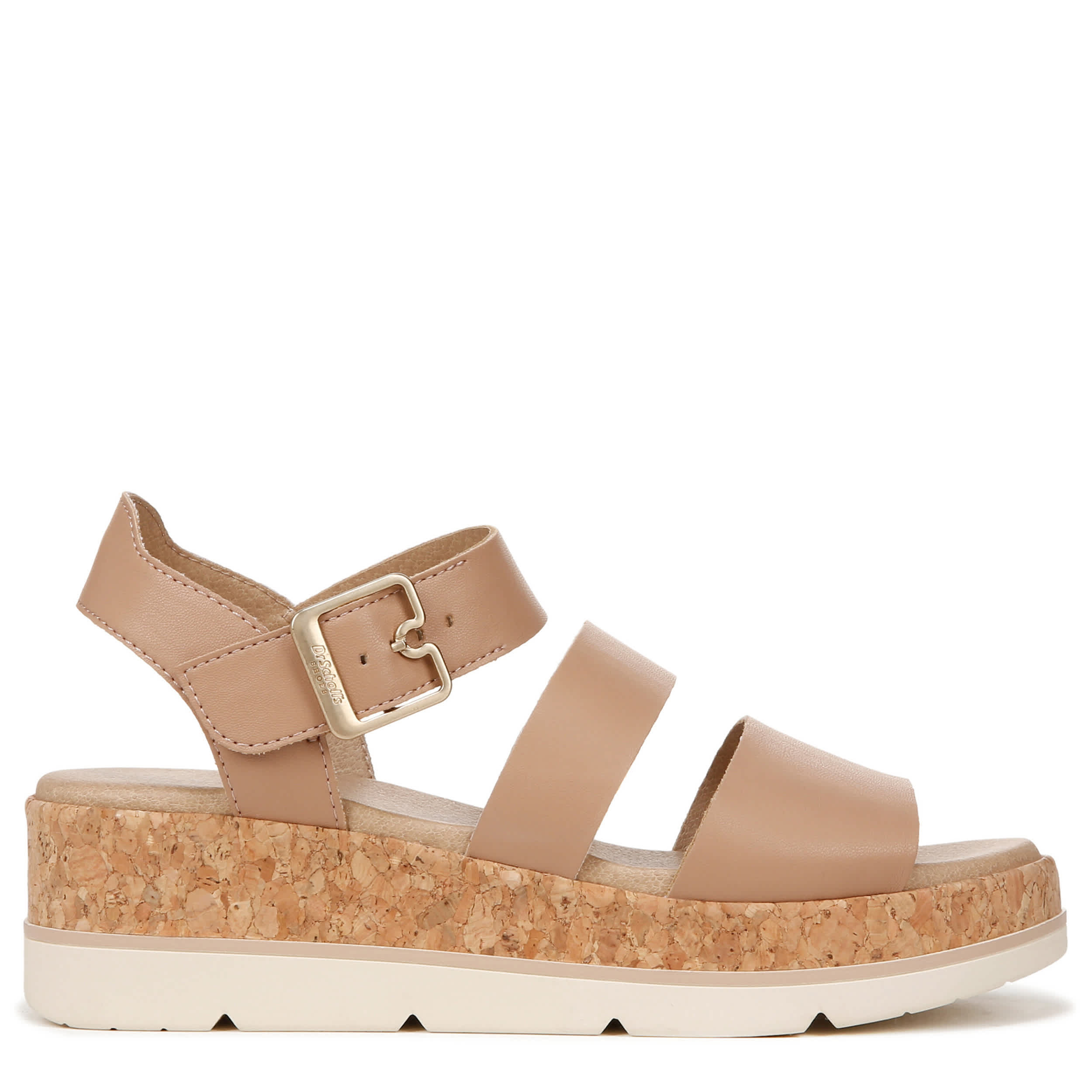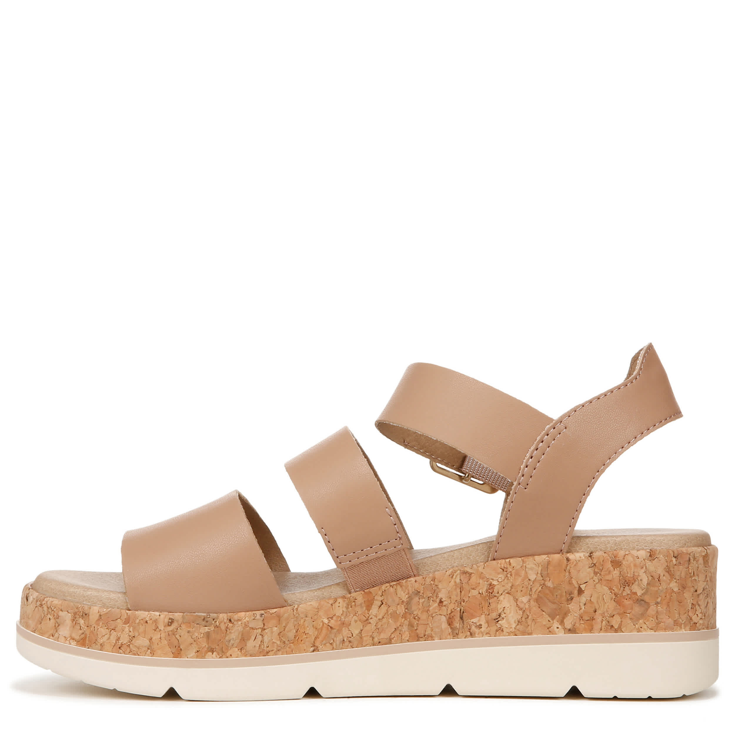 Every summer needs a new everyday favorite. Meet the Once Twice women's sandal from Dr. Scholl's. Featuring a faux leather or fabric & faux leather upper with a cork-like detail for extra style, this espadrille sandal also has stretch gore and a platform wedge heel. The anti-microbial/anti-odor Insole Technology cushions every step while supporting your arch as well.