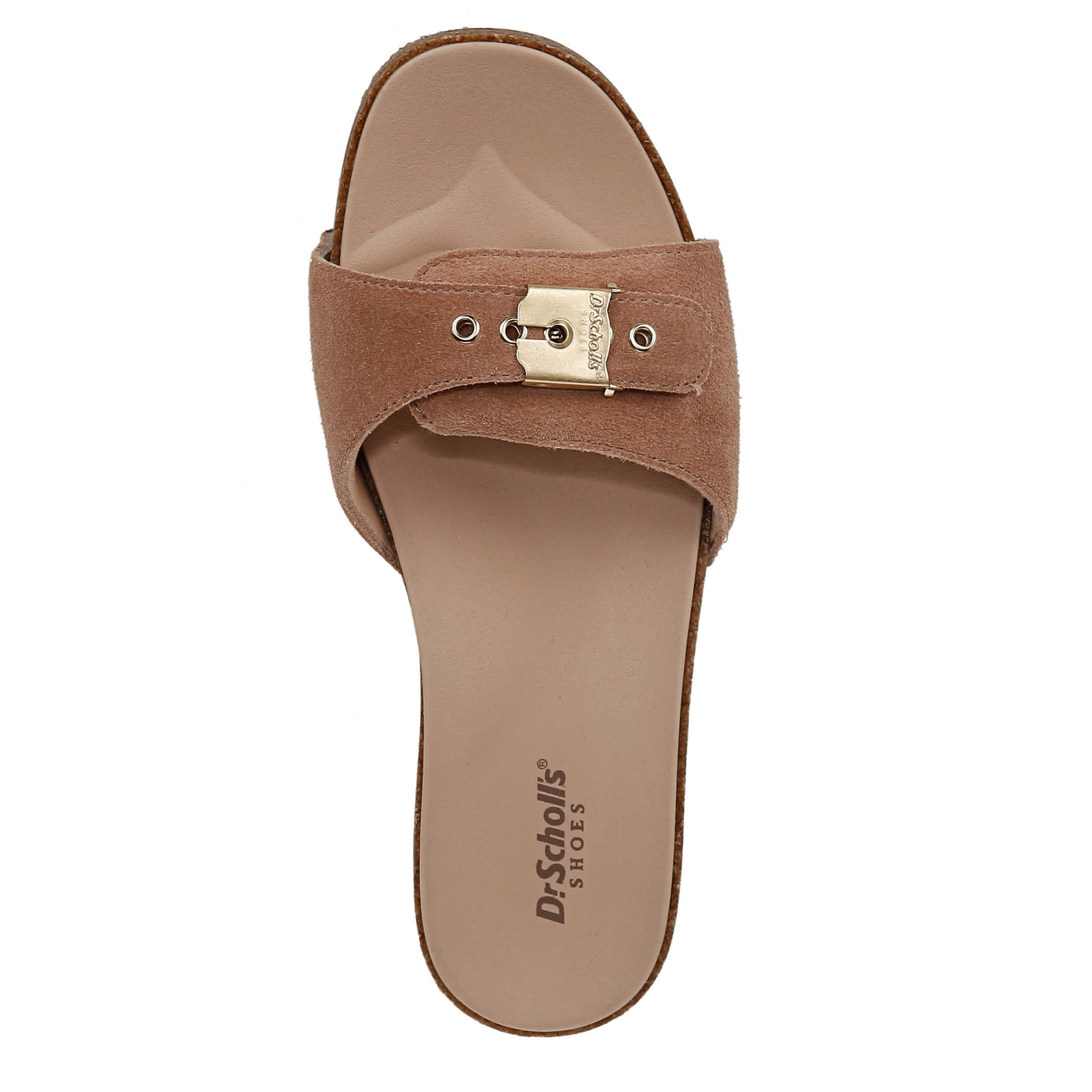 Flex in the updated Original Flex women's flat sandal from Dr. Scholl's. Featuring a leather or suede upper with an adjustable buckle for a secure fit, this sandal also has a superlight sole. The anti-microbial/anti-odor Insole Technology cushions every step while supporting your arch as well.