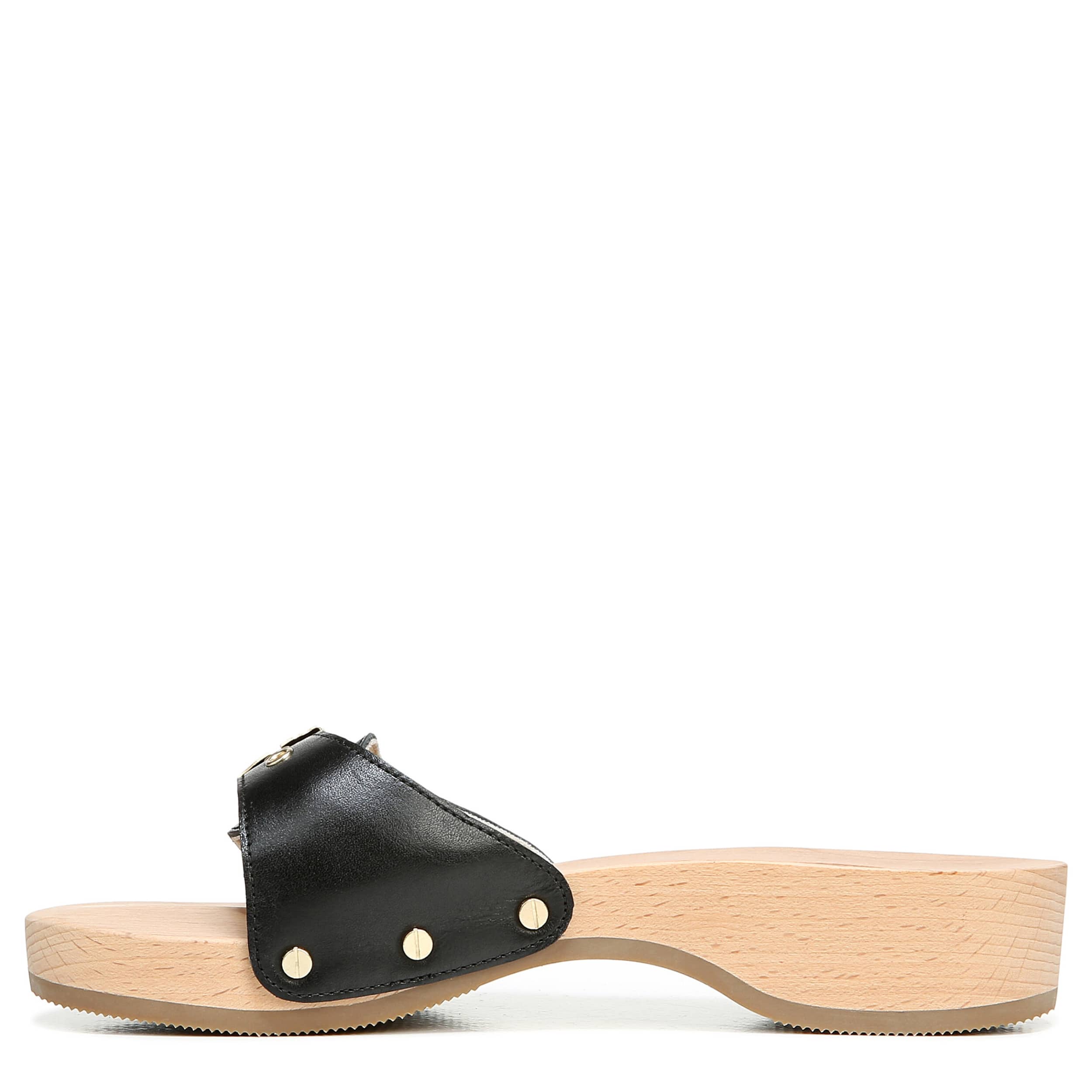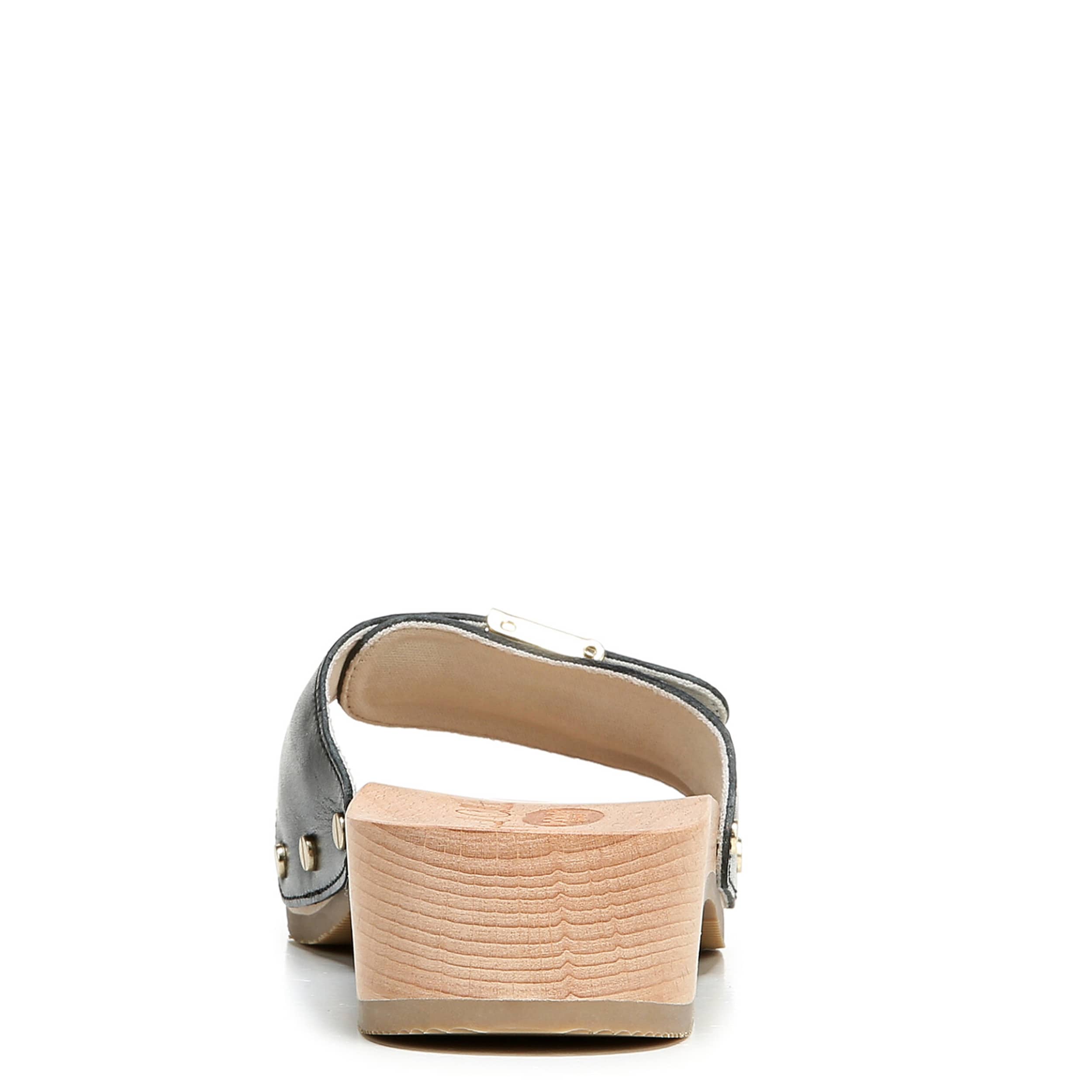 Embrace a classic style with the Dr. Scholl’s Original slide sandal. Featuring a leather upper, this casual slip-on gives both a modern and throwback feel with its adjustable metallic buckle and stud details. The cushioned insole and synthetic sole support your steps, while the wood clog heel completes the look with a little lift.
