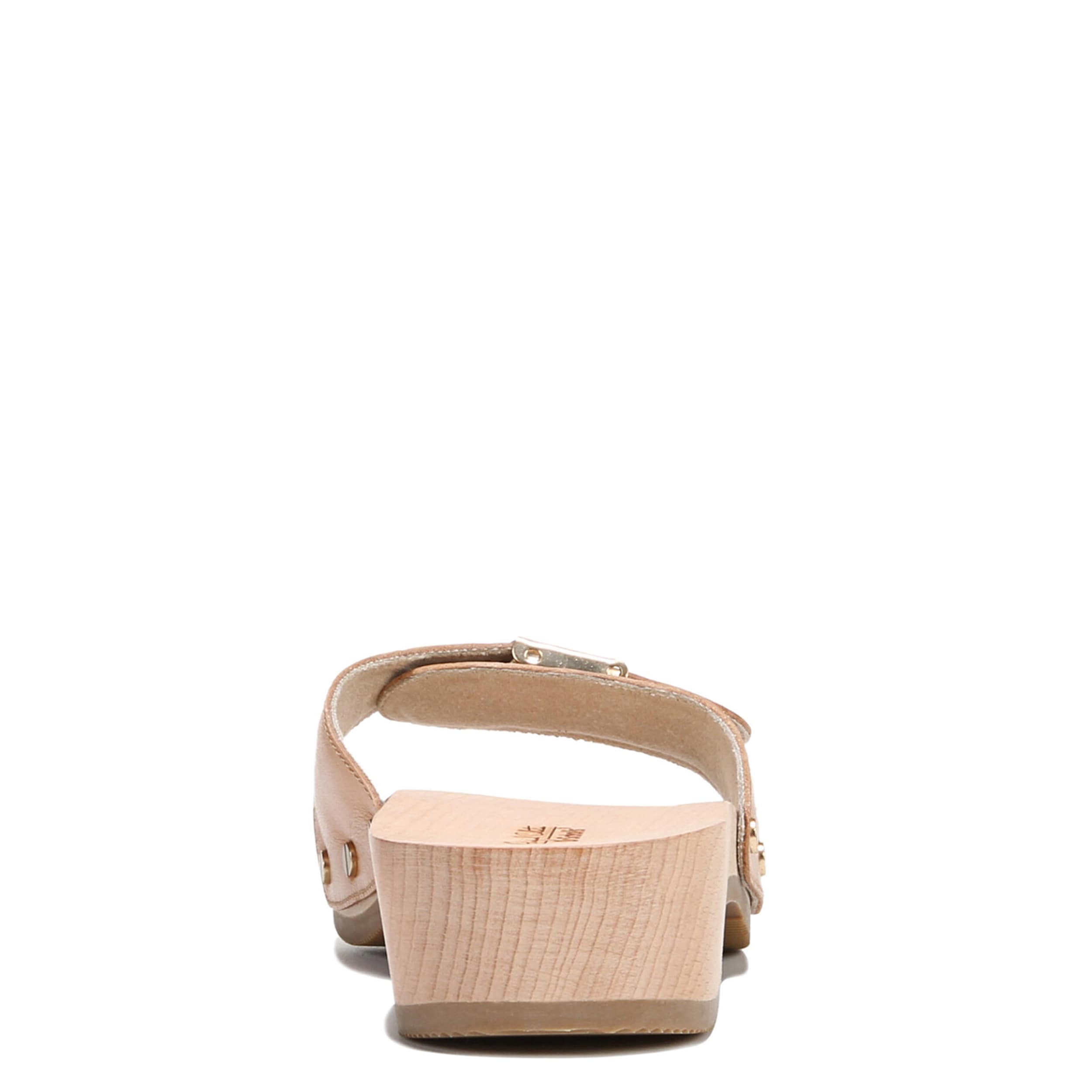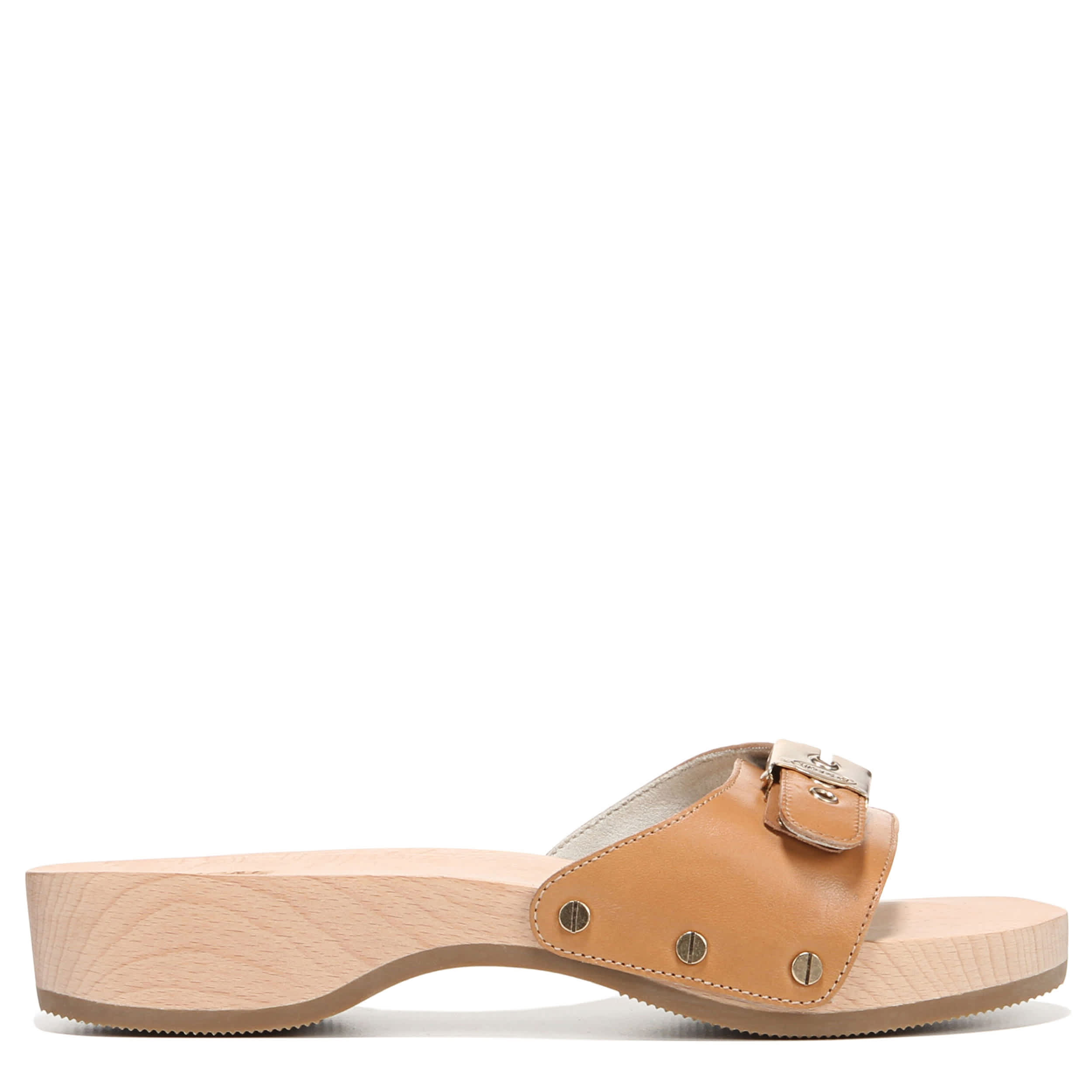 Embrace a classic style with the Dr. Scholl’s Original slide sandal. Featuring a leather upper, this casual slip-on gives both a modern and throwback feel with its adjustable metallic buckle and stud details. The cushioned insole and synthetic sole support your steps, while the wood clog heel completes the look with a little lift.
