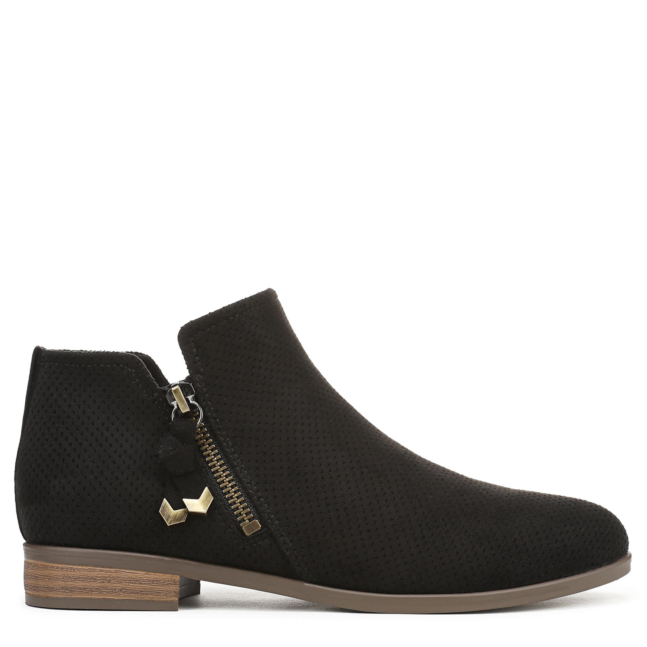 Chic boots for a fun fall in the Reverie women's bootie from Dr. Scholls. Featuring a perforated microfiber upper with inside stretch gore for easy entry, this ankle boot also has a heel pull tab and metallic zipper pull. The Insole Technology is anti-microbial/anti-odor with arch support and 15% algae-infused BLOOM® foam, while the faux cru stacked heel adds subtle lift.