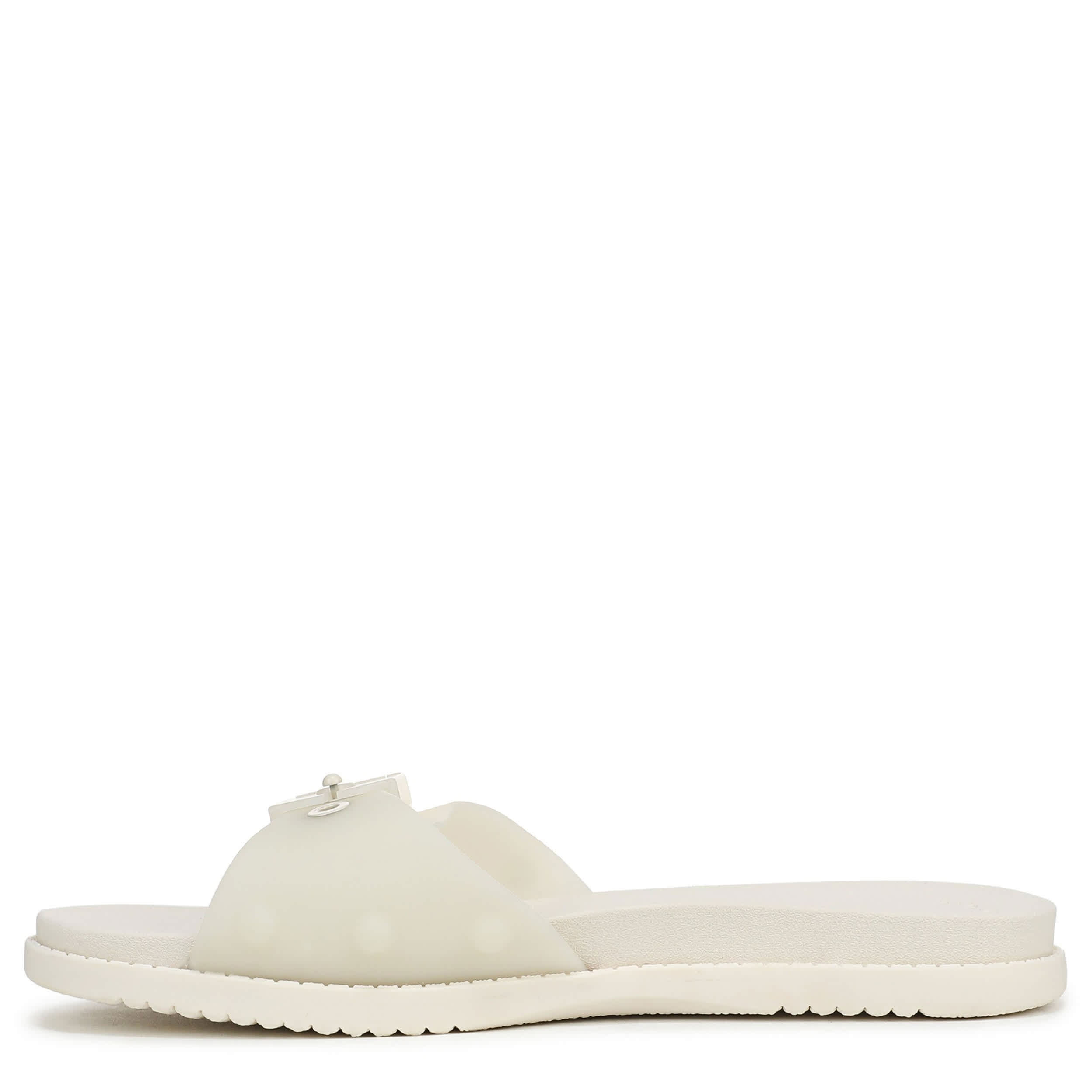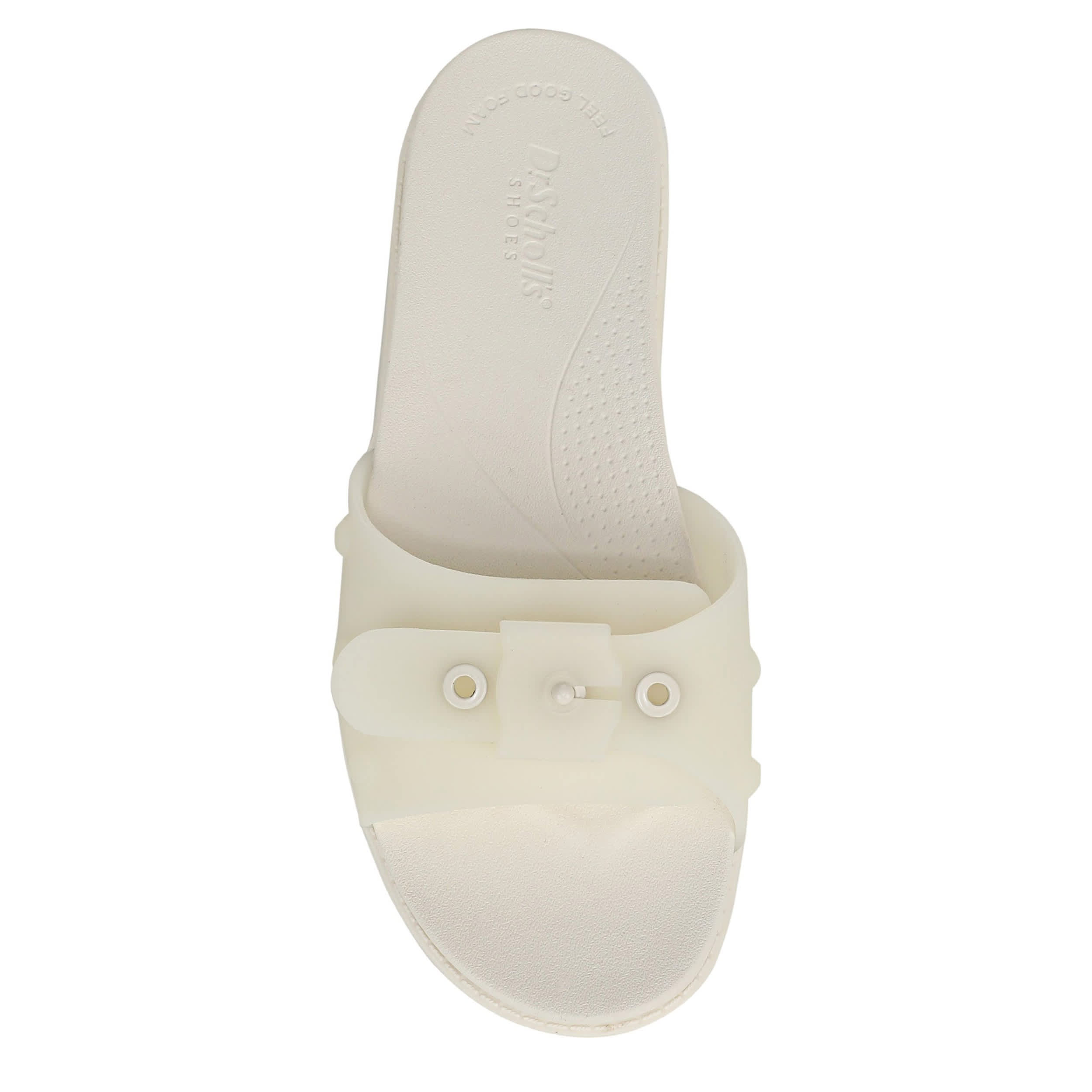 Fill your adventures with sunshine in the So Original women's slide sandal from Dr. Scholl's. Featuring a faux leather or translucent jelly upper with a signature buckle accent for extra style, this slide also has an ultra-flexible sole. The Insole Technology means less pressure and more bounce with every step.