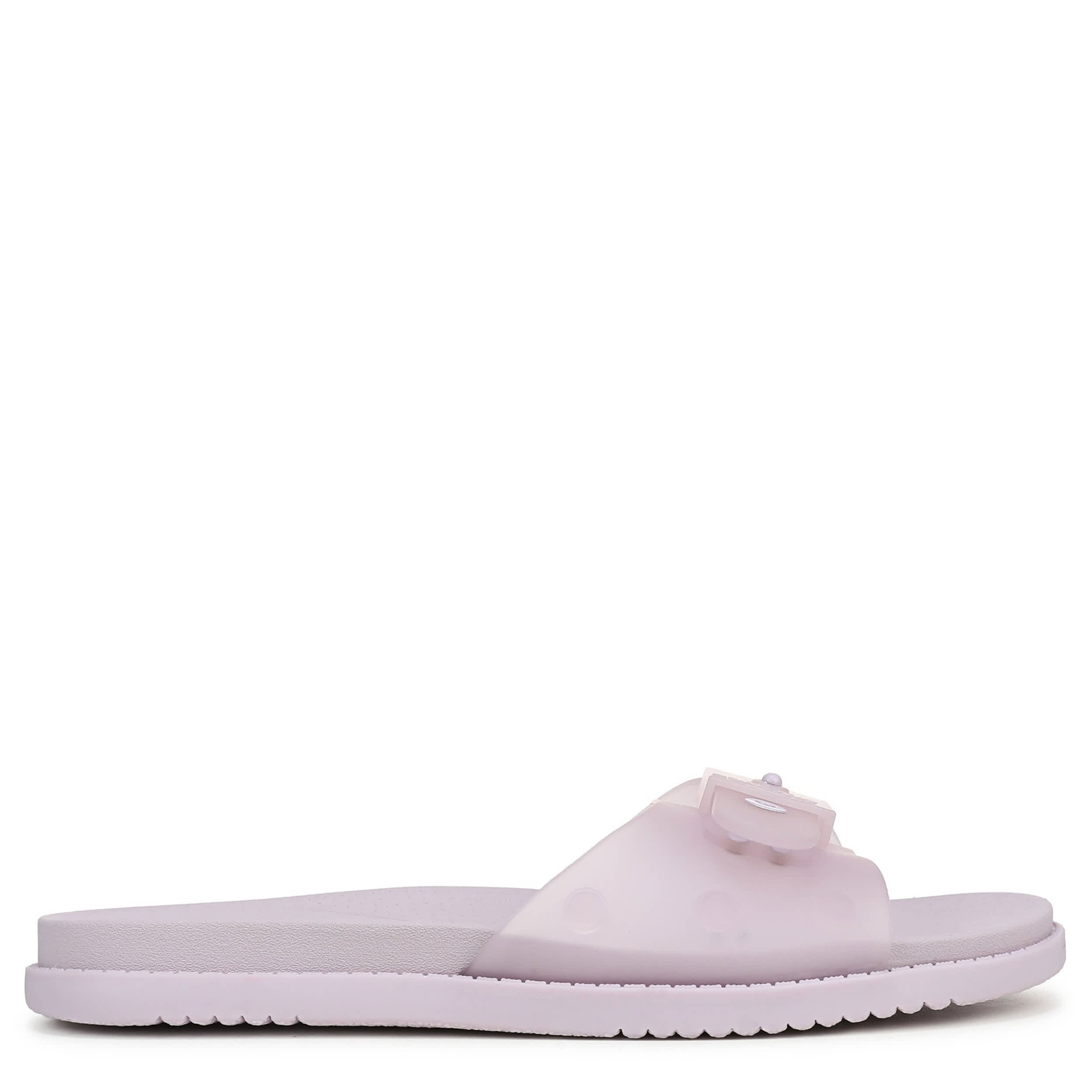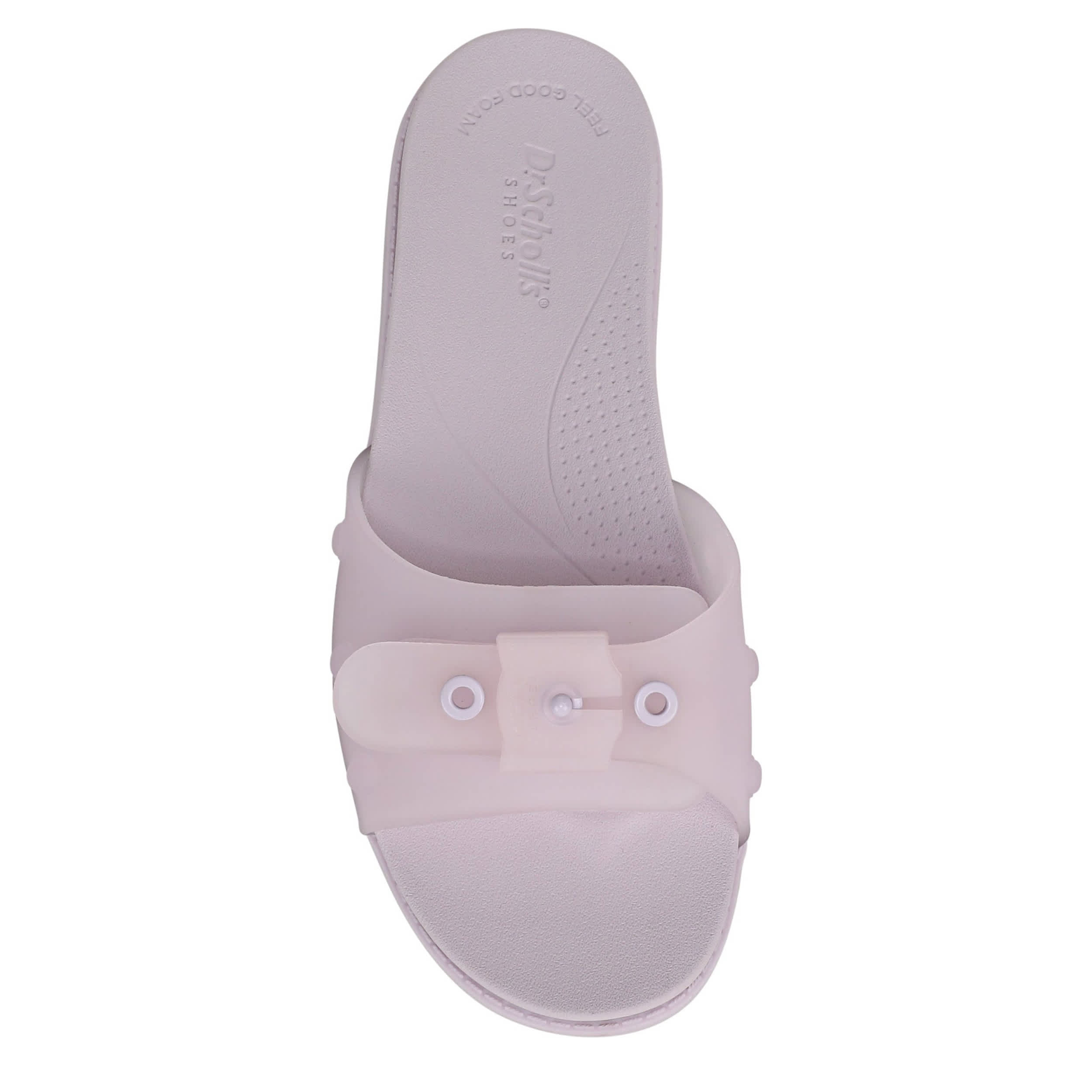 Fill your adventures with sunshine in the So Original women's slide sandal from Dr. Scholl's. Featuring a faux leather or translucent jelly upper with a signature buckle accent for extra style, this slide also has an ultra-flexible sole. The Insole Technology means less pressure and more bounce with every step.