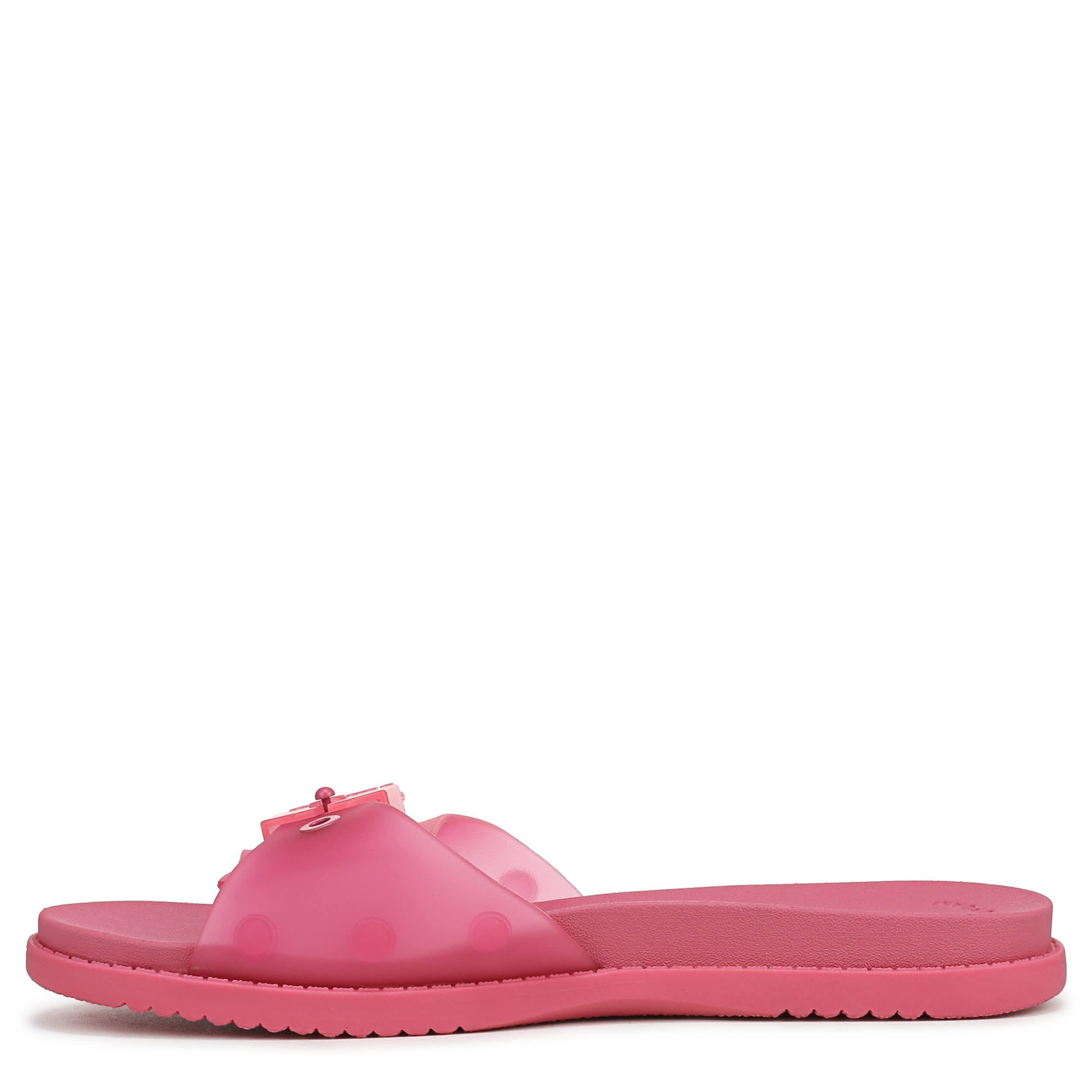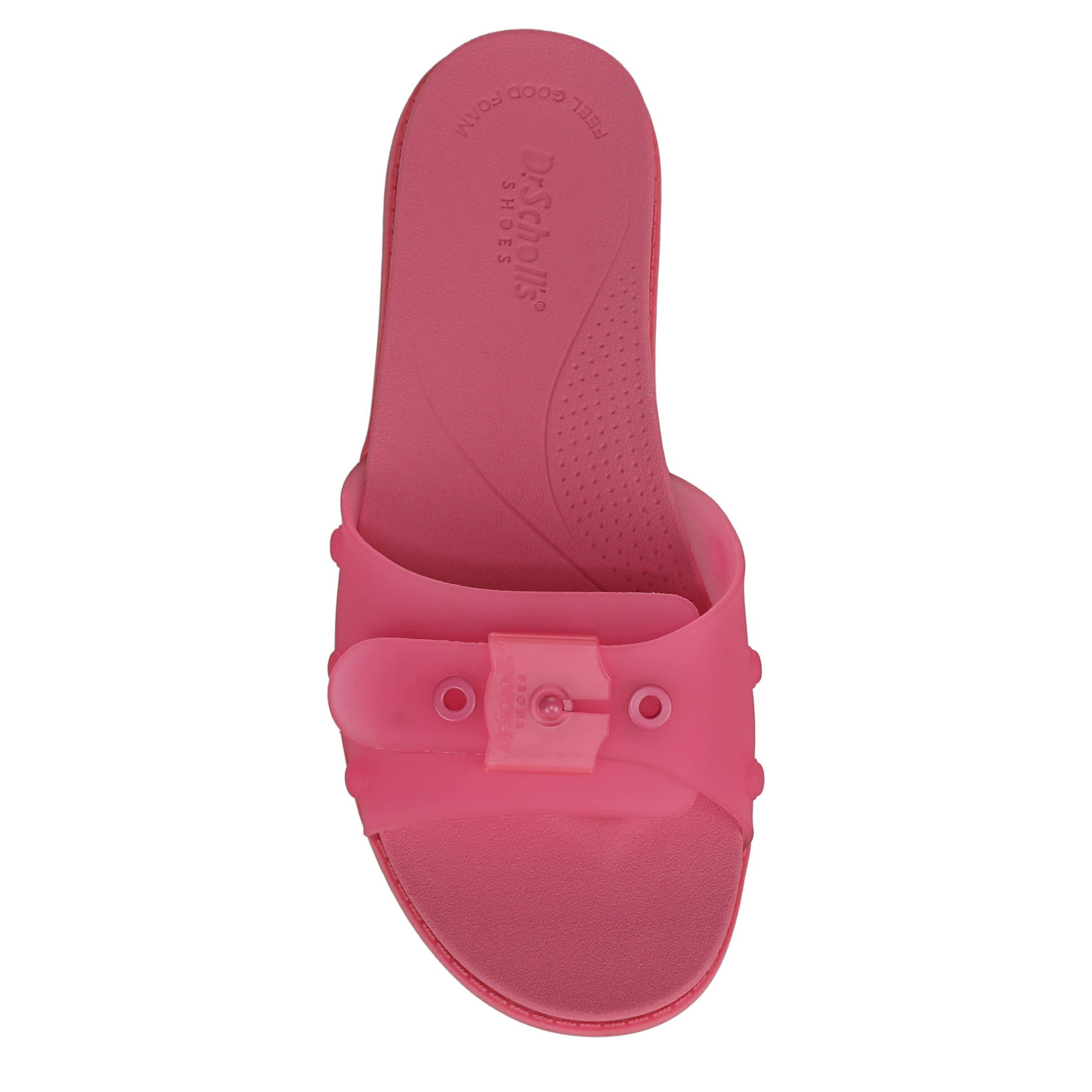 Fill your adventures with sunshine in the So Original women's slide sandal from Dr. Scholl's. Featuring a faux leather or translucent jelly upper with a signature buckle accent for extra style, this slide also has an ultra-flexible sole. The Insole Technology means less pressure and more bounce with every step.