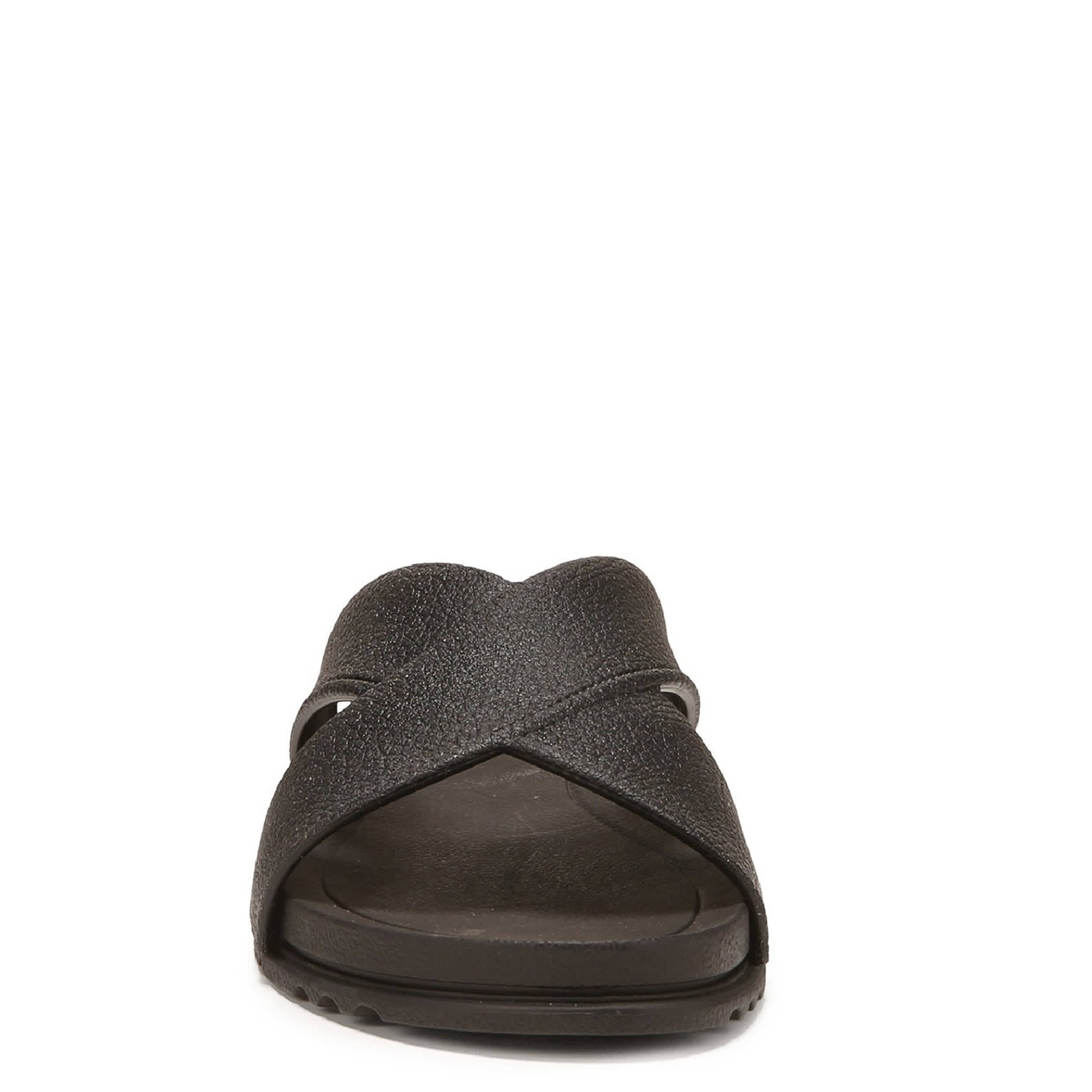 Enjoy every moment in the Sun Dreamer women's slide sandal from Dr. Scholl's. Featuring a synthetic upper with crisscross straps for extra secure style, this slide also has an ultra-flexible sole. The Insole Technology means less pressure and more bounce with every step on the textured outsole.