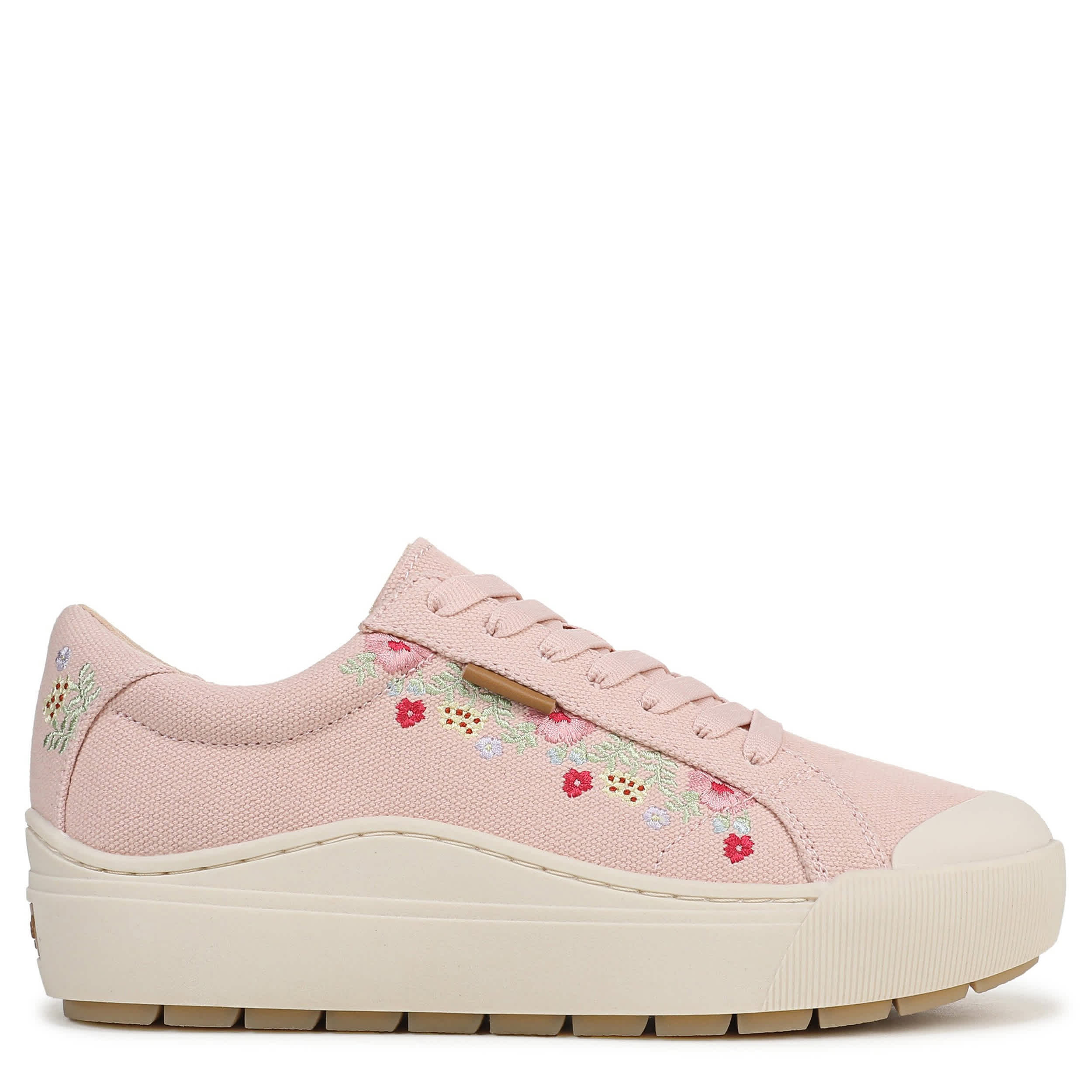 Plan your travels easier with the comfy Time Off women's platform sneaker from Dr. Scholl's. With a water-resistant canvas, ripstop & faux leather upper featuring floral embroidery with a cap toe for retro-inspired style, these lace-up sneakers also have a extra EVA cushioning. The anti-microbial/anti-odor Insole Technology offers arch support, while the platform keeps you lifted in style.