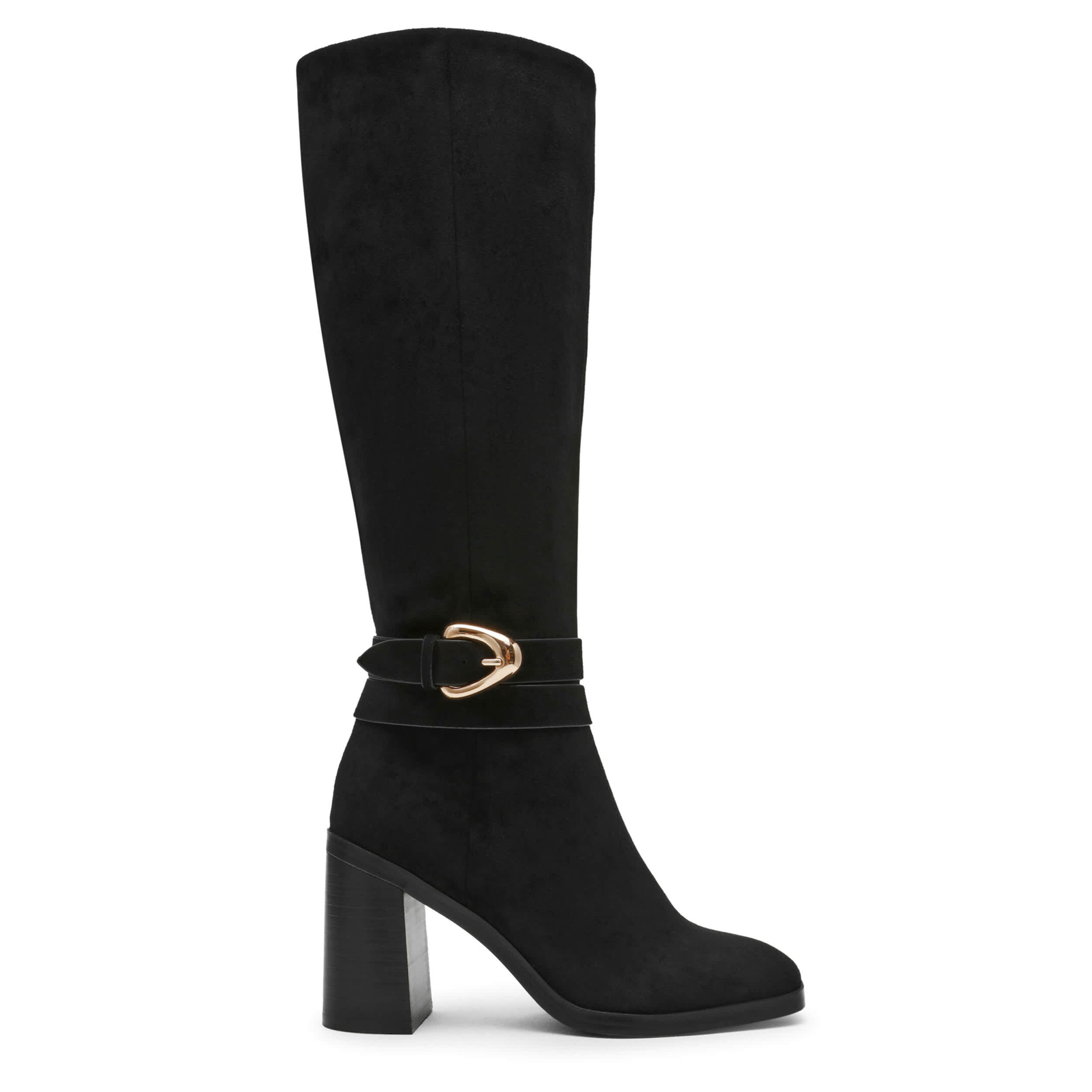 Fall nights in the Finnian tall boot from DV by Dolce Vita are elevated. With a faux suede upper featuring a deco buckle strap for extra style, this knee-high boot delivers cool and modern. The lining soothes every step, while the sturdy heel adds stable lift to complete the look.