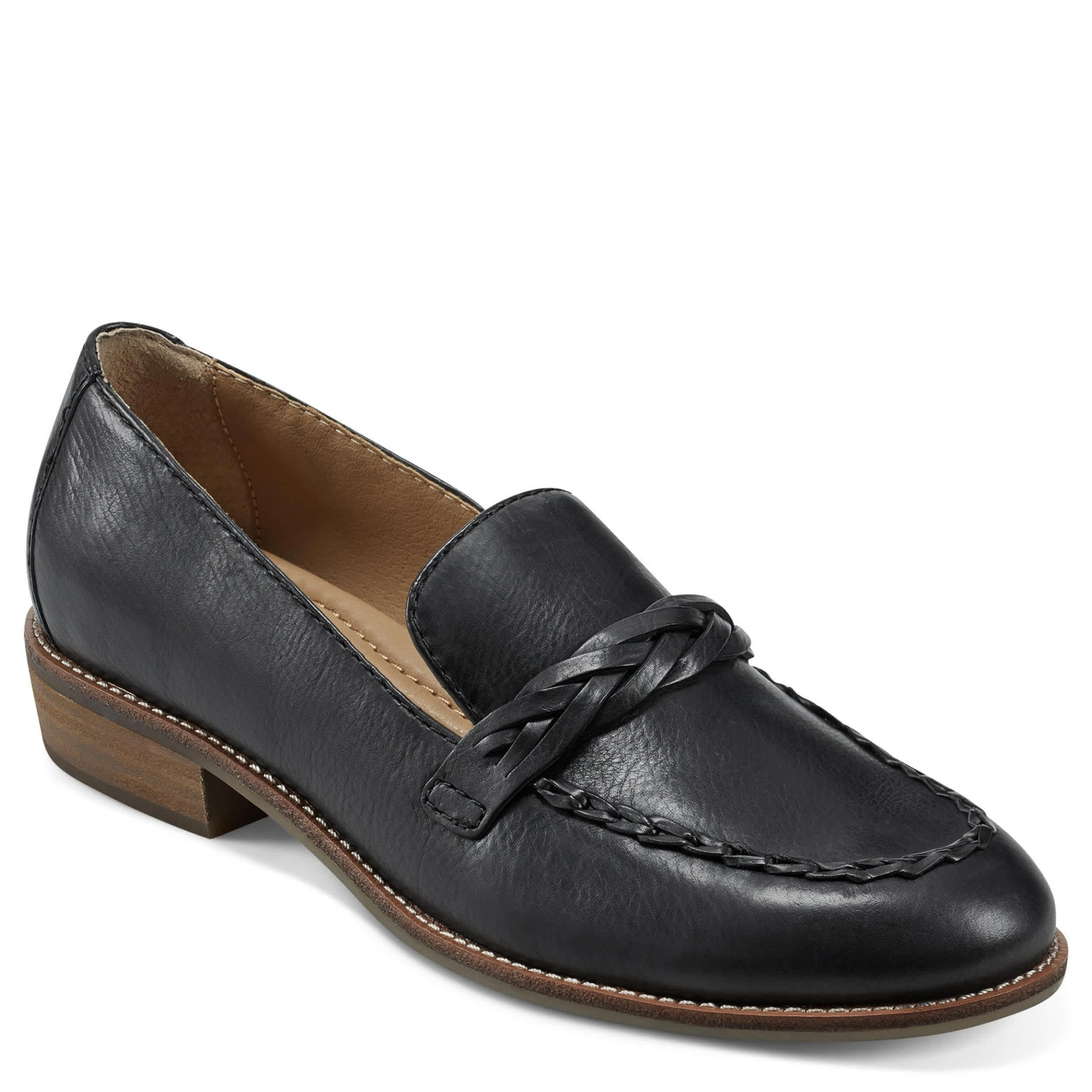 Interlace your usual look with the Edie Loafer from Earth. Made with a leather upper featuring a woven strap and complementary trim around the toe for extra style, this loafer also has arch support. The cushy footbed offers impressive comfort, while the recycled outsole has a sturdy, stacked heel.