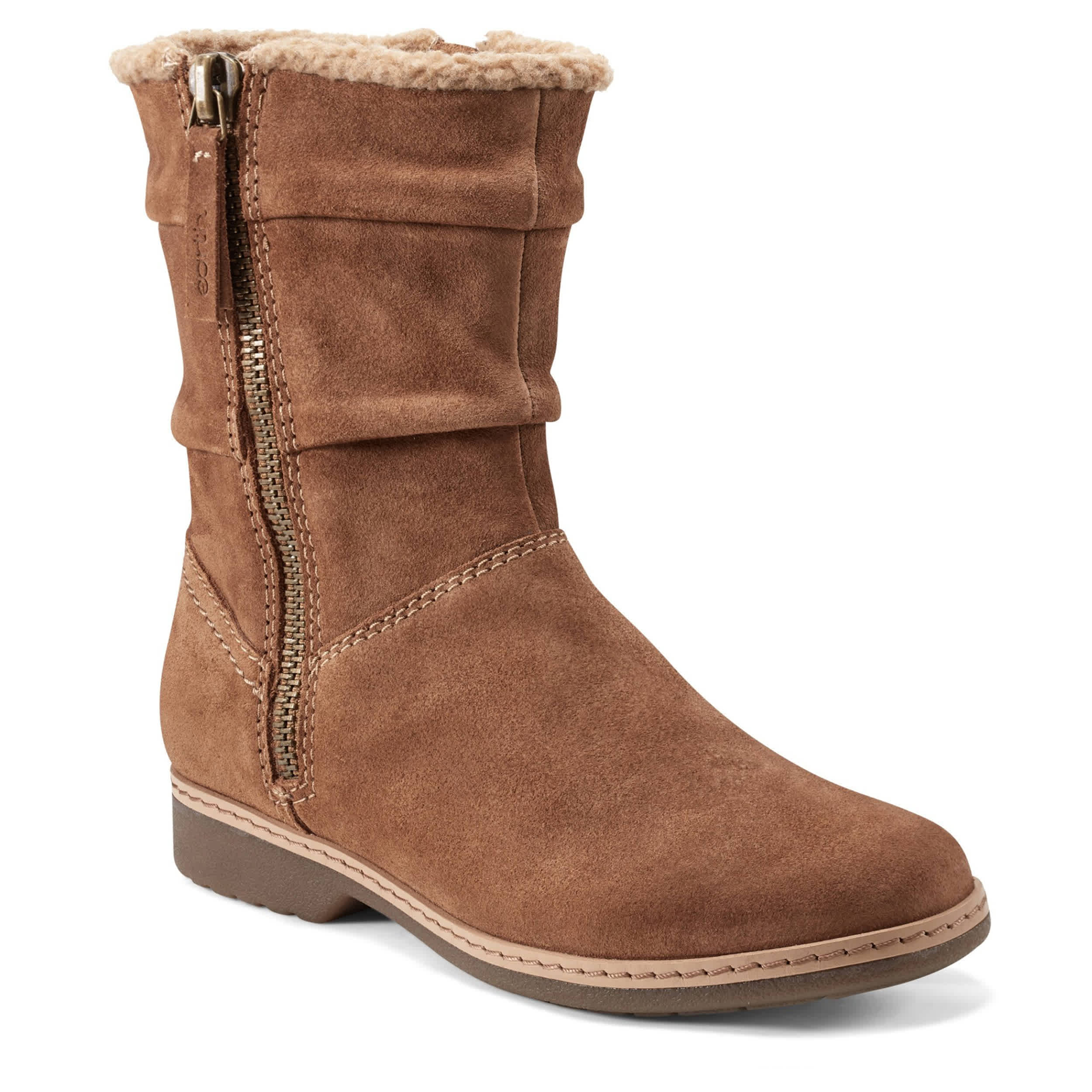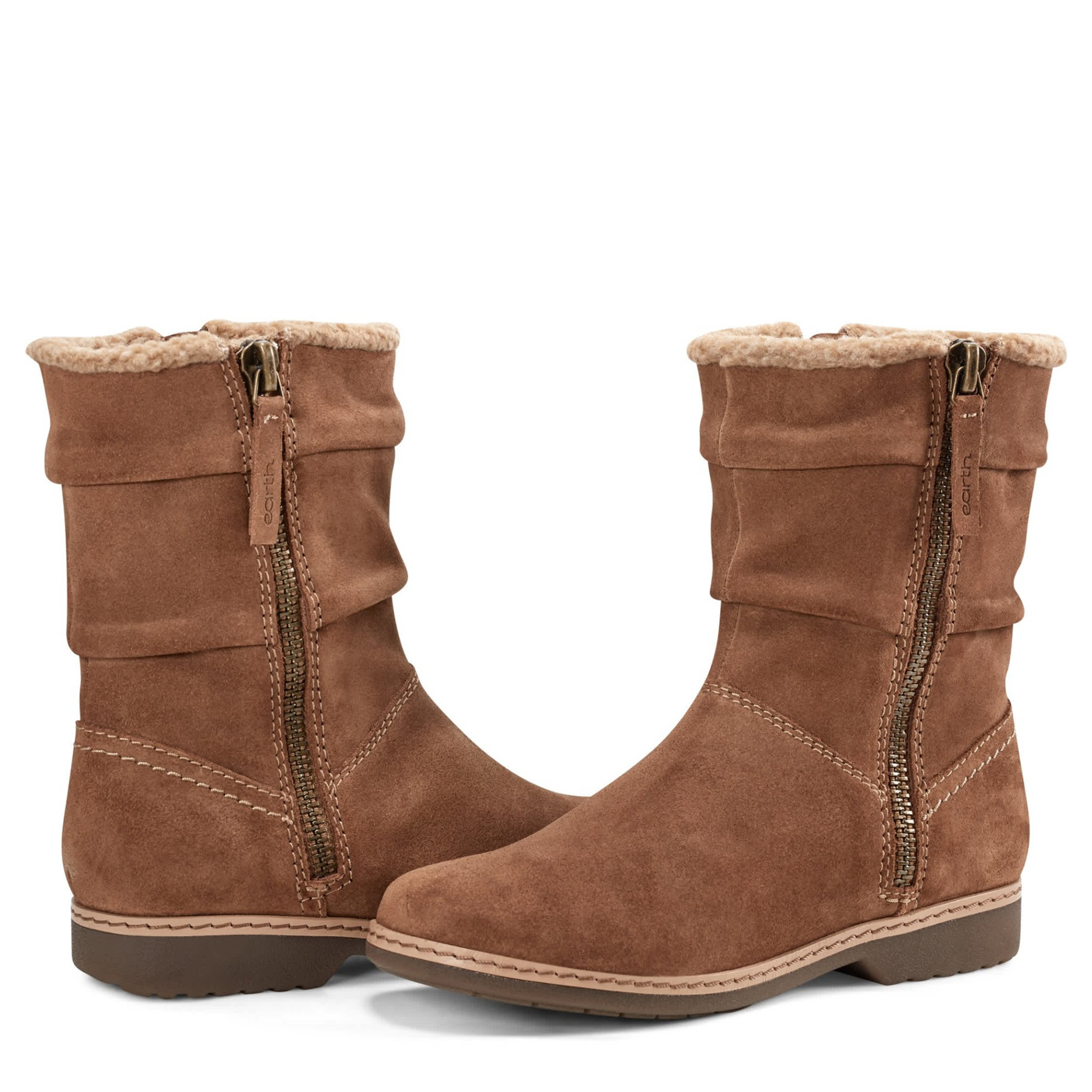 Casually perfect for fall in the Hyland women's boot from earth. Featuring a ruched leather upper with an easy zip entry, this water repellent bootie also has a partially recycled lining. The insole comforts your foot, while the sustainable outsole adds some traction.