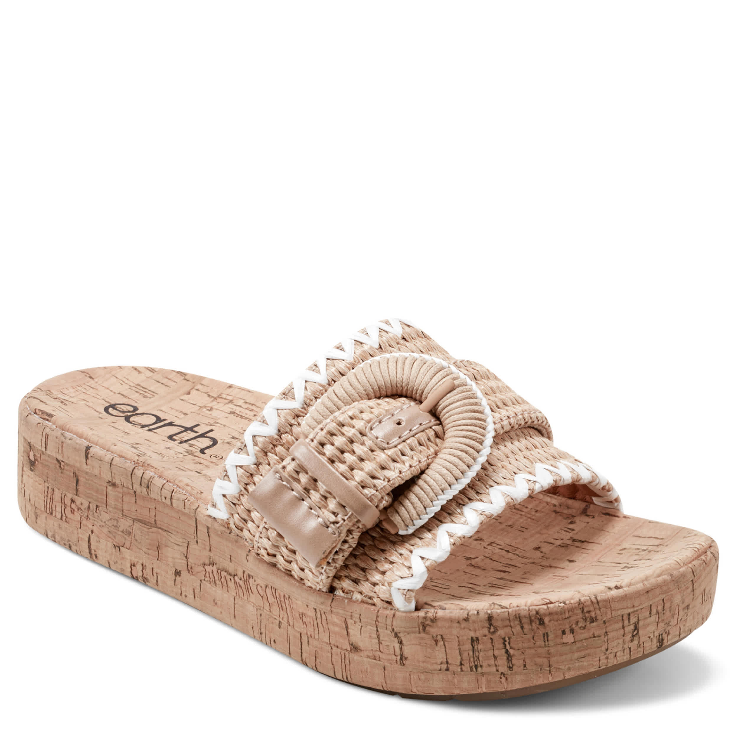 Pursue fun in the Samsy women's wedge sandal from earth. Featuring a breezy raffia upper with a large deco buckle, this wedge comfortably casual. The platform and durable outsole offer a steady base to build your look.