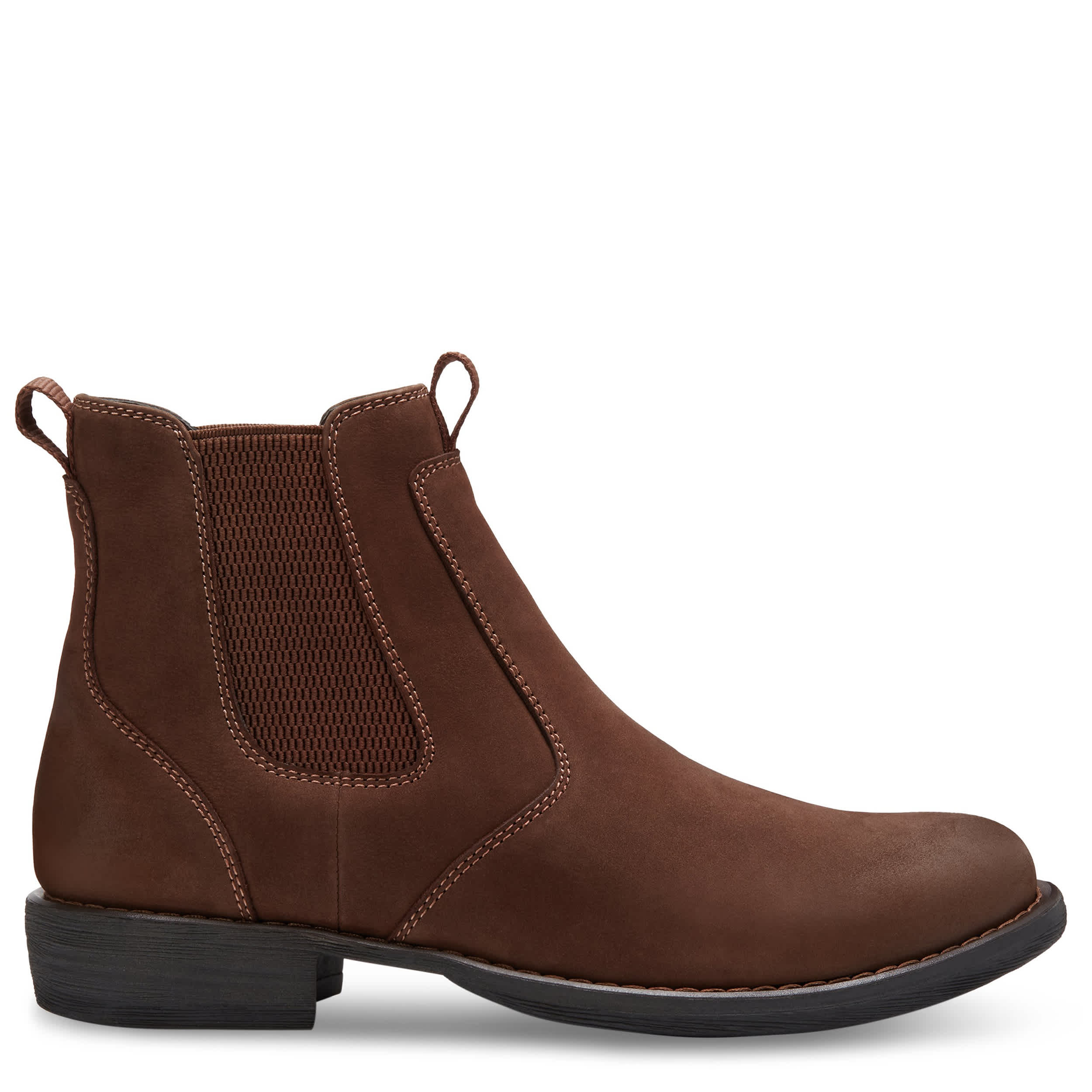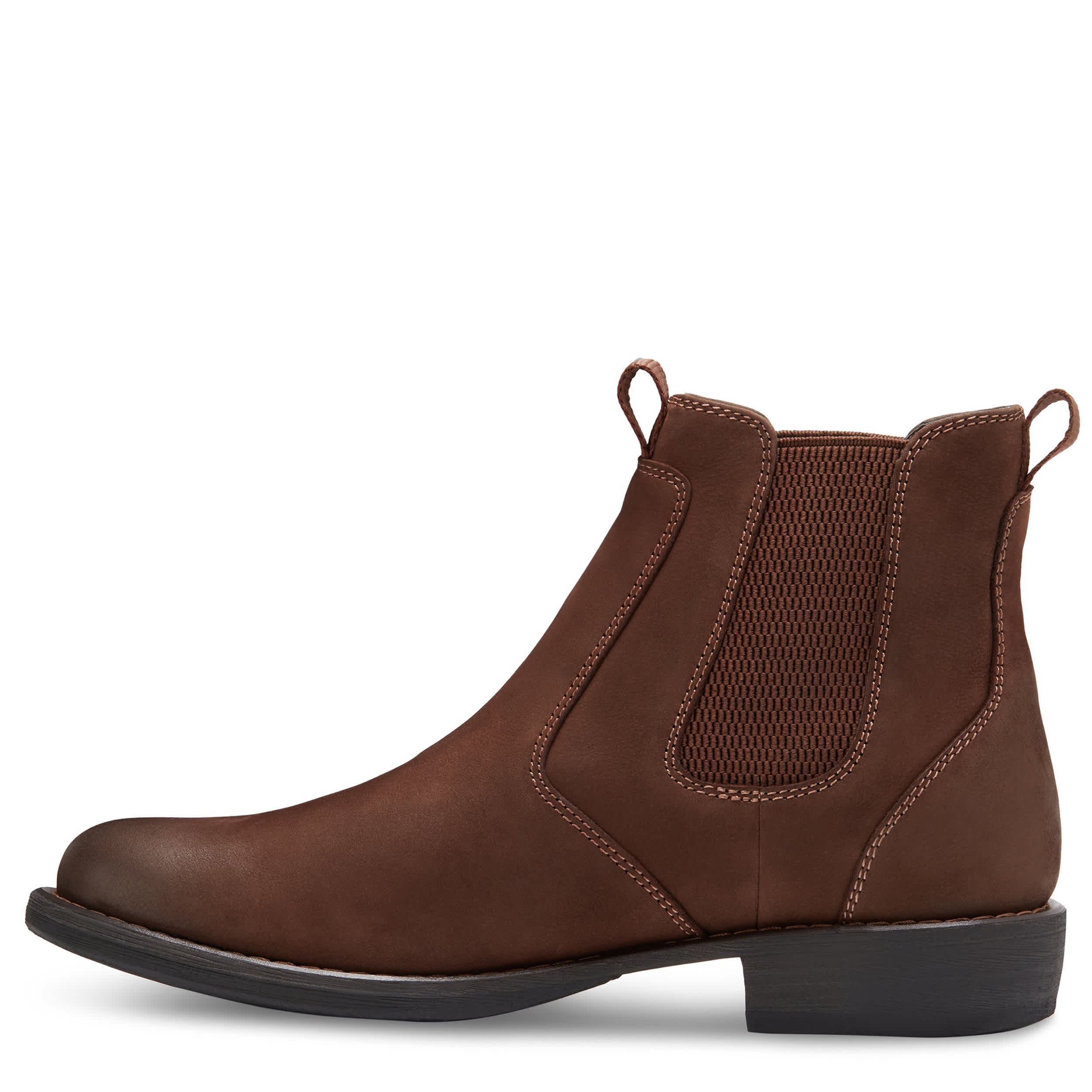 Stylishly trudge through your day in the Eastland Daily Double men's Chelsea boot. With a leather upper and dual elastic panels for a secure fit, this pull-on boot also features a fabric lining and dual pull tabs for easy entry. The cushioned footbed comforts your foot while the TPR rubber sole durably provides traction.