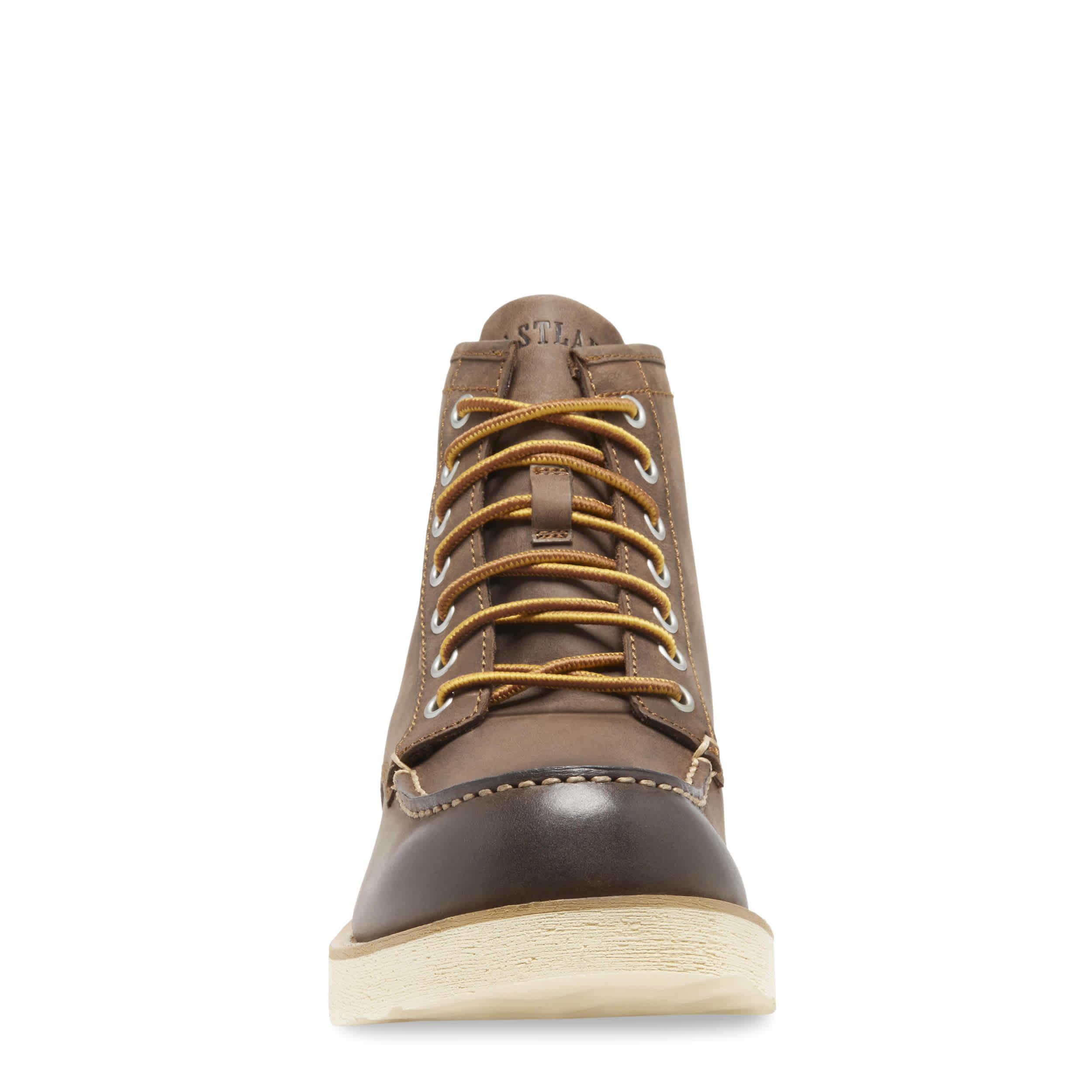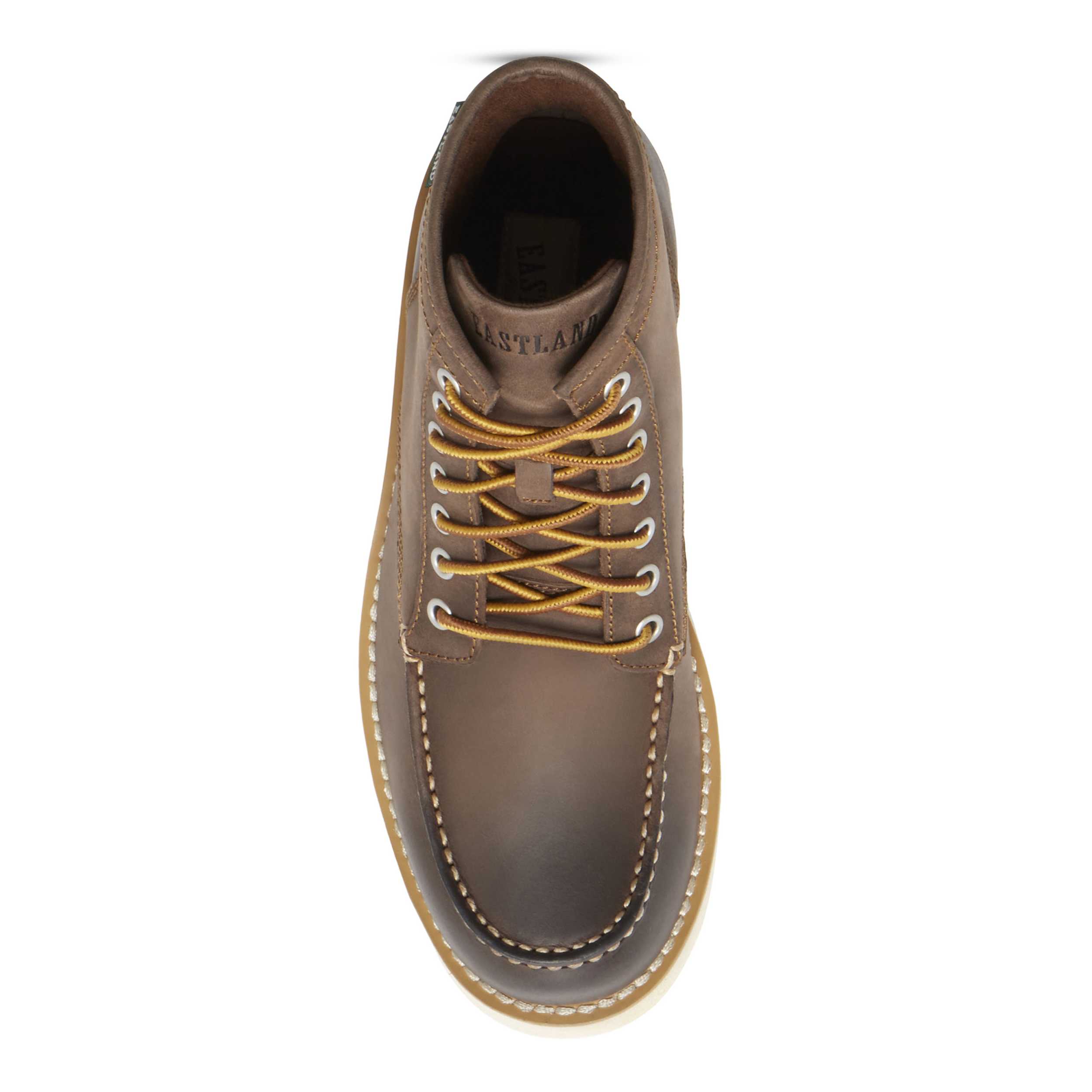Go right through your day handsomely in the Lumber Up men's boot from Eastland. With a full grain leather upper and padded tongue, this lace-up boot also features a fabric lining and moc toe. The cushioned insole comforts your foot while the lightweight rubber & EVA sole provides exra traction thanks to mini grooves.