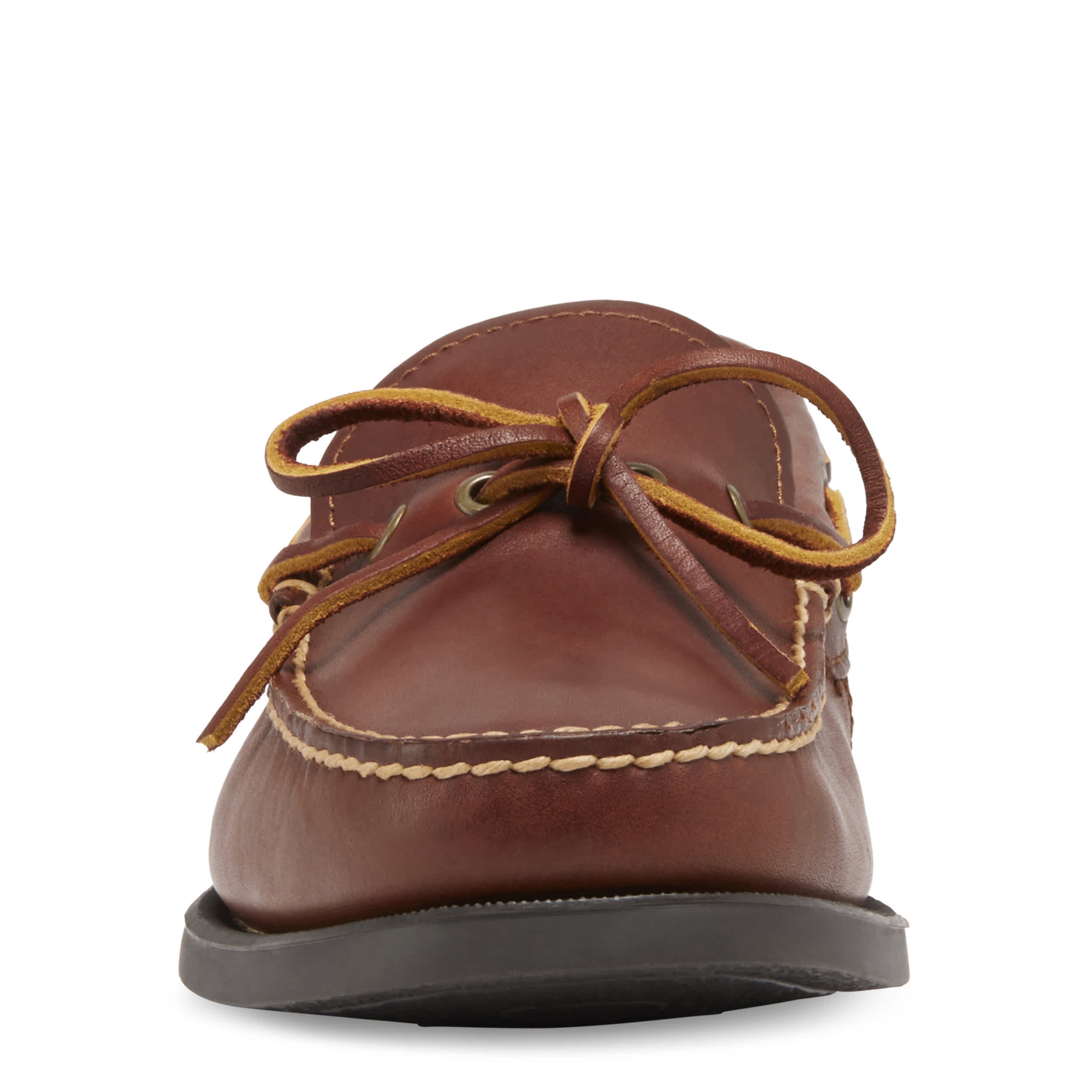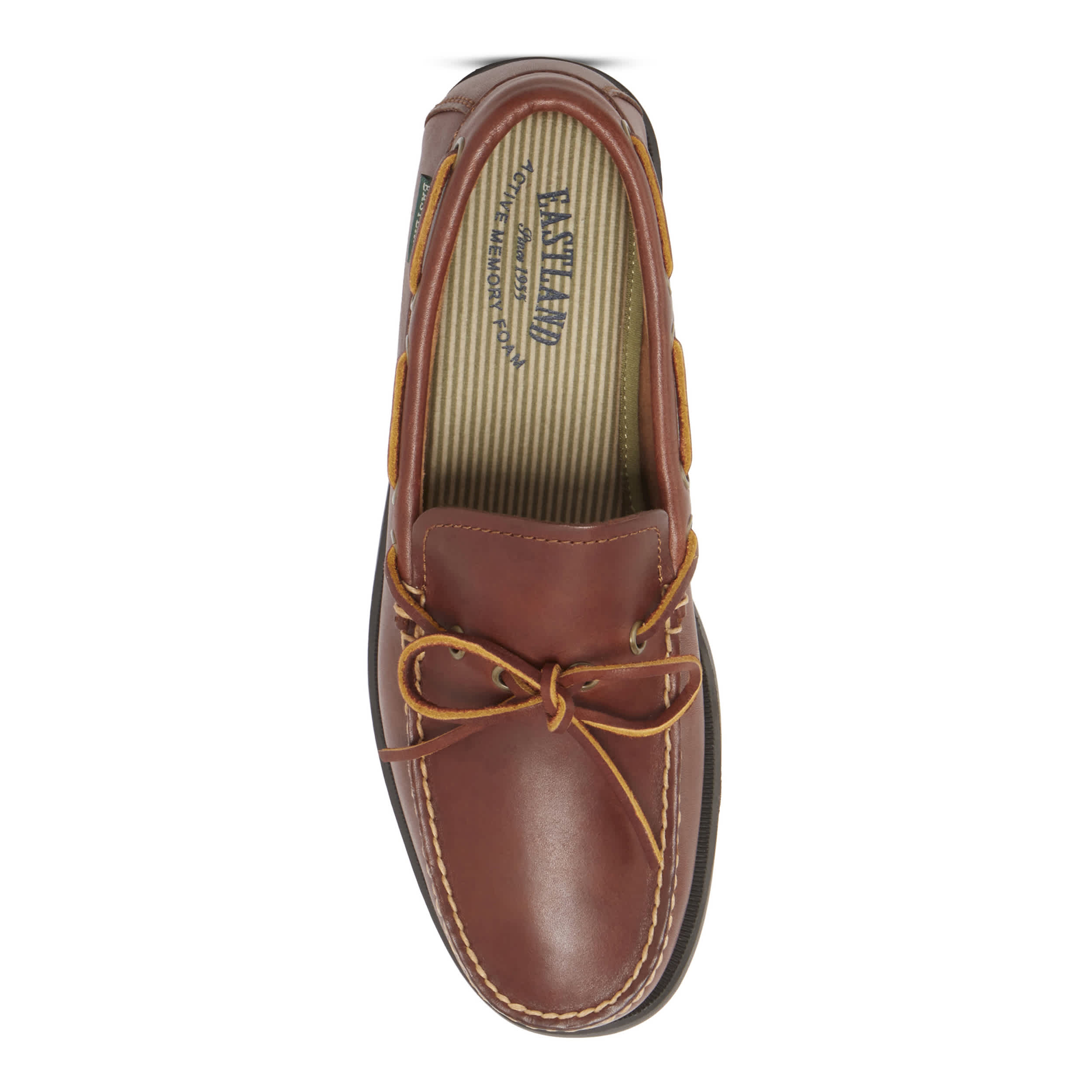 Captain your ship in the classic styling of the Eastland Yarmouth men's boat shoe. With a canvas or leather upper and 360 degree lacing, this slip-on boat shoe also features a fabric lining and bow detail. The Active Memory Foam footbed cushions your foot while the rubber sole provides traction and some bounce to your step.