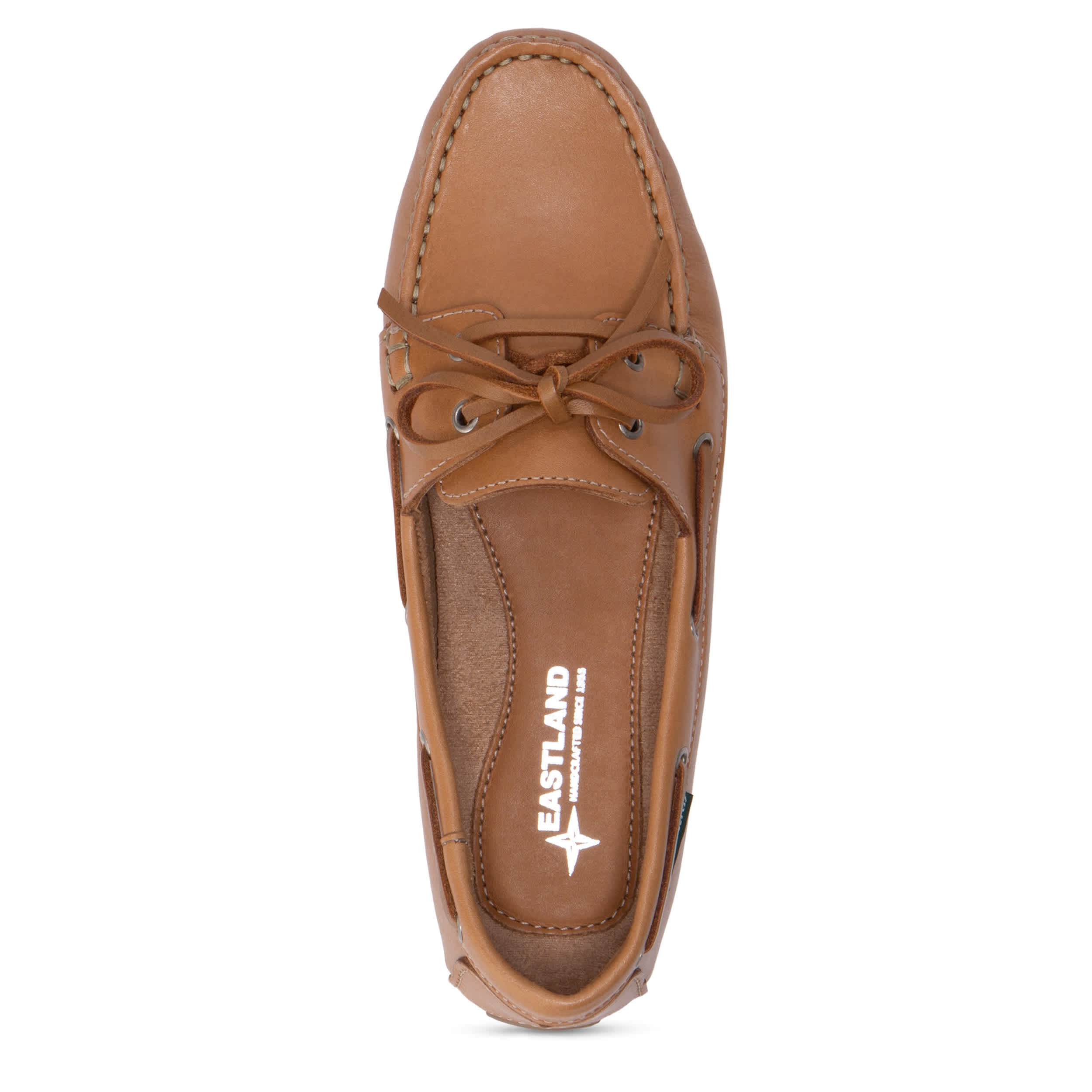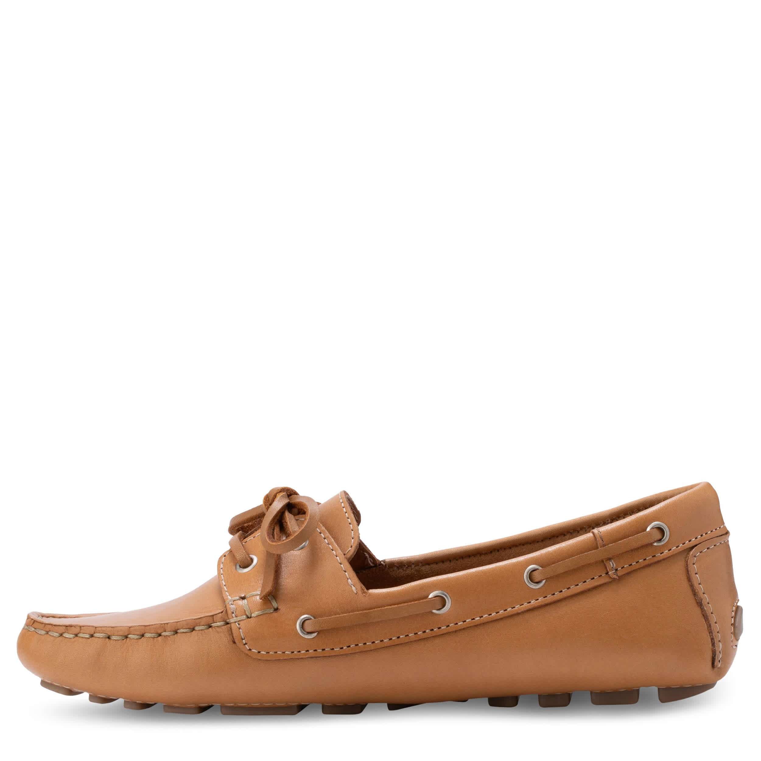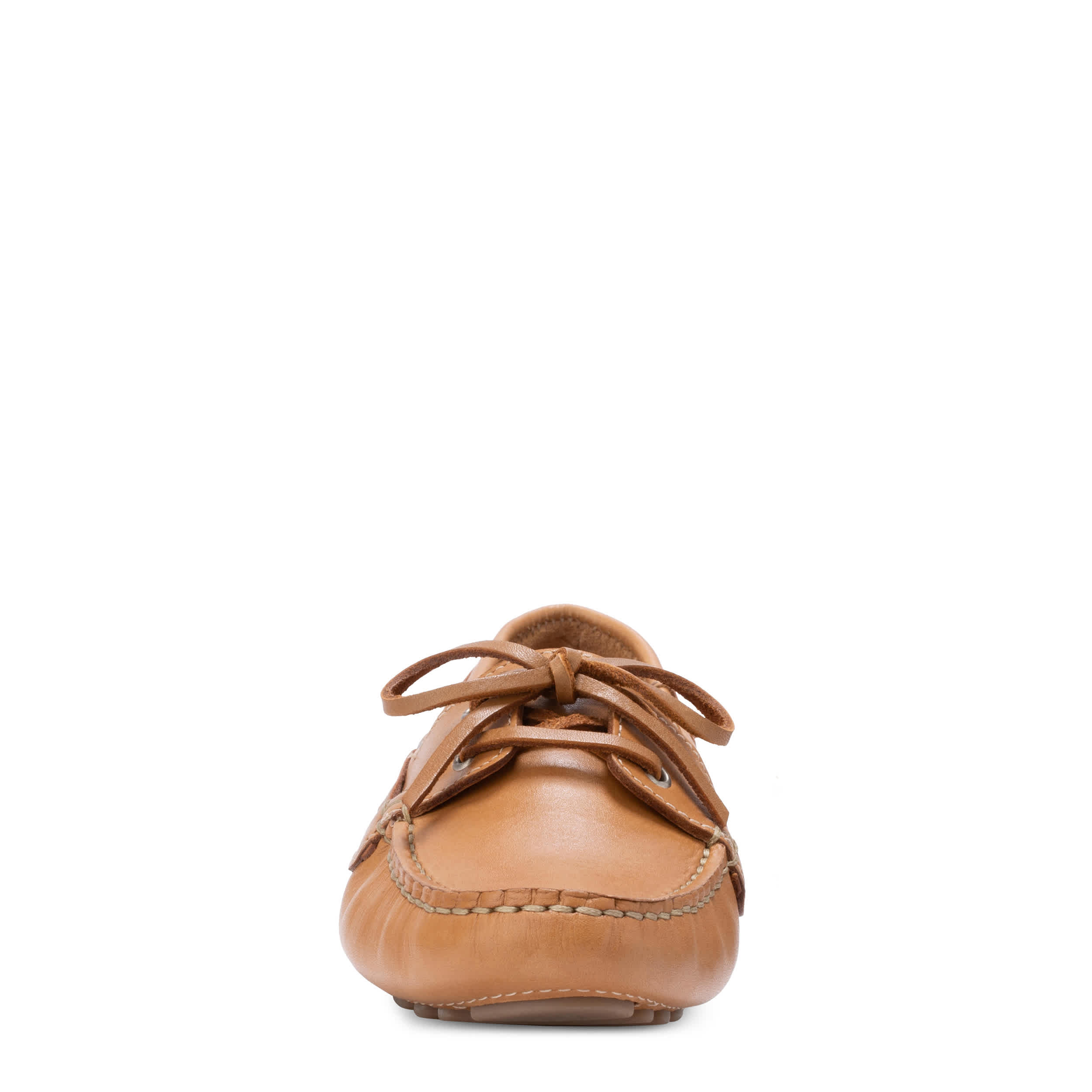 Handle your day with aplomb in the Eastland Elana women's boat shoe. Featuring a full grain leather upper with a lace-up styling, this driving moc gives barefoot comfort. The Memory Foam cradles your foot, while the slip-resistant outsole offers durability.