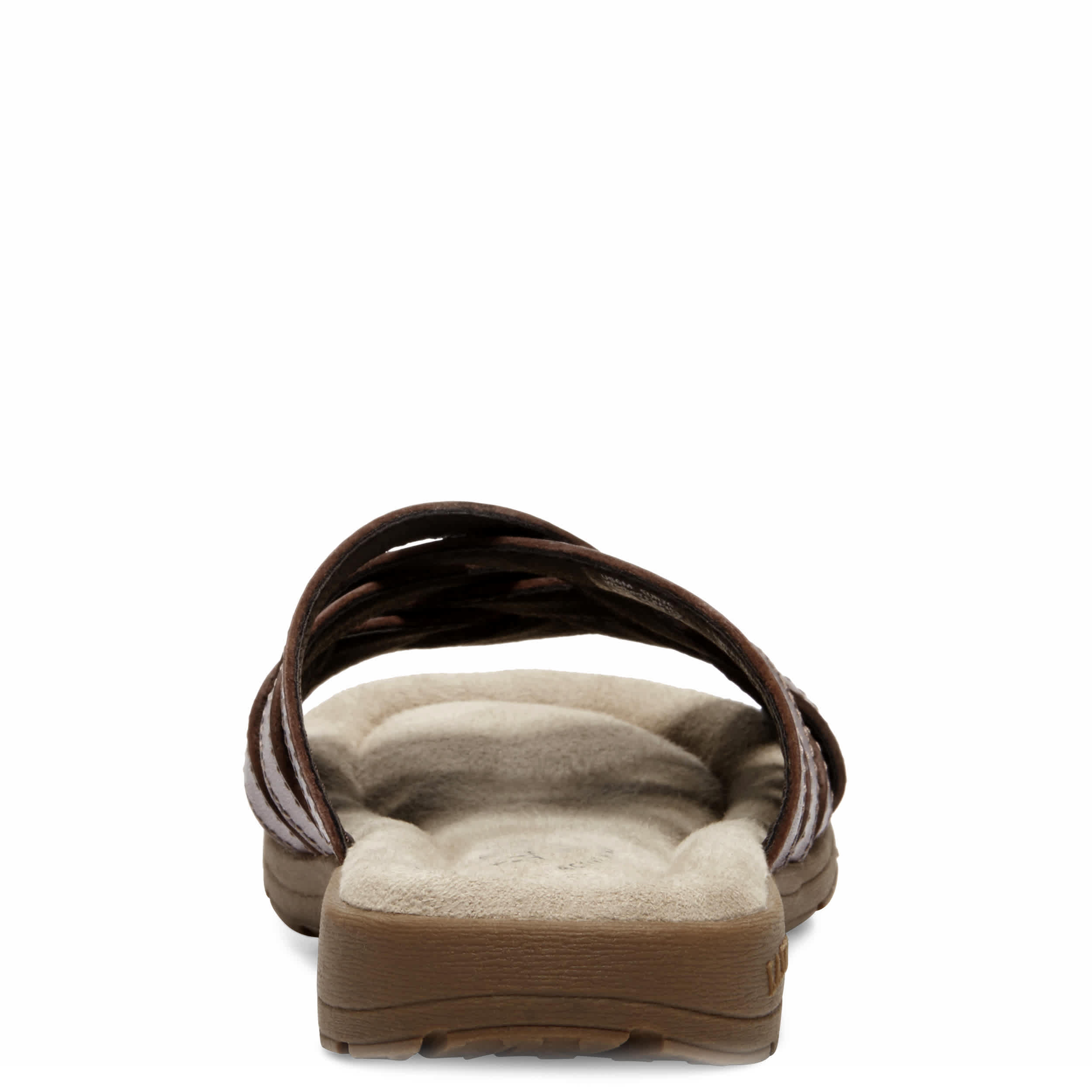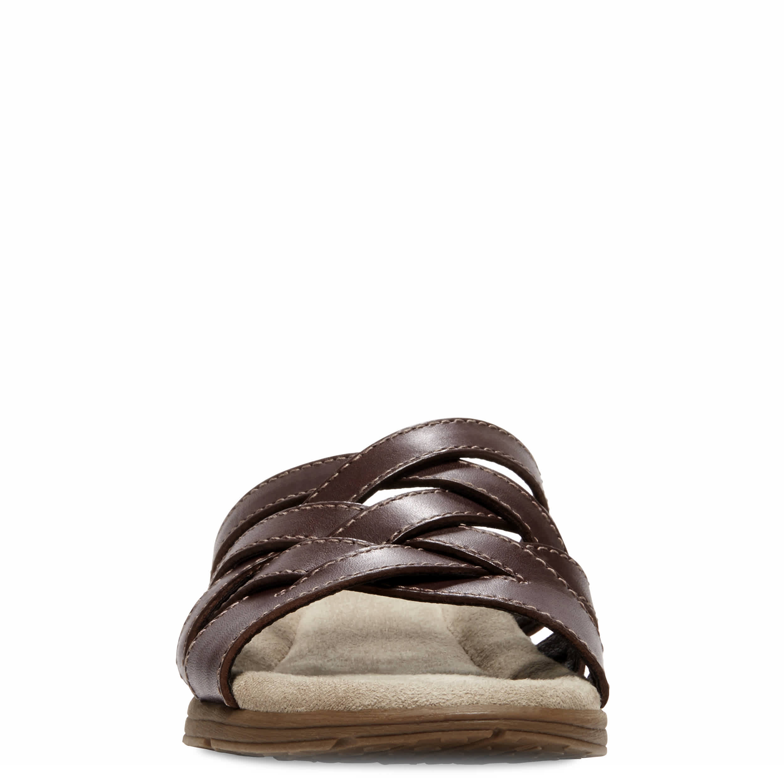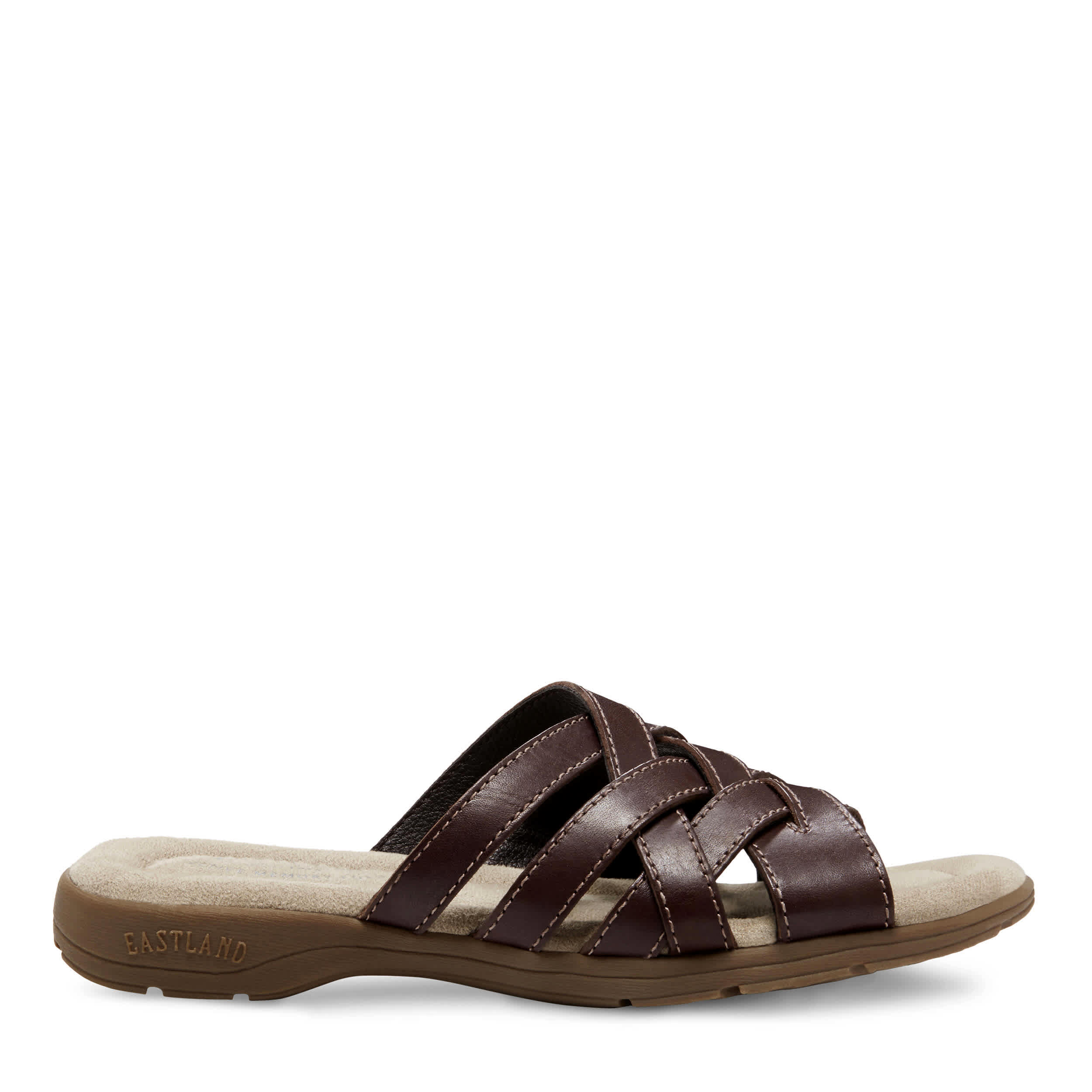 When the weather turns warm, step into the everyday style of the Hazel women's sandal from Eastland. With a leather upper and woven construction, this slip-on sandal will never leave your feet all summer long. The Active Memory Foam insole offers optimal comfort while the rubber sole prevents slips.