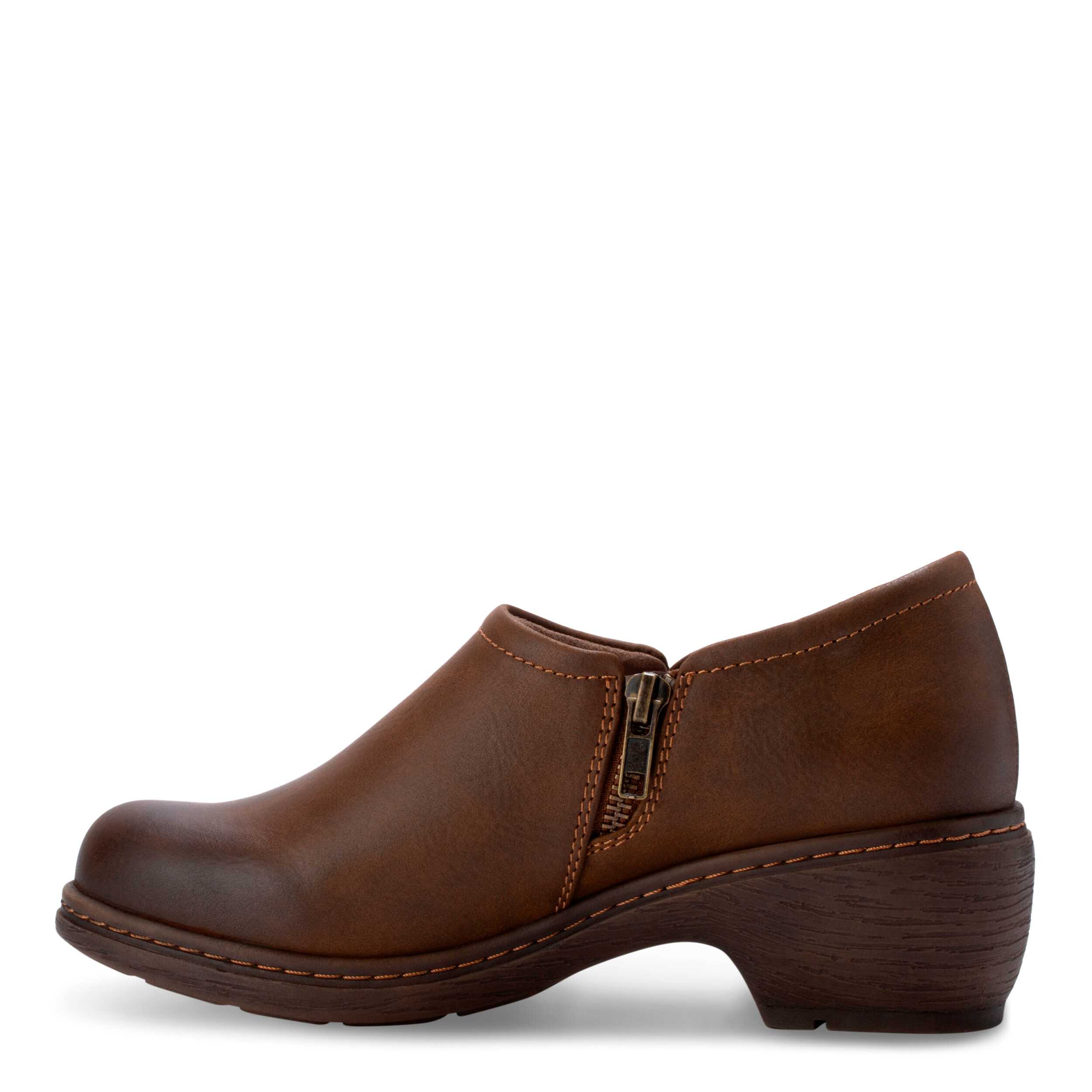 Jumpstart the season in the Rosie Slip-On women's boot from Eastland. Featuring a faux leather upper with a soothing fabric lining, this inside zip shoe is perfect for fall. The cushy Memory Foam insole is removable while the slip-resistant sole has that stacked block heel for lift.