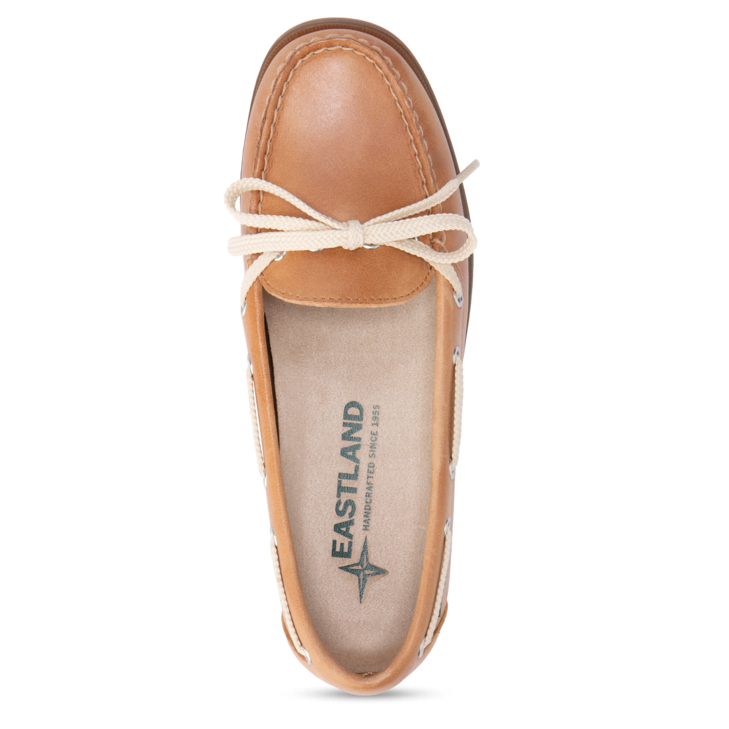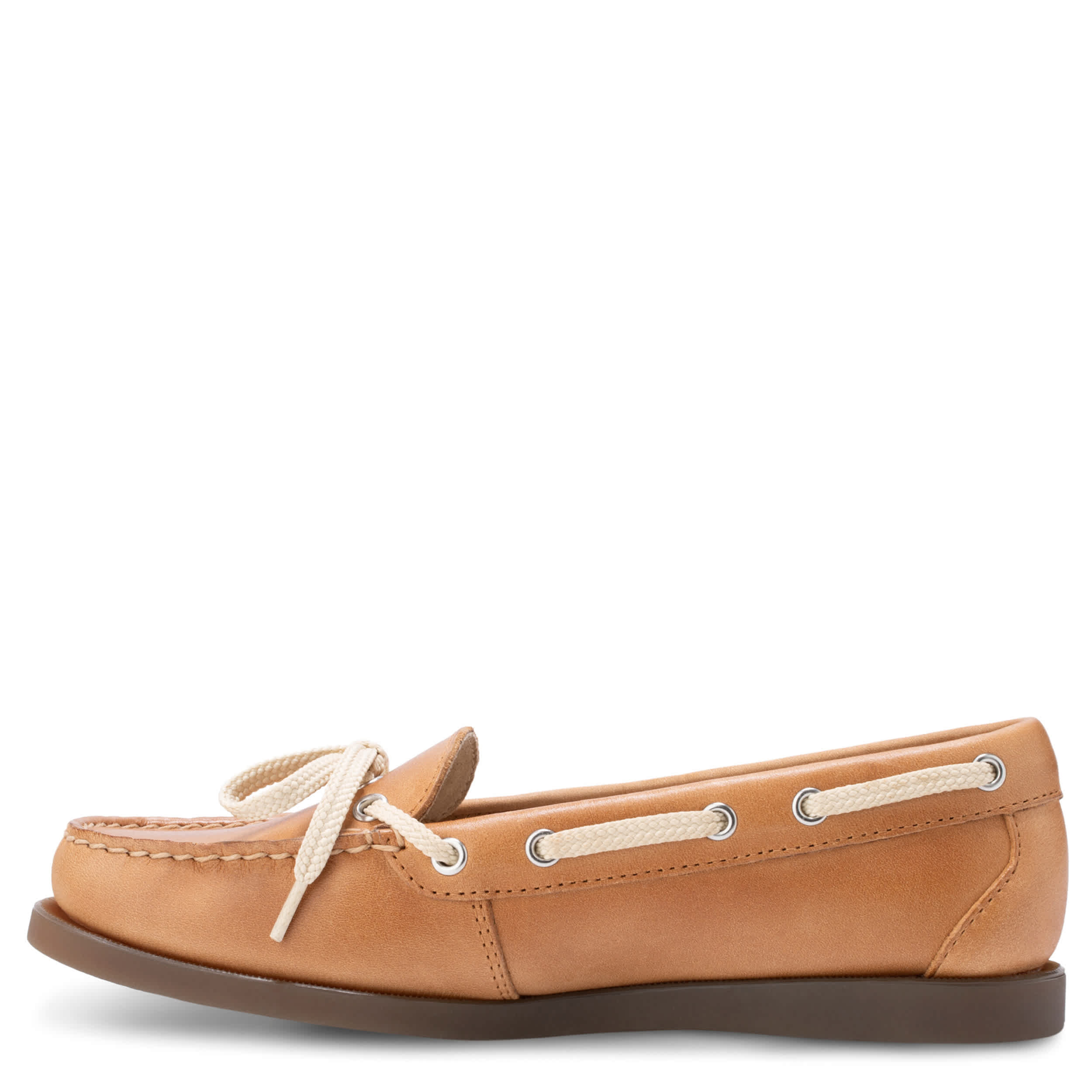 Sail into sophisticated style with the Eastland Yarmouth women's boat shoe. Featuring a leather upper and handsewn moccasin construction, this slip-on also features a bow detail. The Eastland Exclusive Active Memory Foam insole cushions your foot while the rubber sole provides flexibility and traction to your step.
