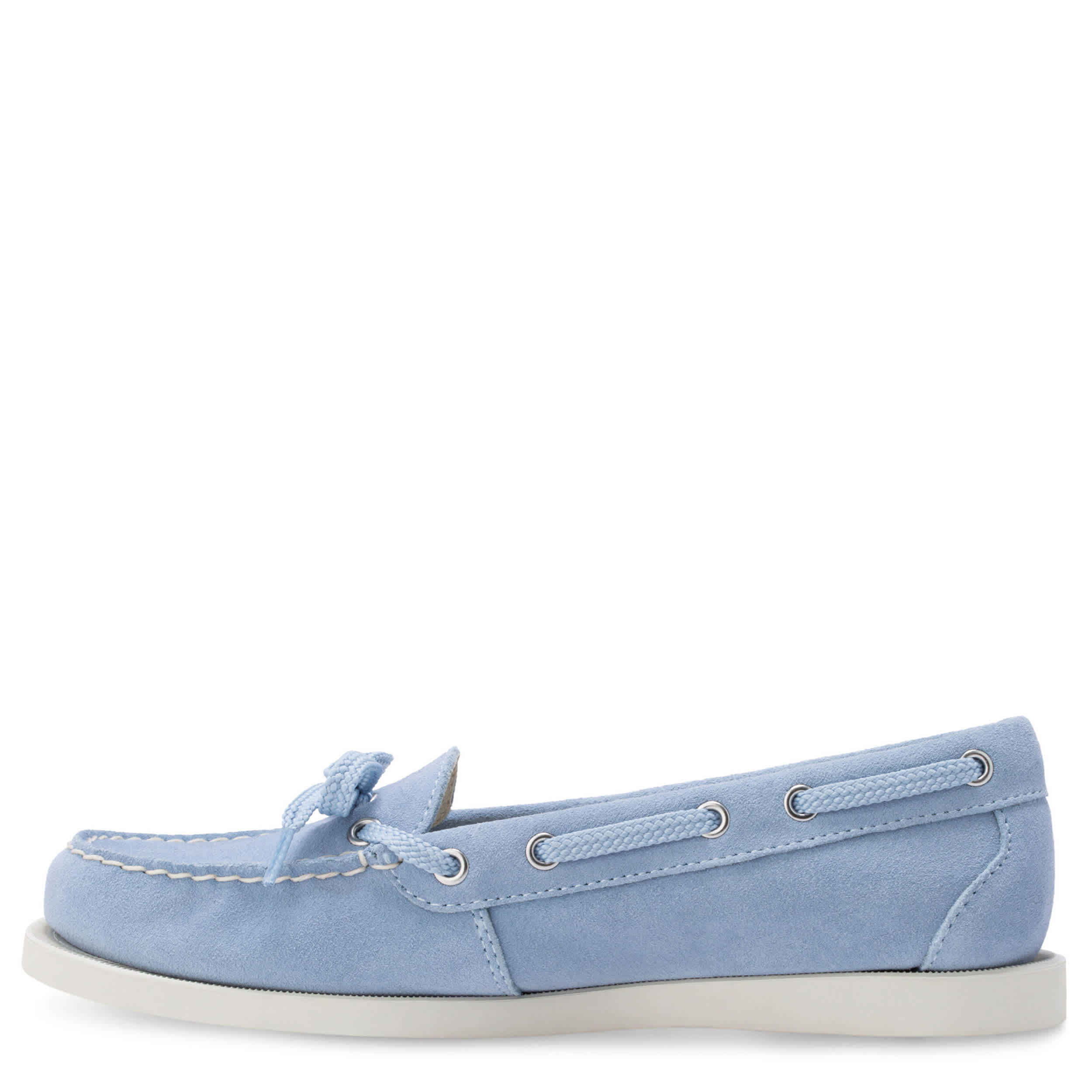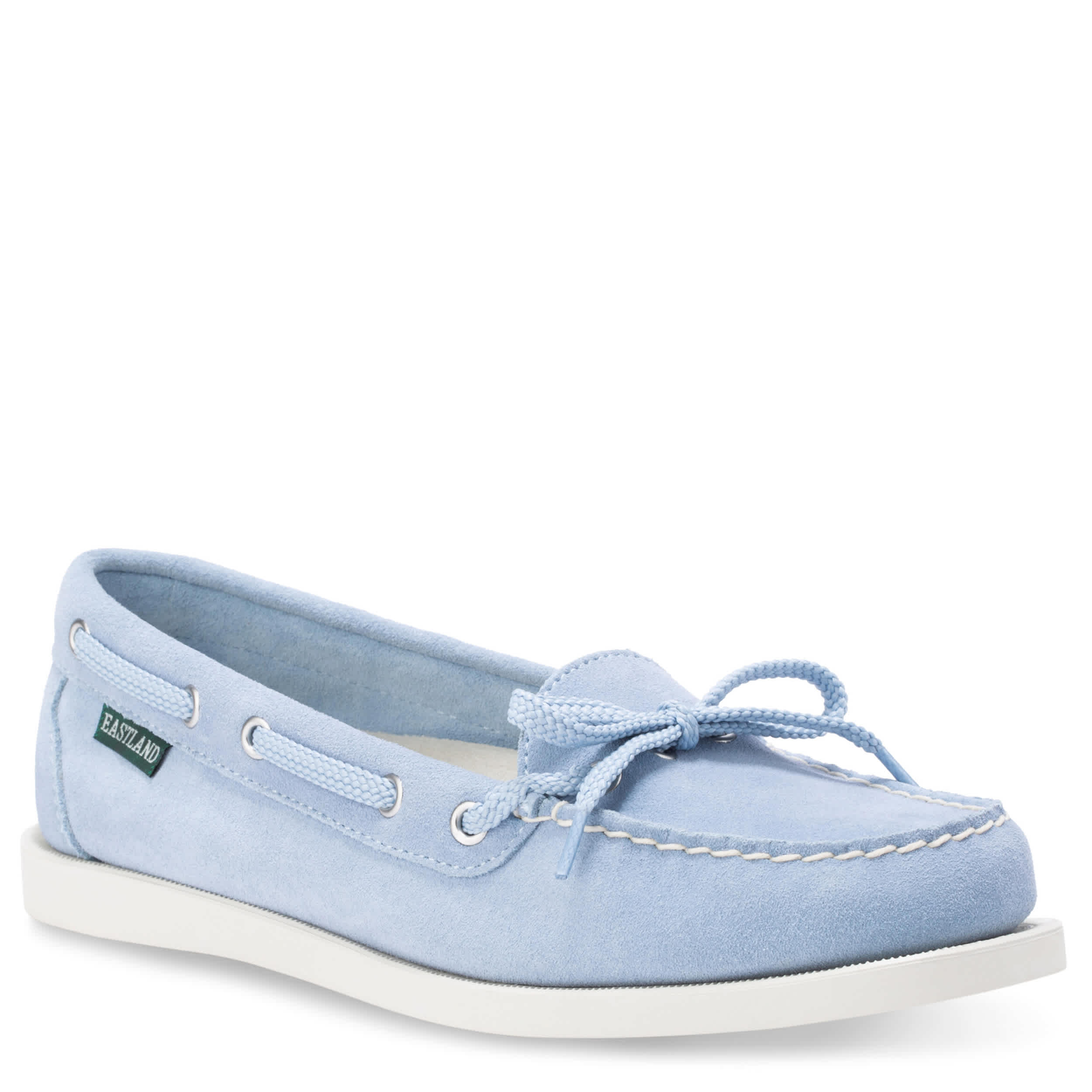 Sail into sophisticated style with the Eastland Yarmouth women's boat shoe. Featuring a suede upper and handsewn moccasin construction, this slip-on also features a bow detail. The Eastland Exclusive Active Memory Foam insole cushions your foot while the rubber sole provides flexibility and traction to your step.