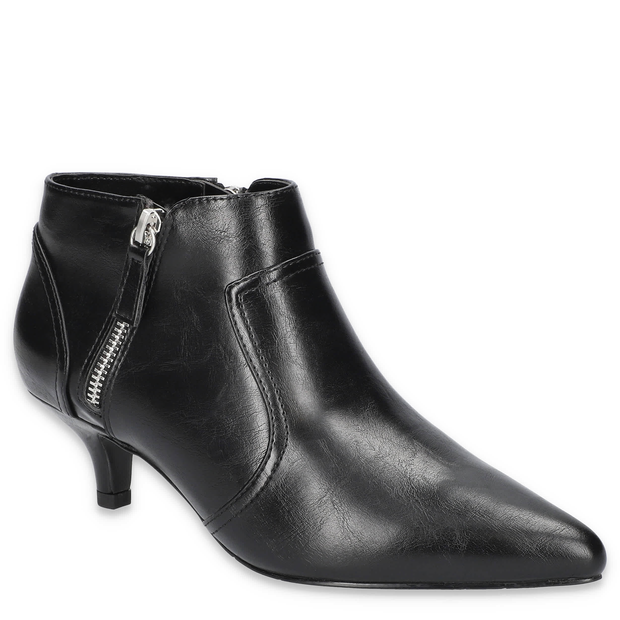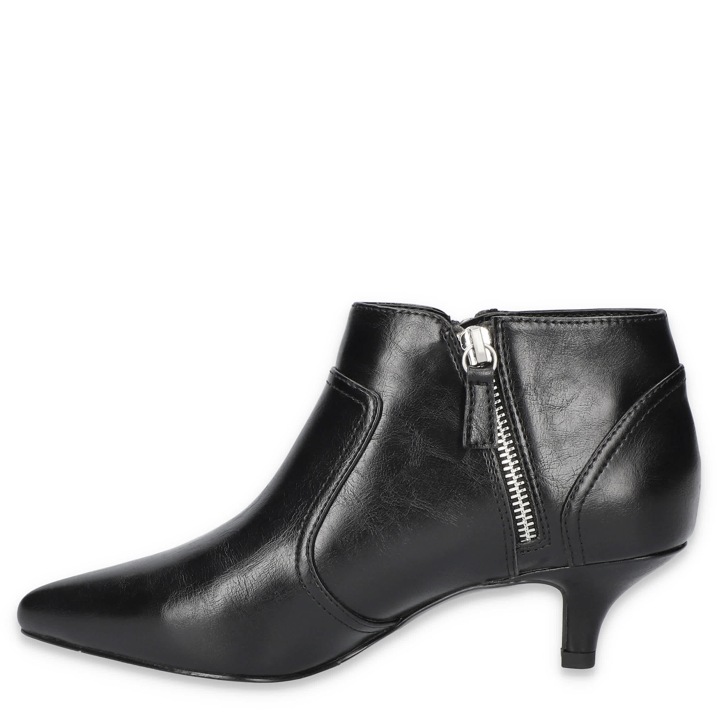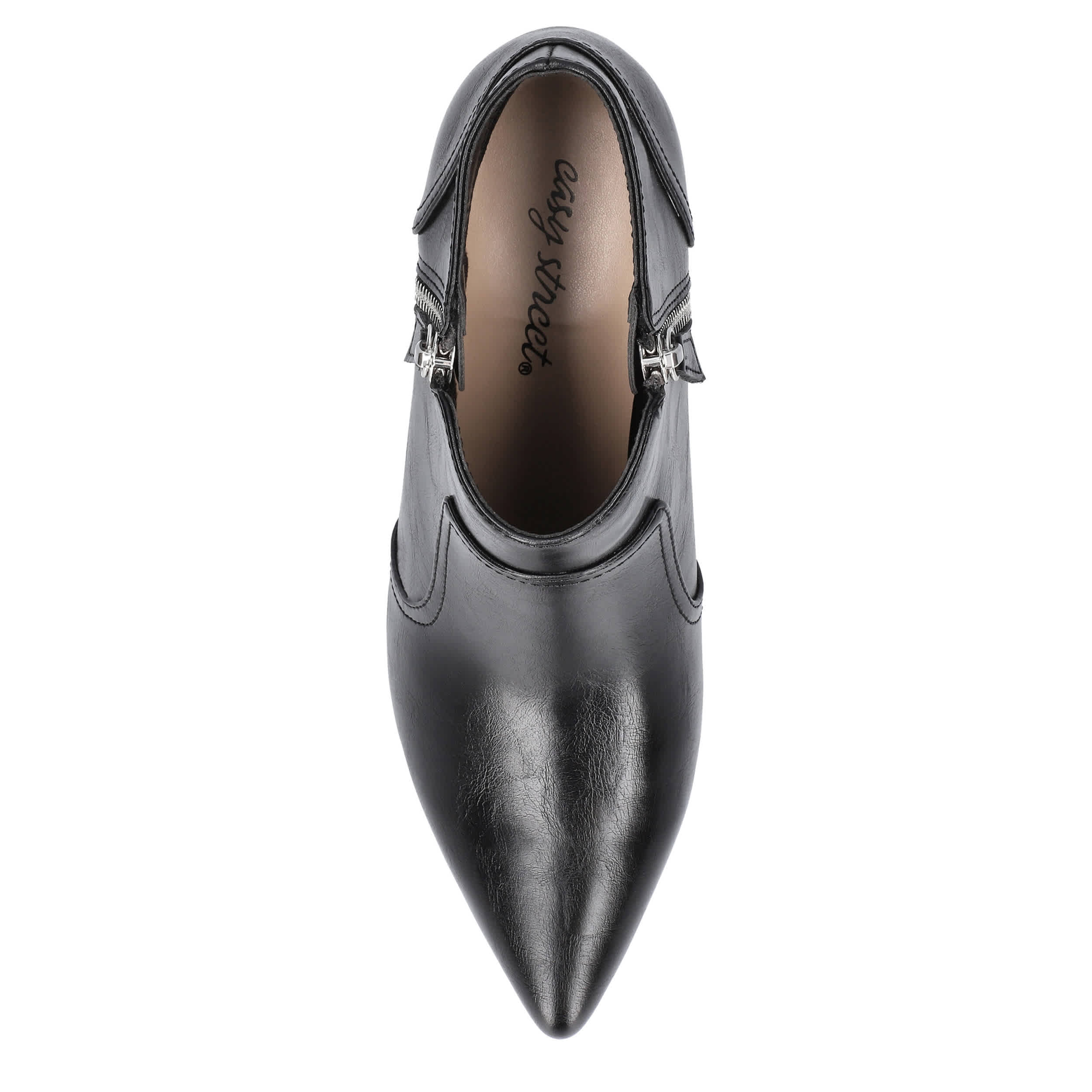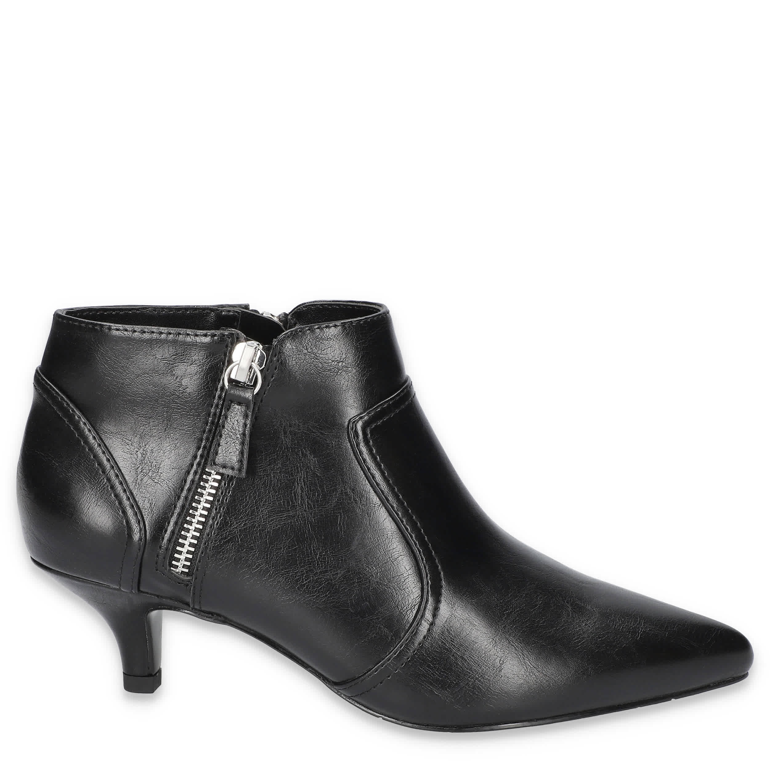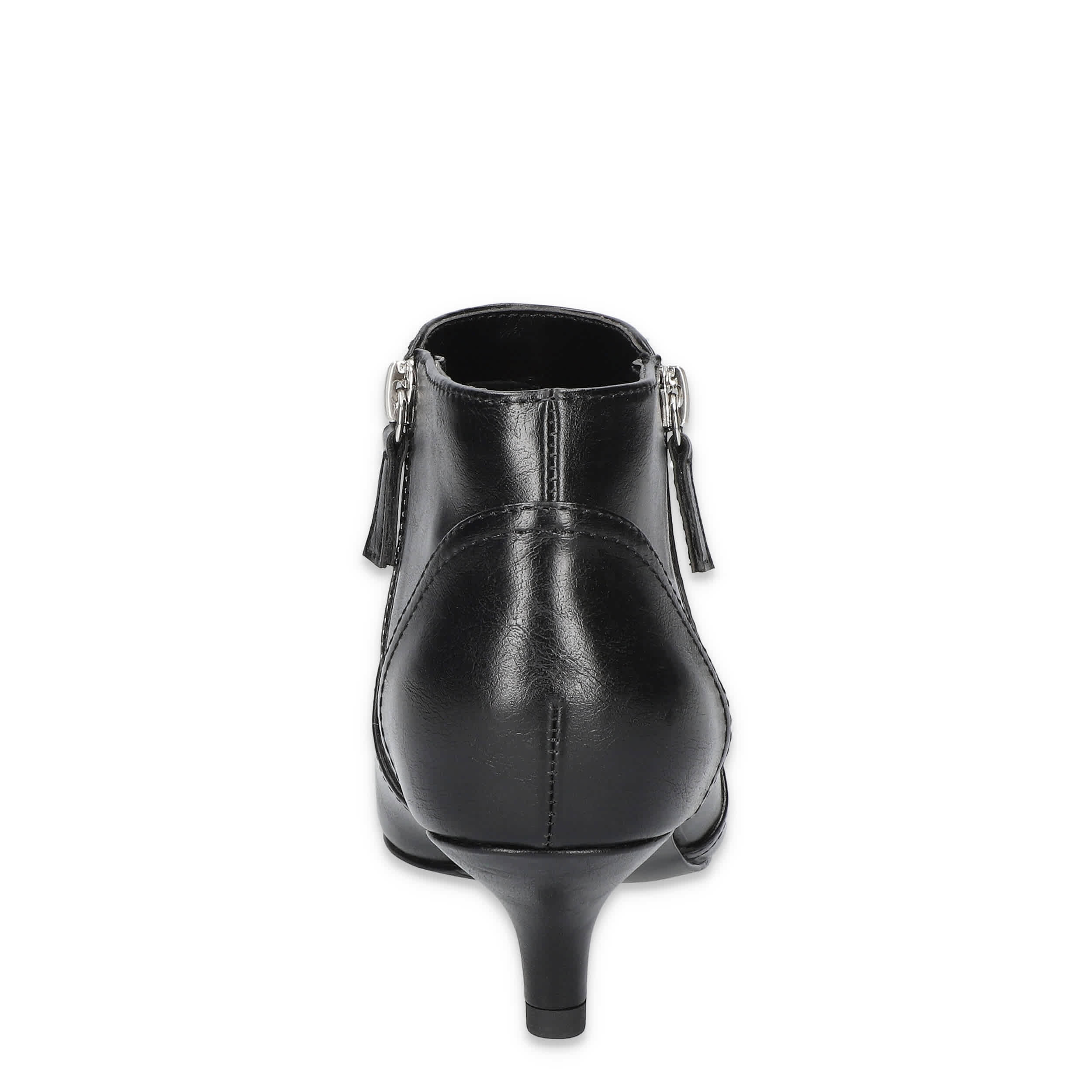 Go for urban sophisticate in the Annalee boot from Easy Street. With a faux leather upper featuring a stitched overlay, this pointy-toed bootie is your on-trend stylemaker. The heel-to-toe insole cushions, while the low heel offers just enough stable lift.