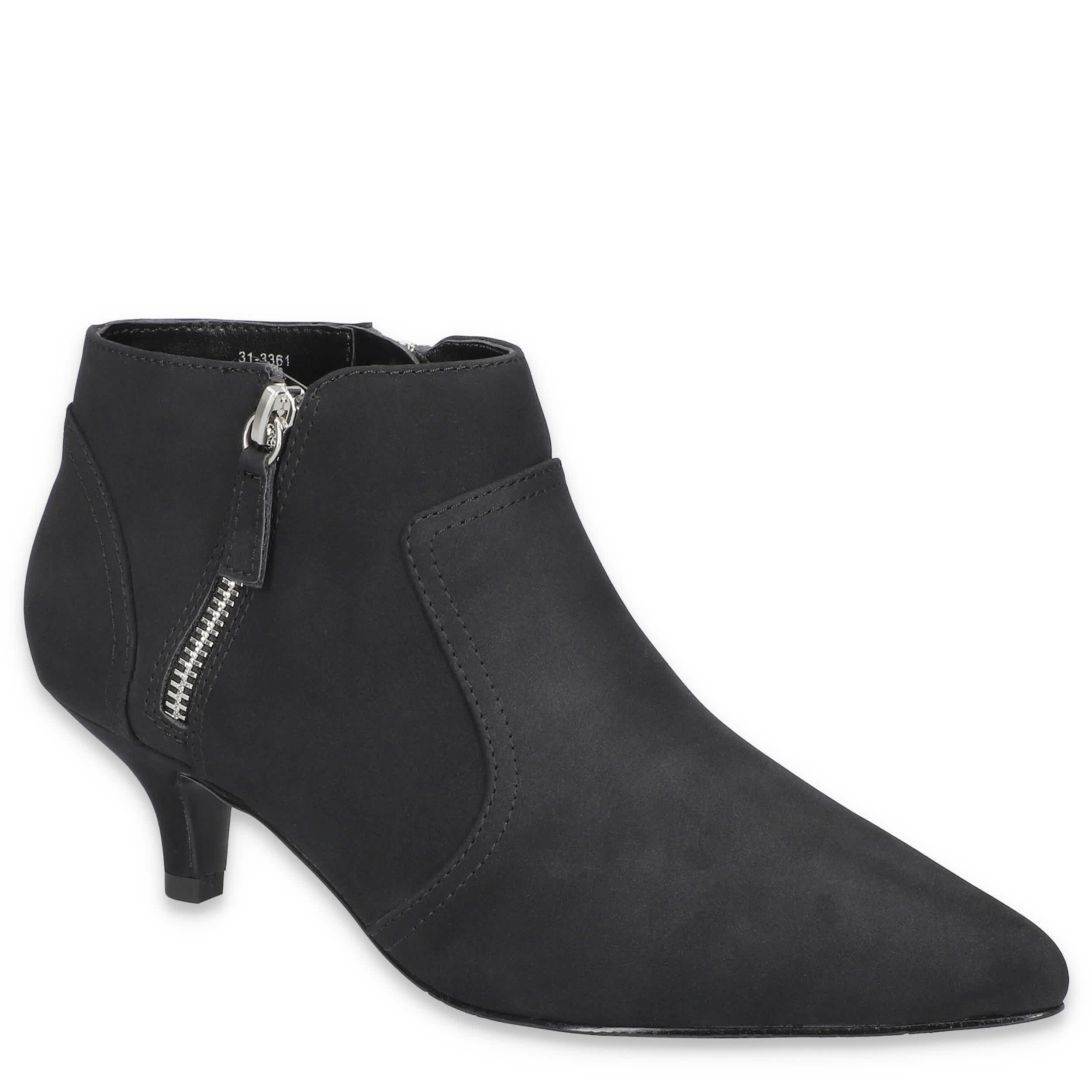 Go for urban sophisticate in the Annalee boot from Easy Street. With a faux suede upper featuring a stitched overlay, this pointy-toed bootie is your on-trend stylemaker. The heel-to-toe insole cushions, while the low heel offers just enough stable lift.