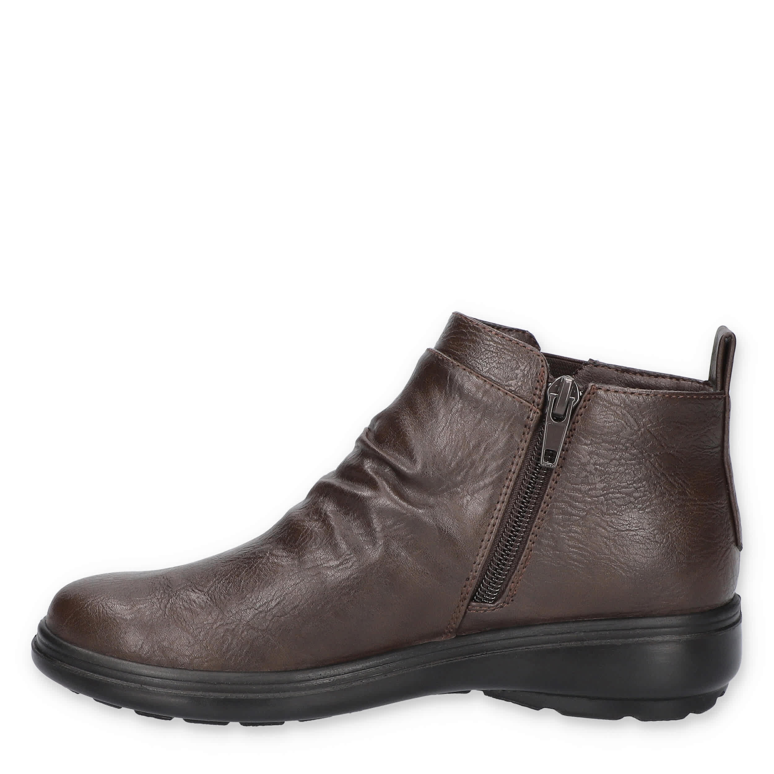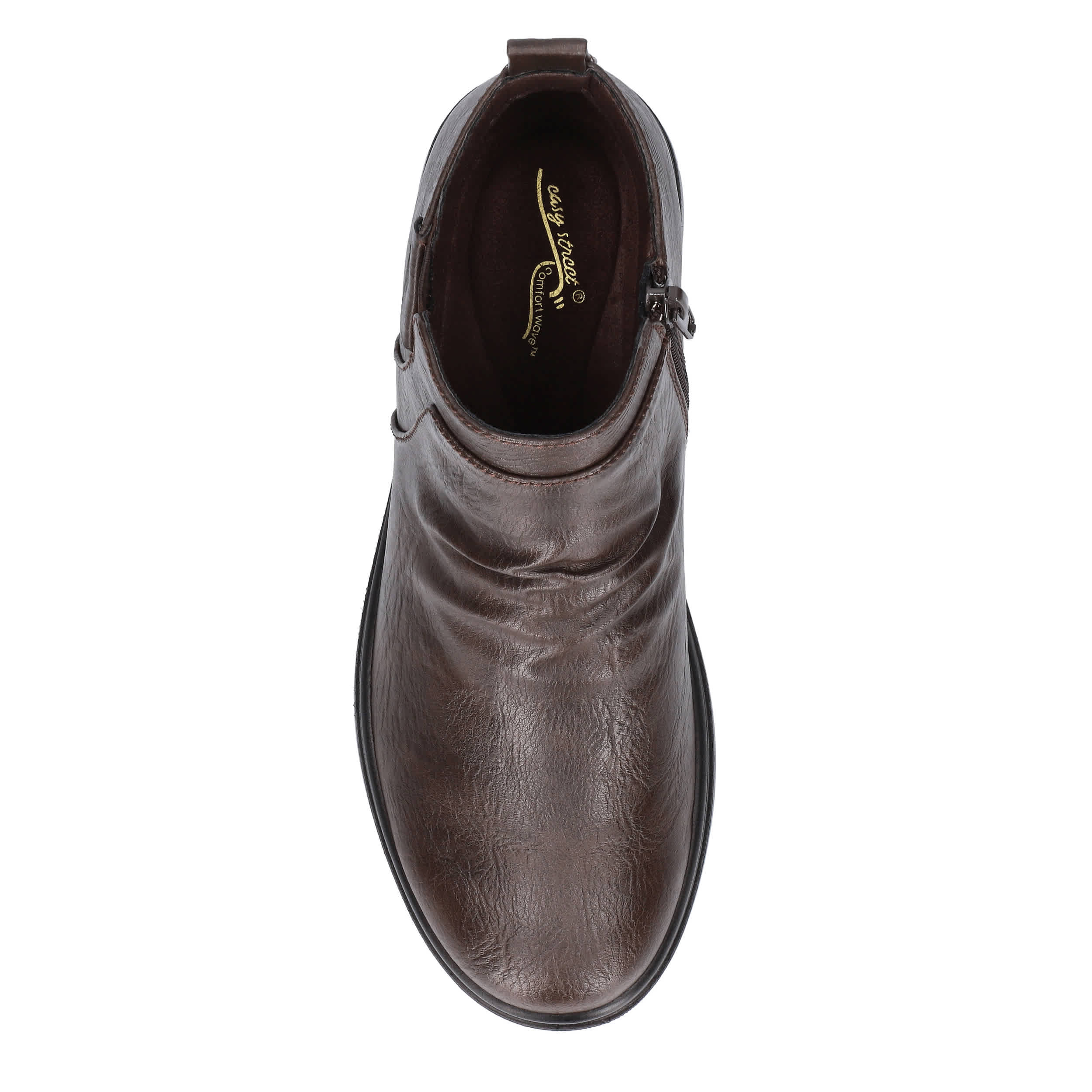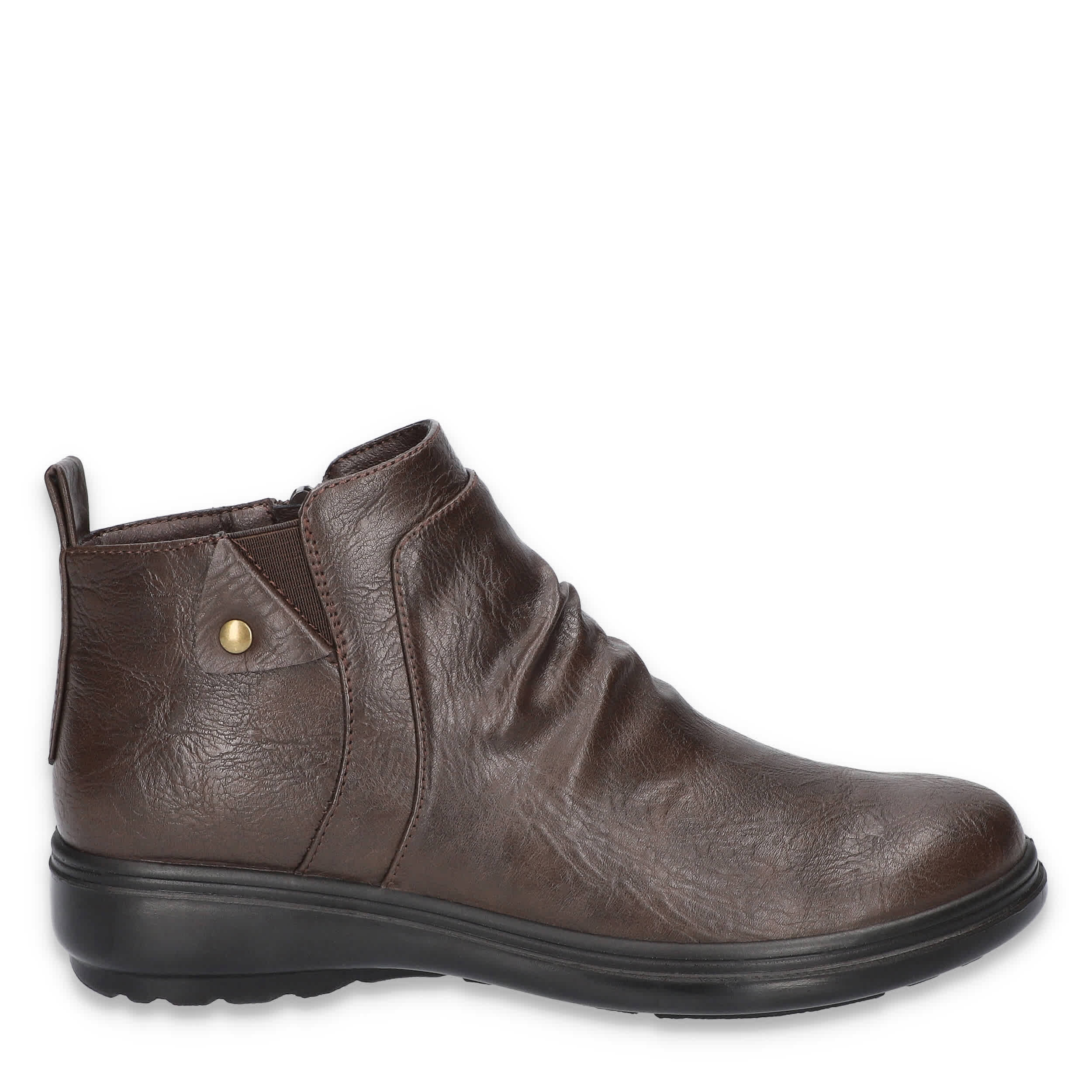 Step into your style with the Ariadne women's ankle boot from Easy Street. Featuring a faux leather upper with a nailhead accent and ruching for extra style, this inside zip bootie also has a Comfort Wave sole that cradles your foot. The ultralight Easy Motion by Easy Street footbed cushions while the low heel maintains stability.