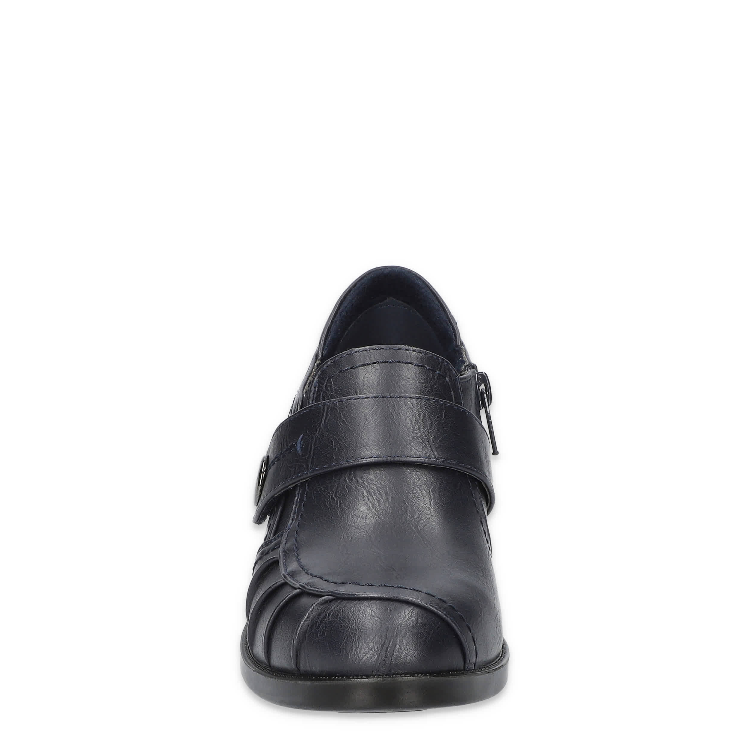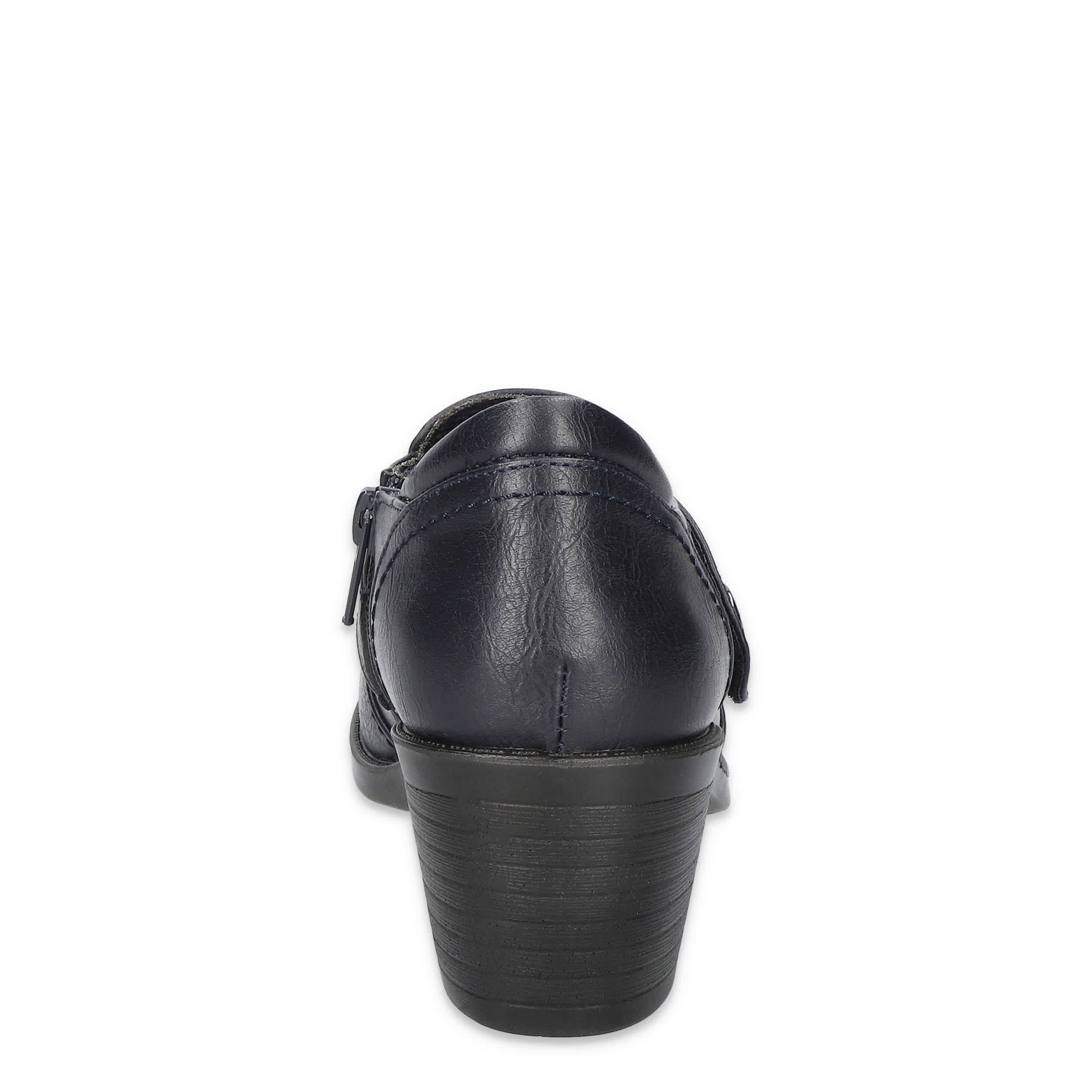 Create a unique look in the Easy Street Ballad clog. Featuring a faux leather upper with pleated detailing on one side and a Comfort Wave construction, these inside zip clogs are great for work or play. The Easy Motion by Easy Street insole cushions, while the block heel offers stability on your journey.