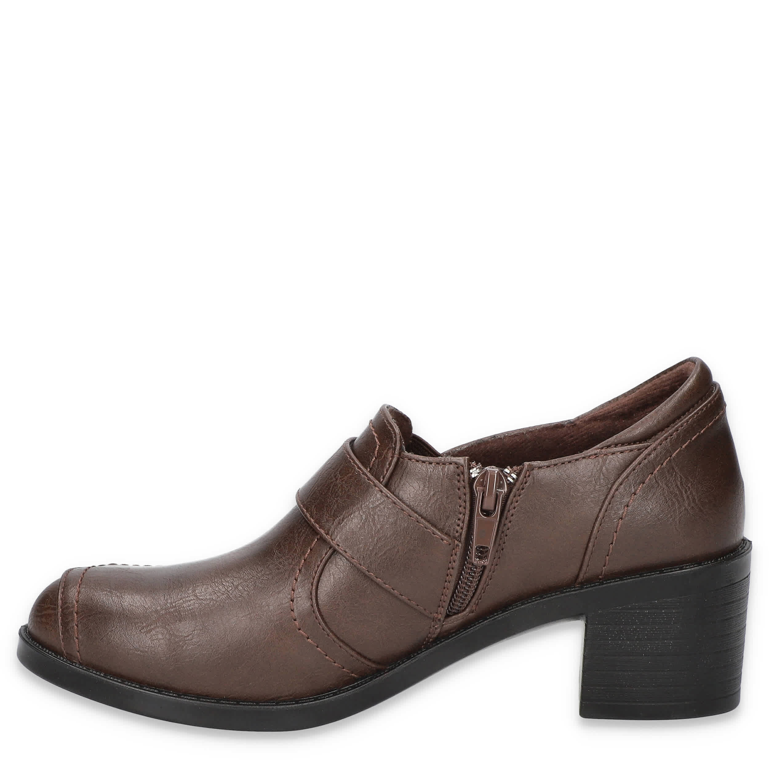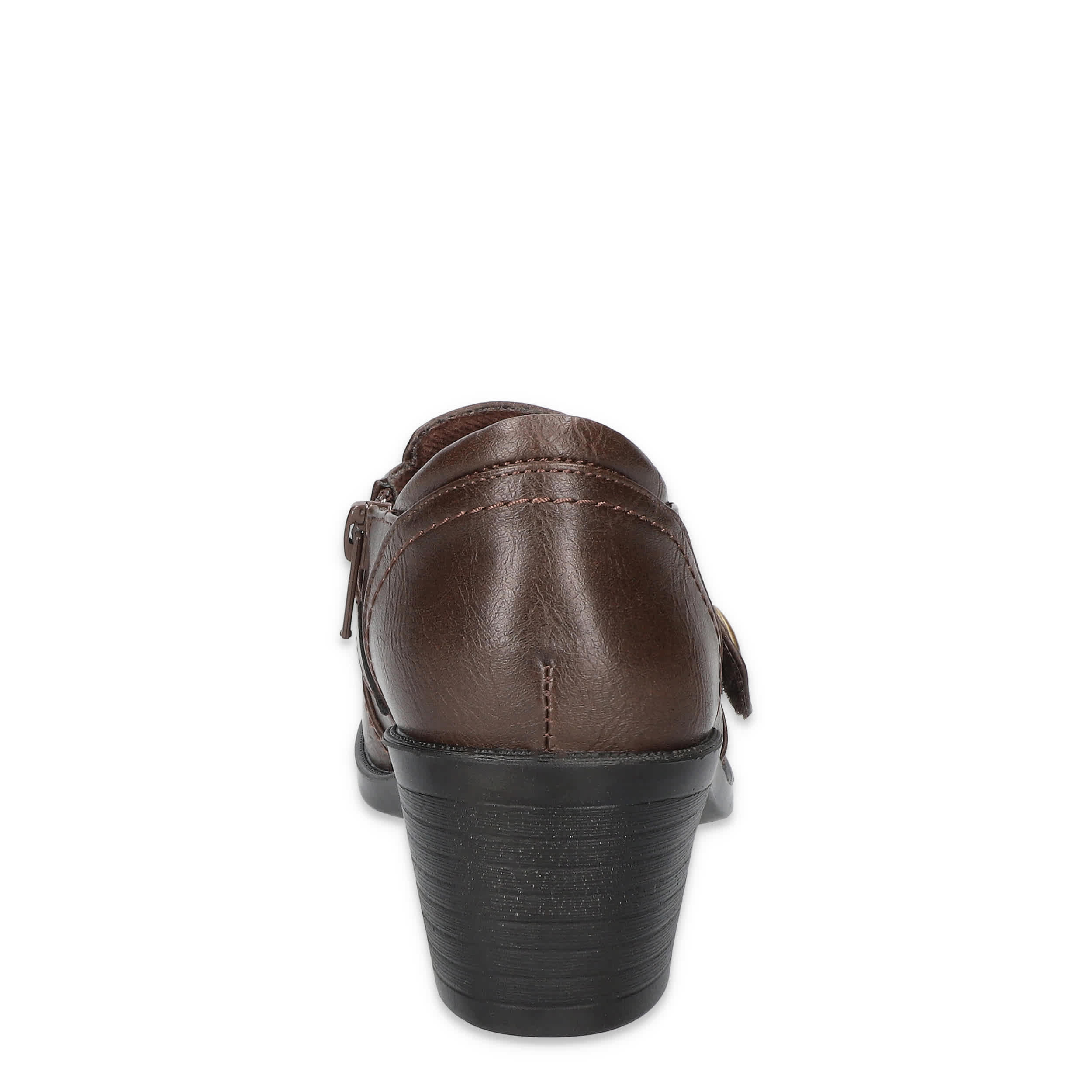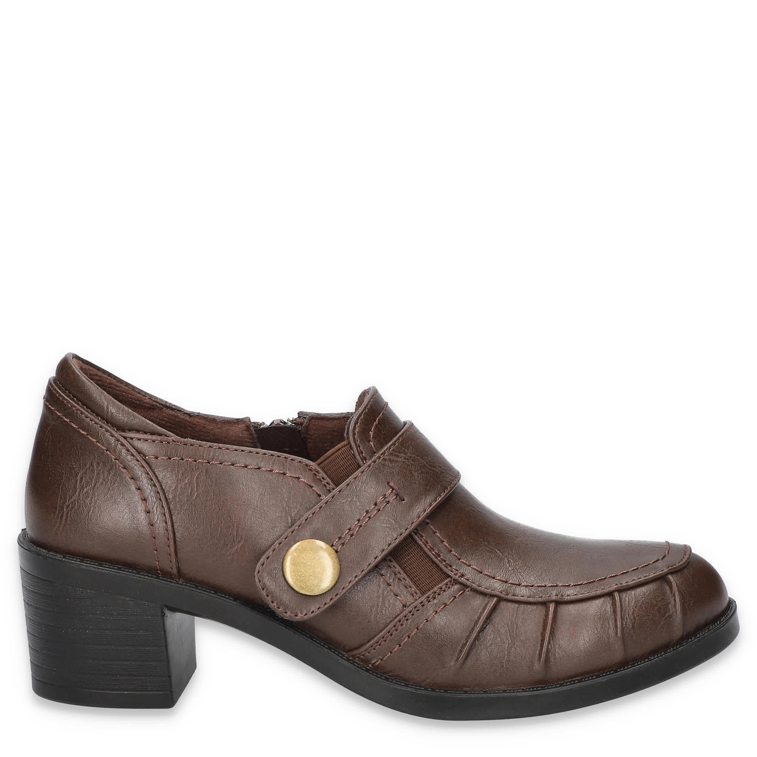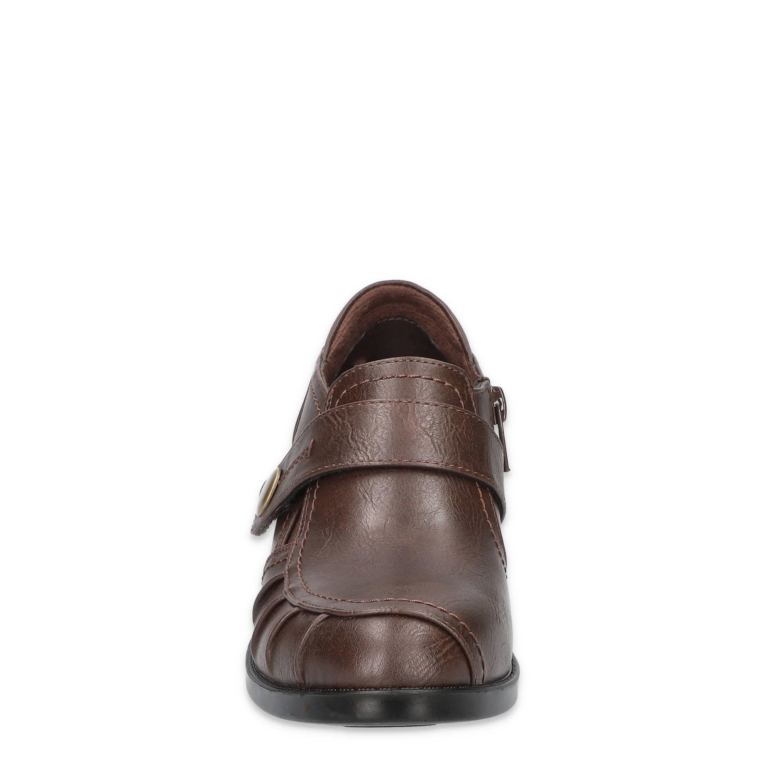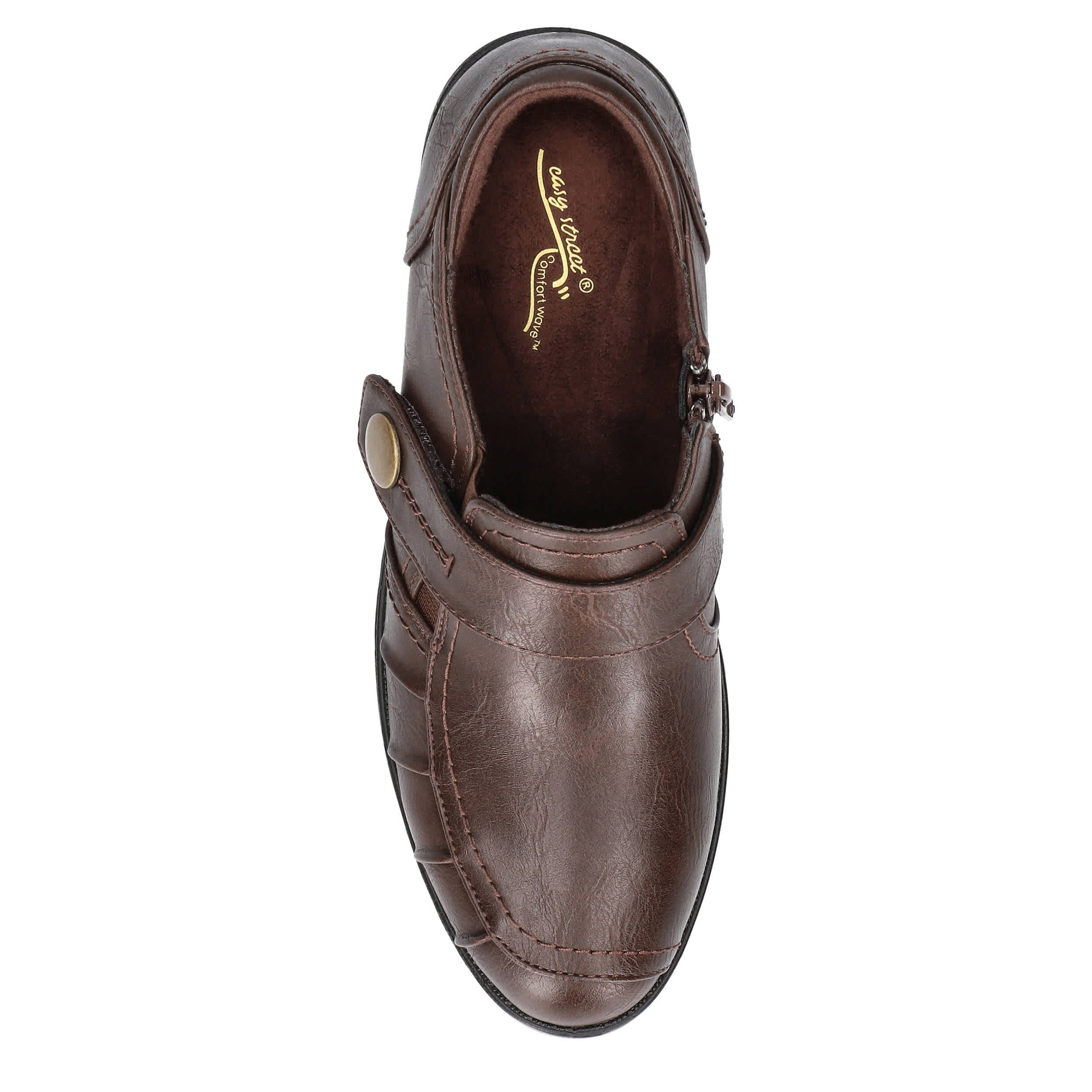 Create a unique look in the Easy Street Ballad clog. Featuring a faux leather upper with pleated detailing on one side and a Comfort Wave construction, these inside zip clogs are great for work or play. The Easy Motion by Easy Street insole cushions, while the block heel offers stability on your journey.