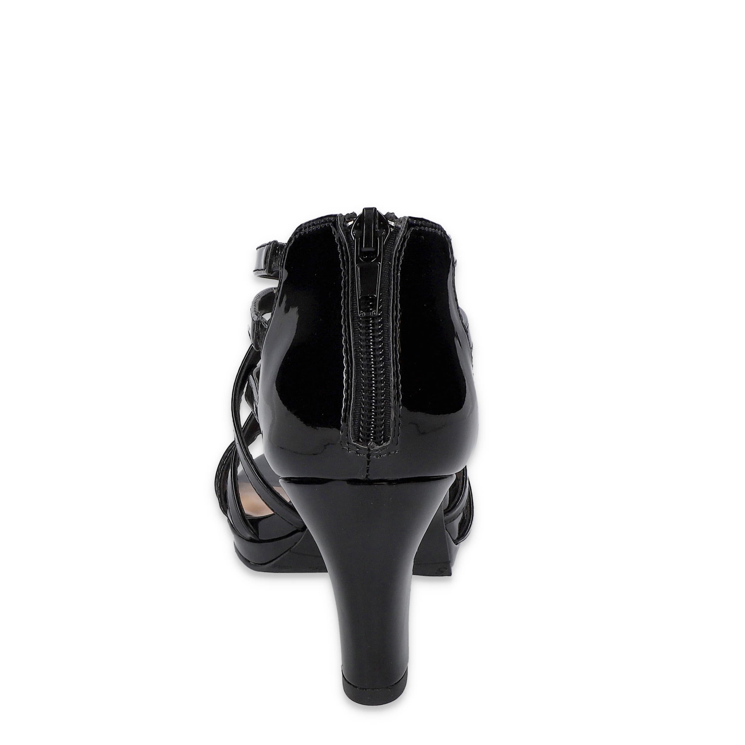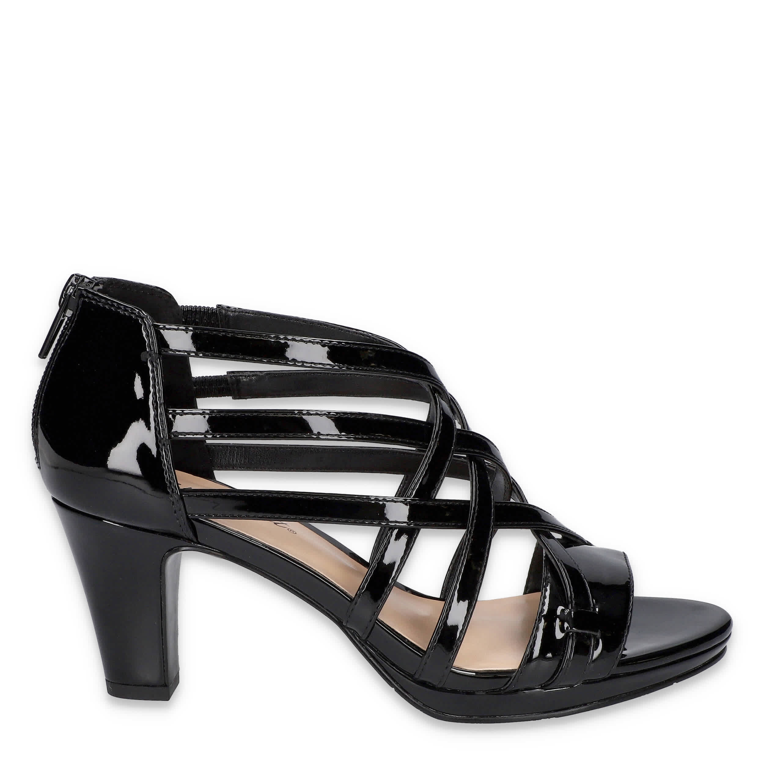 Dress up your casual look in the Easy Street Bee women's sandal. With a patent leather upper and interwoven structure, this rear zip sandal offers modern elegance and breathability. The footbed offers cushioning while the covered heel adds just enough lift.