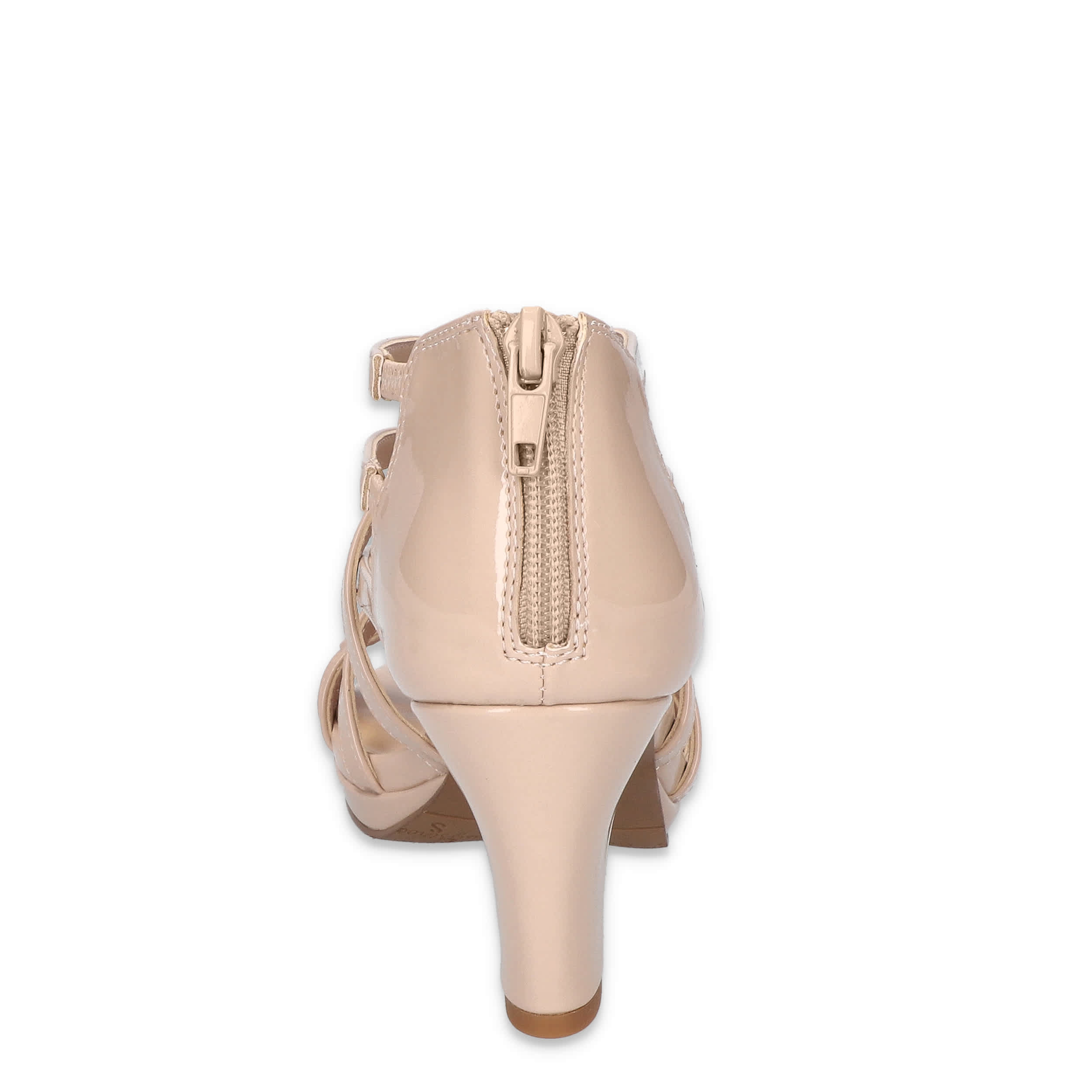 Dress up your casual look in the Easy Street Bee women's sandal. With a patent leather upper and interwoven structure, this rear zip sandal offers modern elegance and breathability. The footbed offers cushioning while the covered heel adds just enough lift.