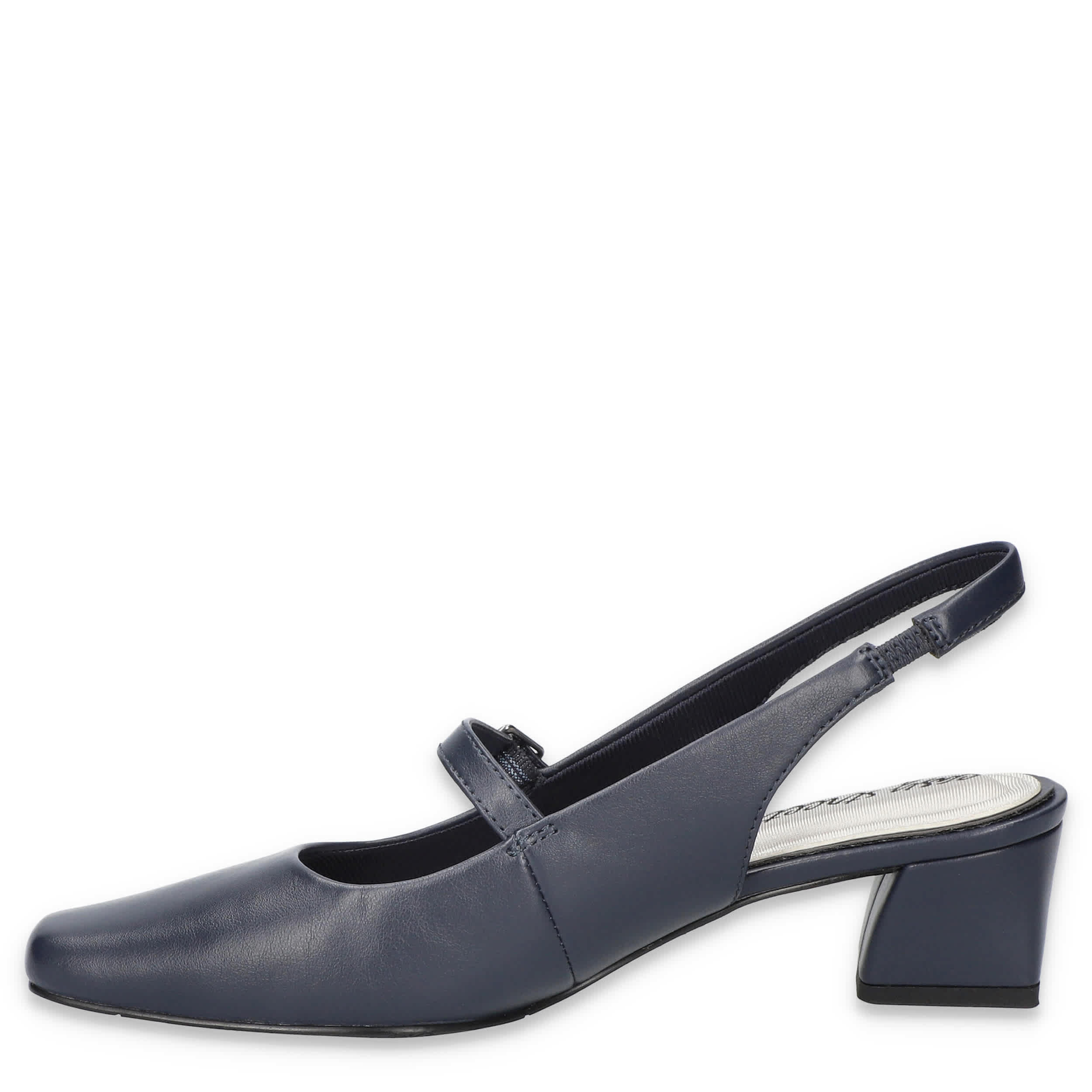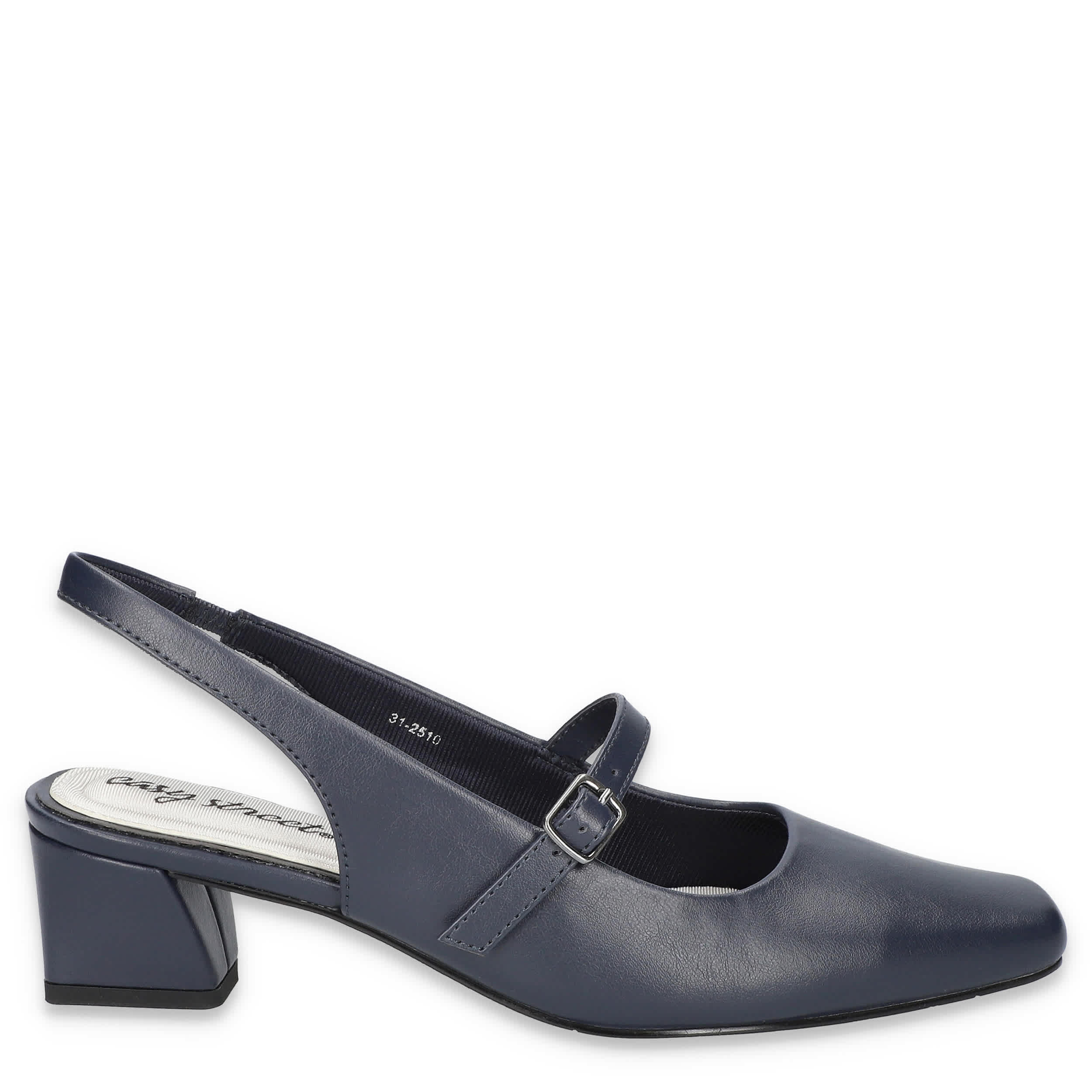 Raise your profile in the Cameo women's slingback pump from Easy Street. Featuring a faux leather upper with a snip square toe, this slingback also has a secure instep buckle strap. The heel-to-toe insole cushions your steps while the underslung heel works style magic on the Easy Flex outsole.