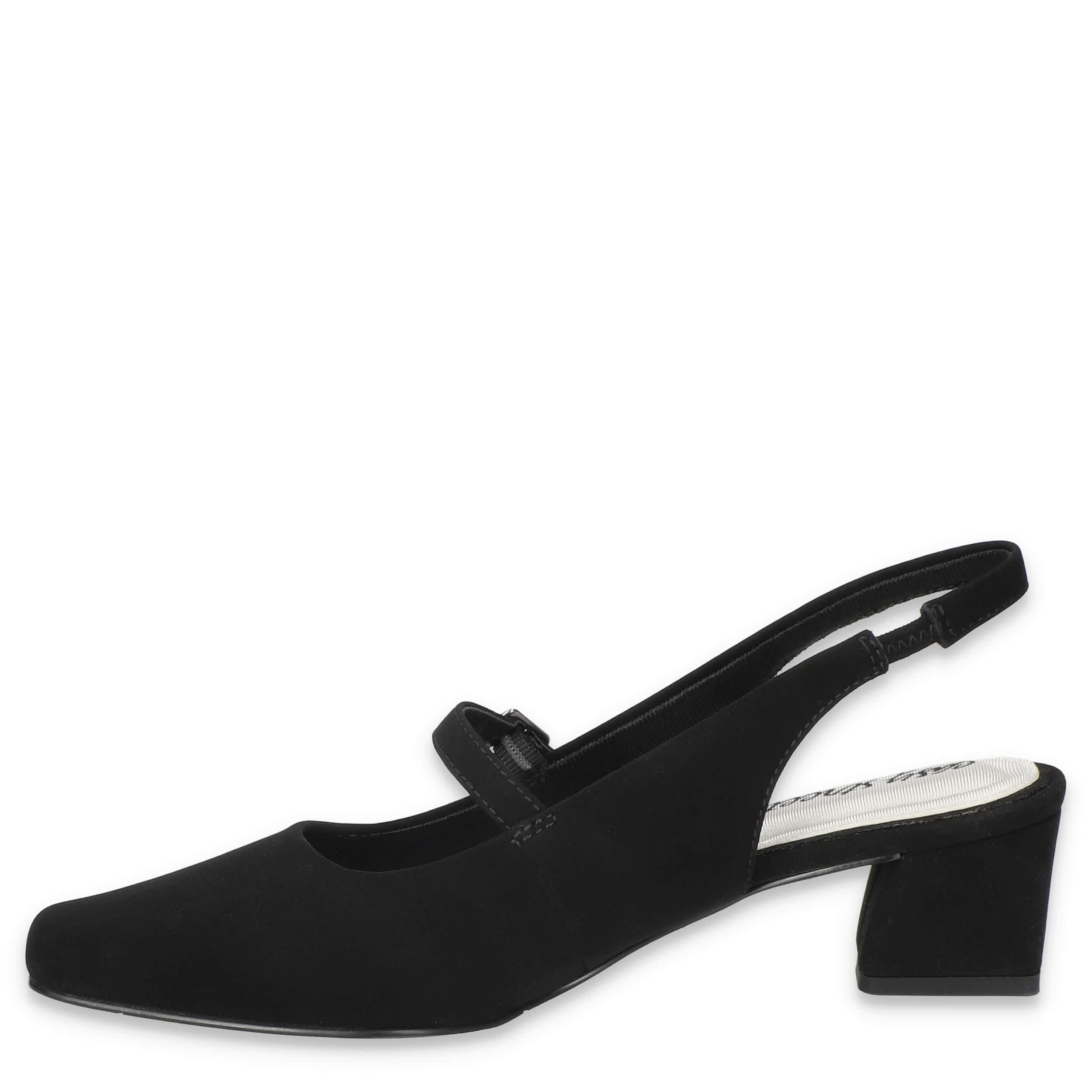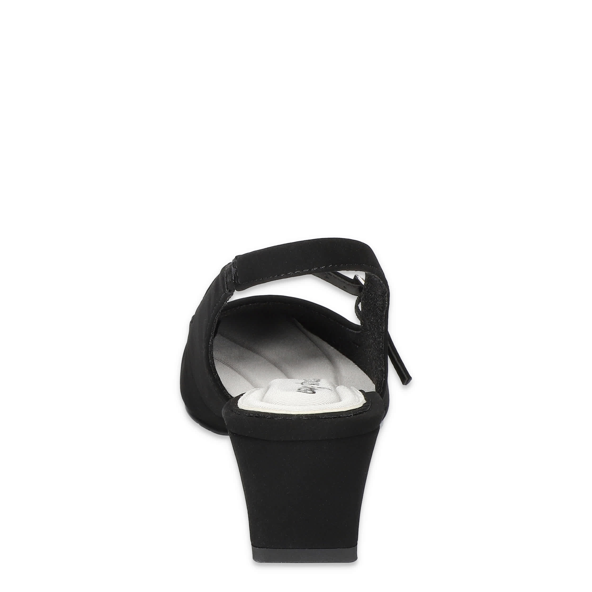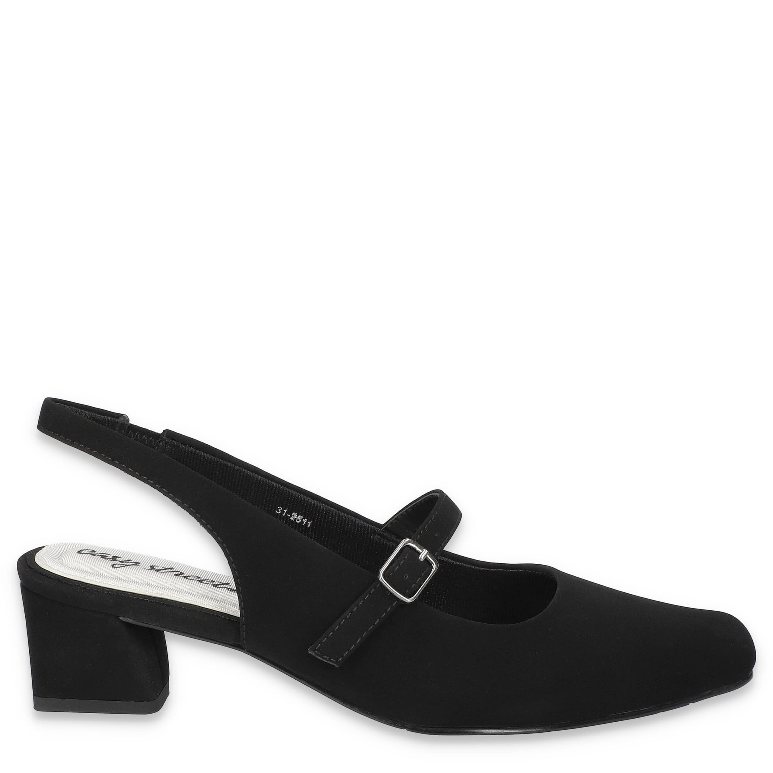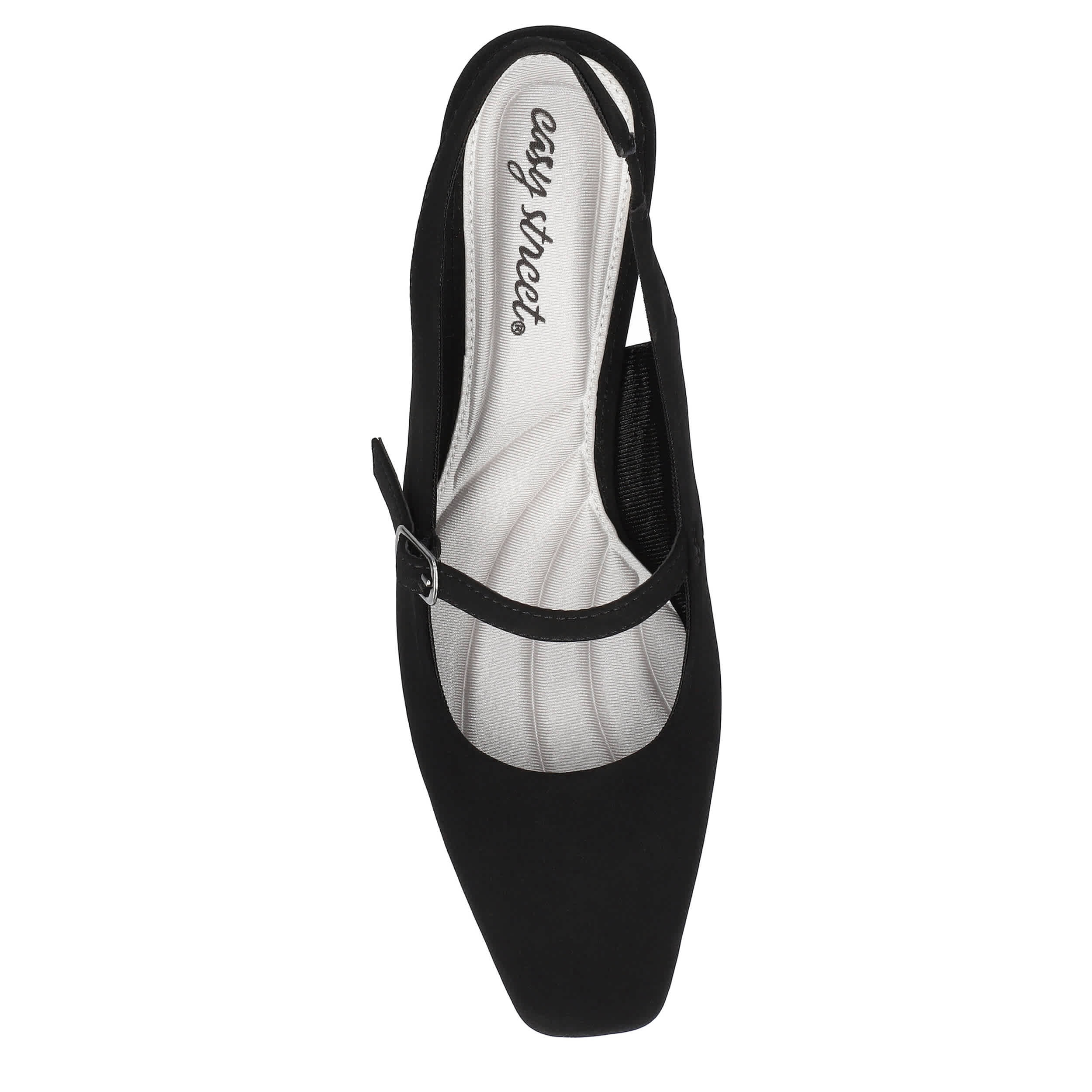 Raise your profile in the Cameo women's slingback pump from Easy Street. Featuring a faux suede upper with a snip square toe, this slingback also has a secure instep buckle strap. The heel-to-toe insole cushions your steps while the underslung heel works style magic on the Easy Flex outsole.