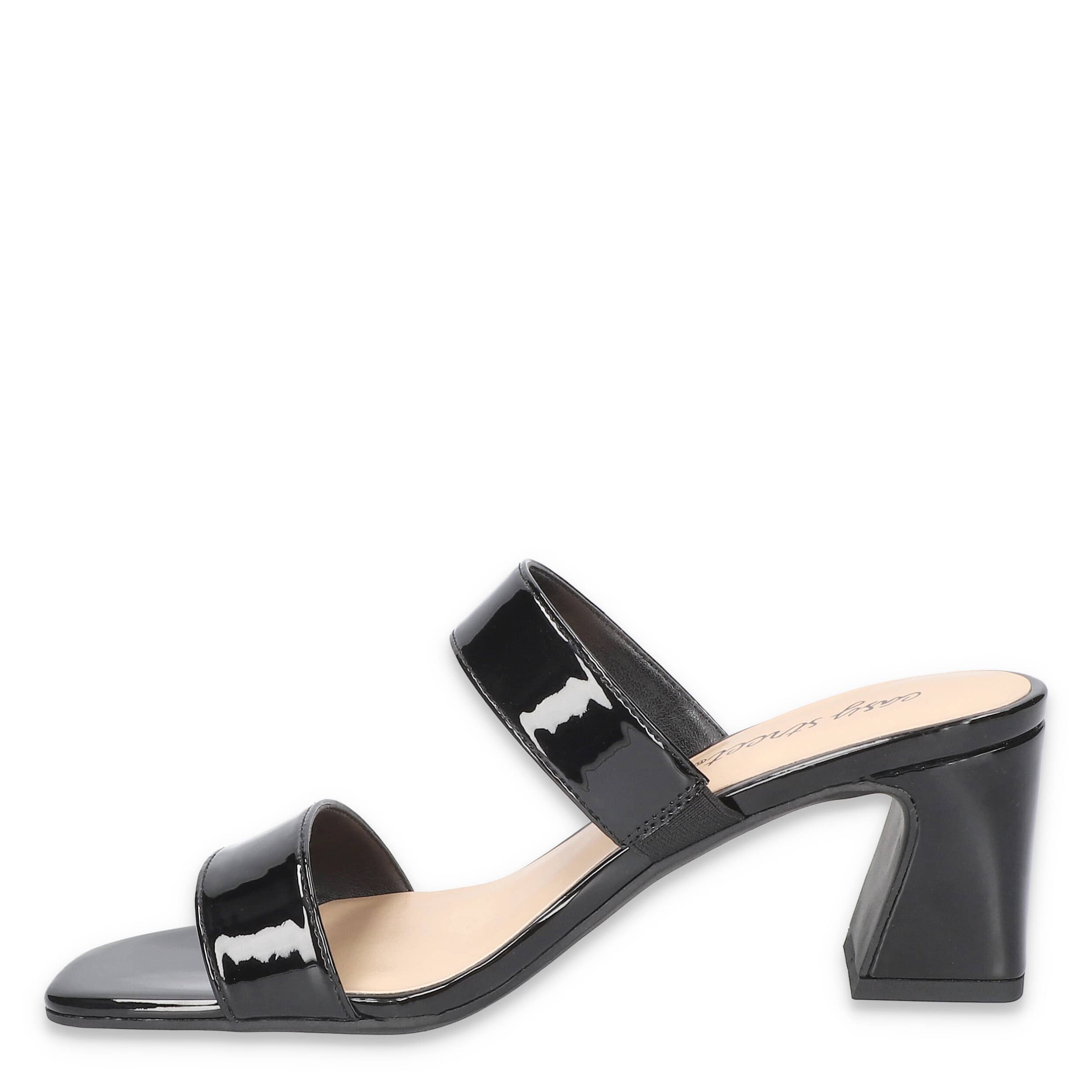 Keep your style simple in the Clovelle women's slide sandal from Easy Street. With a patent leather upper featuring a two-band design, this slide can go relaxed or refined. The Easy Flex sole supports every step, while the angled heel adds just enough lift.