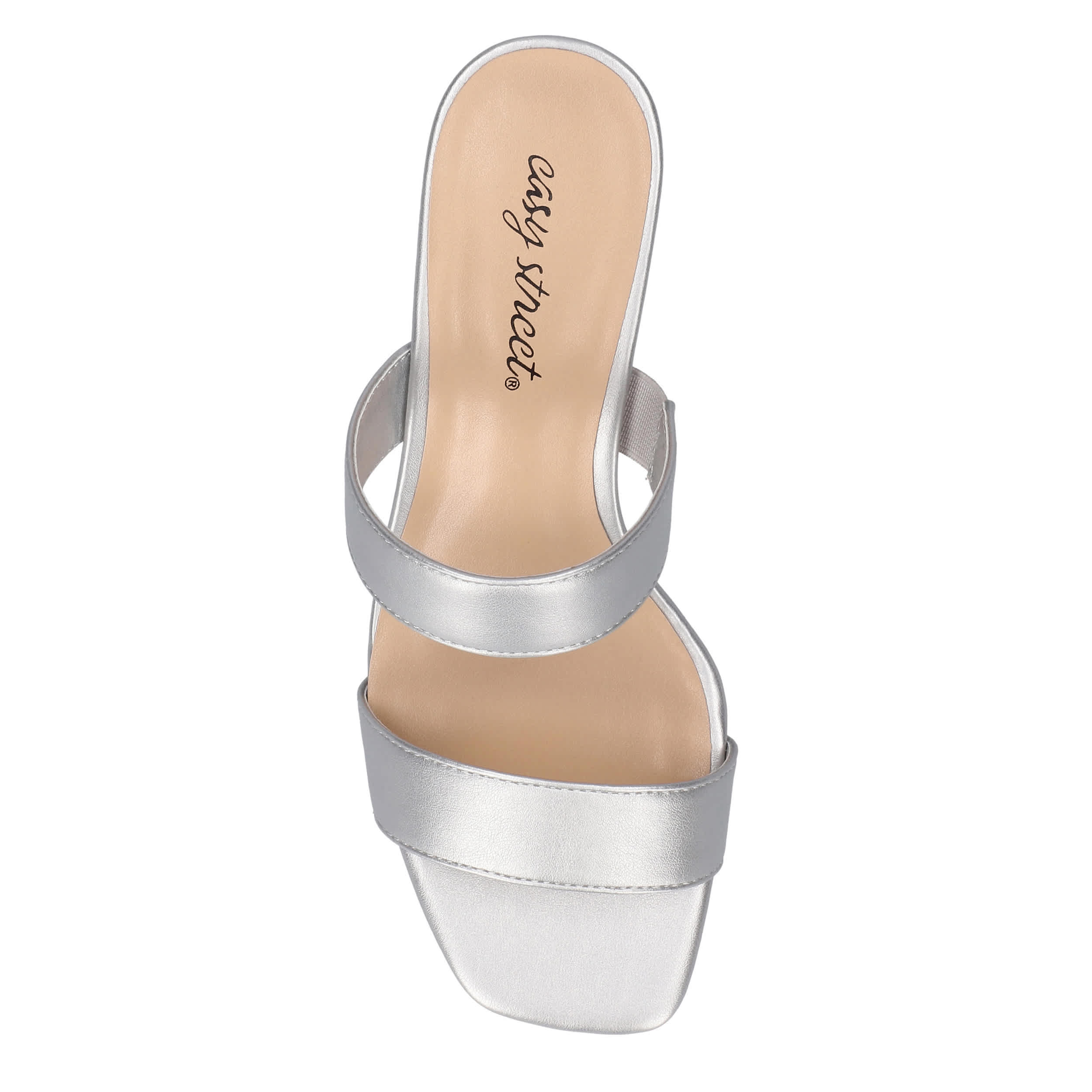 Keep your style simple in the Clovelle women's slide sandal from Easy Street. With a metallic faux leather upper featuring a two-band design, this slide can go relaxed or refined. The Easy Flex sole supports every step, while the angled heel adds just enough lift.