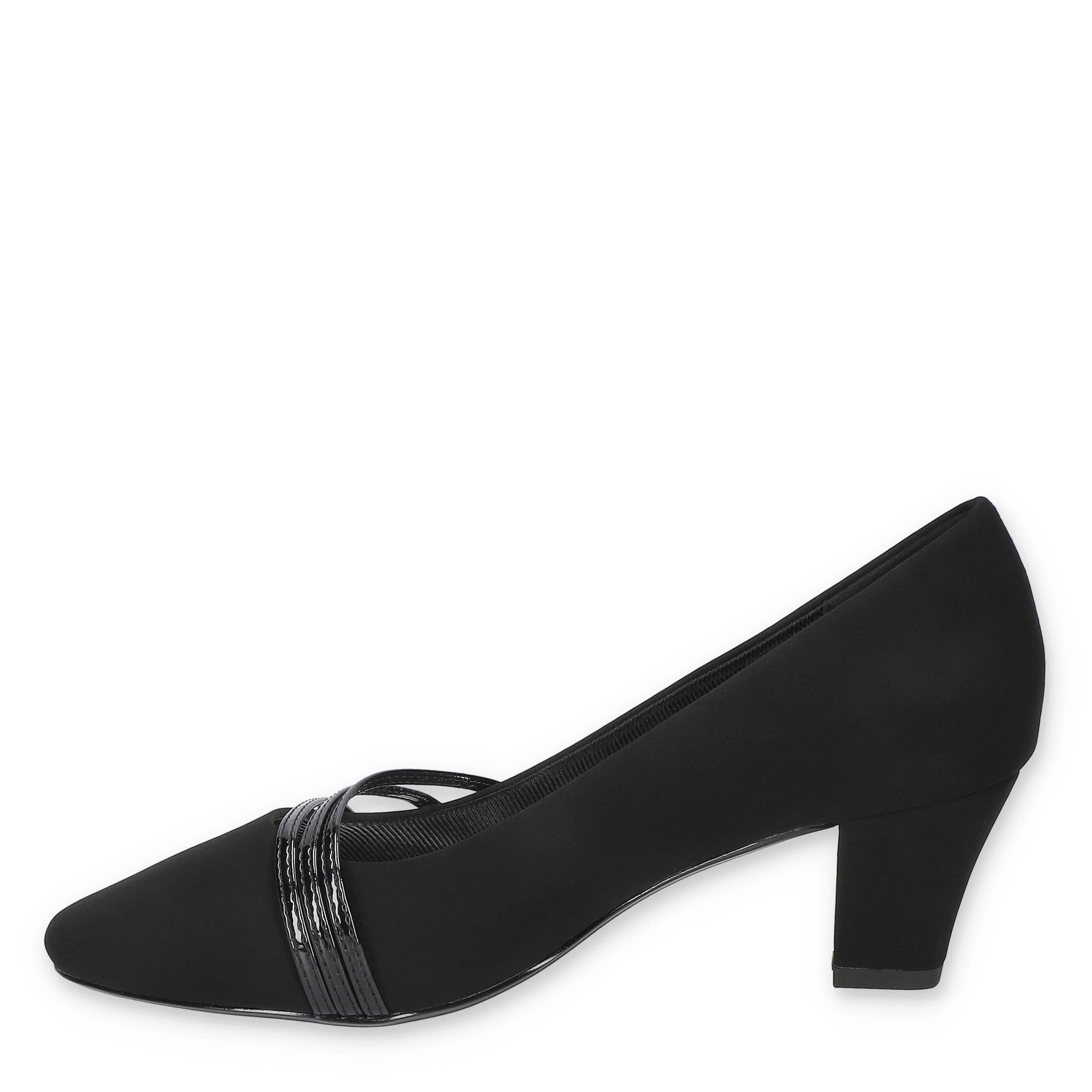 Strike your pose in the Cristiny women's pump from Easy Street. Featuring a faux suede upper with a patent leather overlay for extra flair, this slip-on shoe is modern and stylish. The footbed cushions every step while the rubber sole supports the block heel.