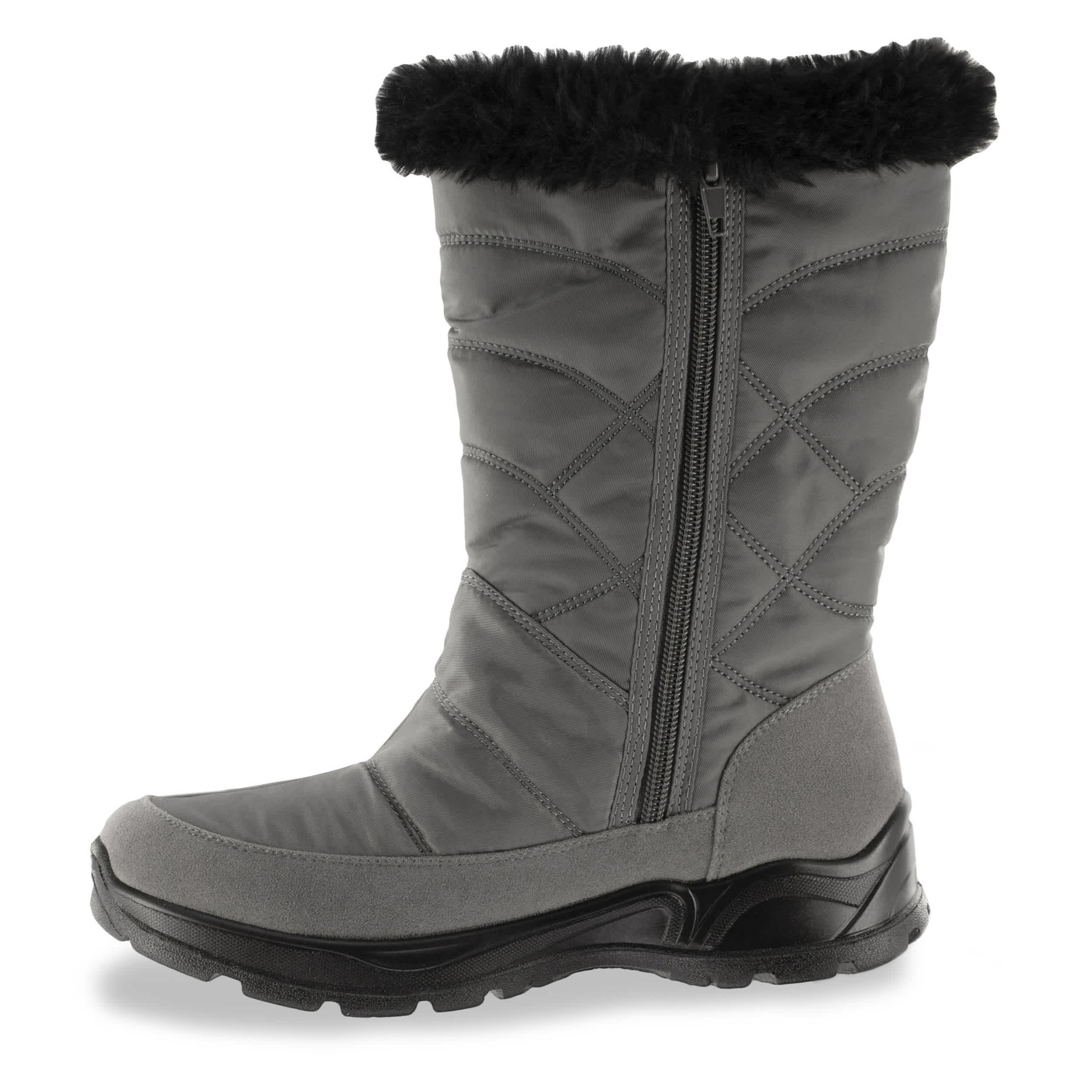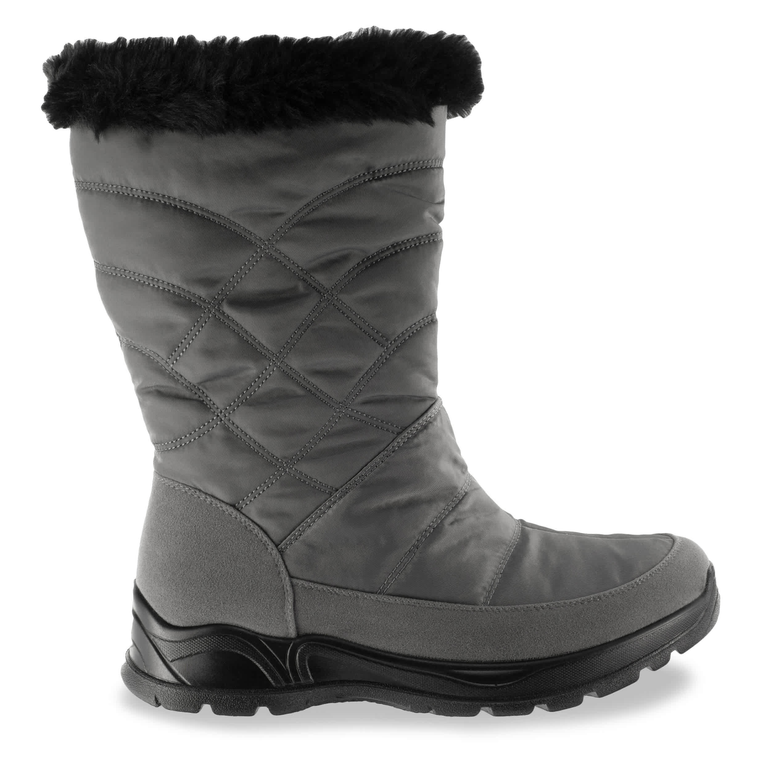 Stay warm and stylish this winter with the Easy Street Cuddle Cold Weather boot. The fabric upper has a gorgeous quilted stitching pattern with a faux fur collar and warm lining. The waterproof outer shell will help keep you dry.