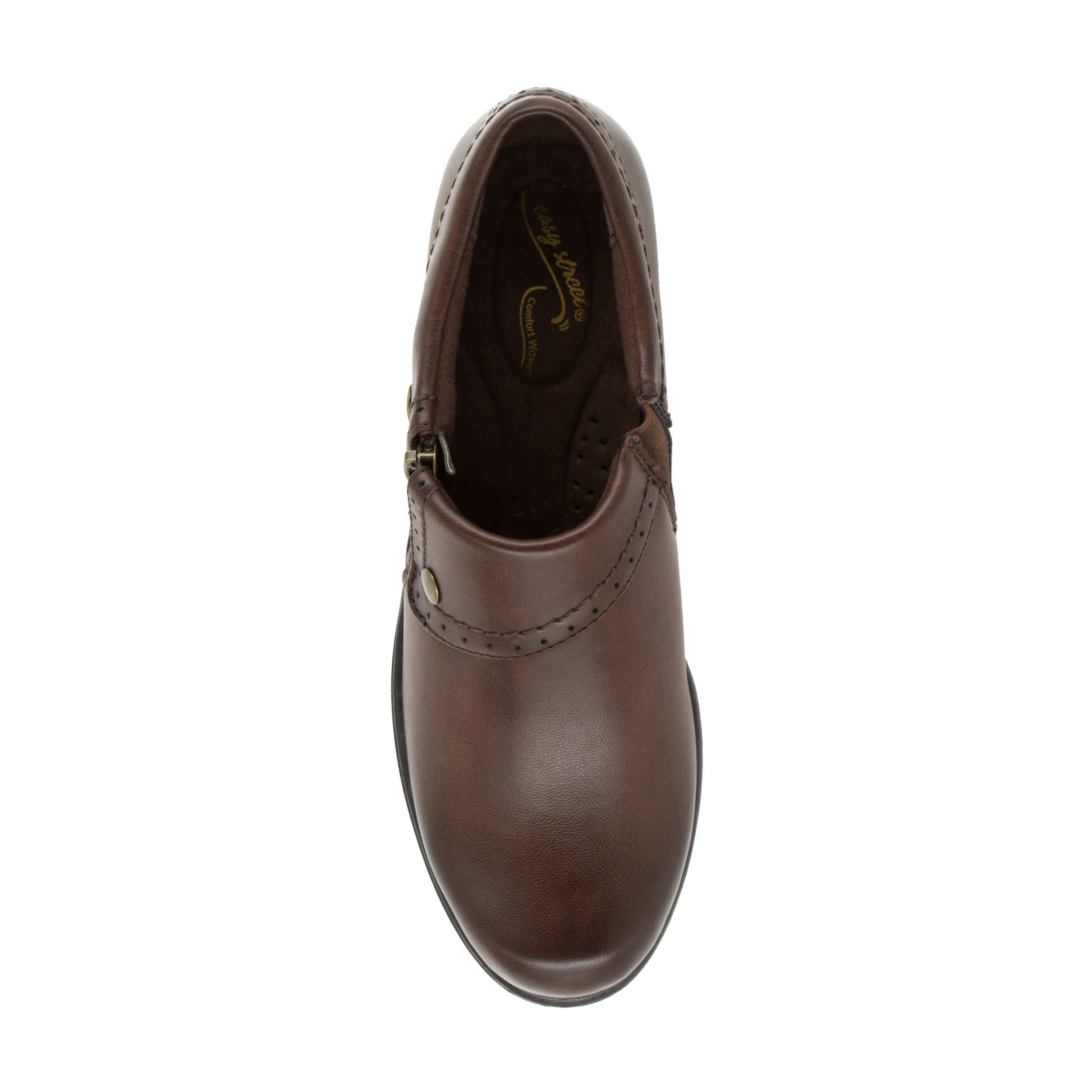 Made for styling, pick up a pair of the Easy Street Darcy women's booties. With a faux leather upper and fold-over collar, this outside zip bootie also features an elastic insert for a secure fit. The Comfort Wave technology offers cushioning while the 1½" block provides just enough lift.