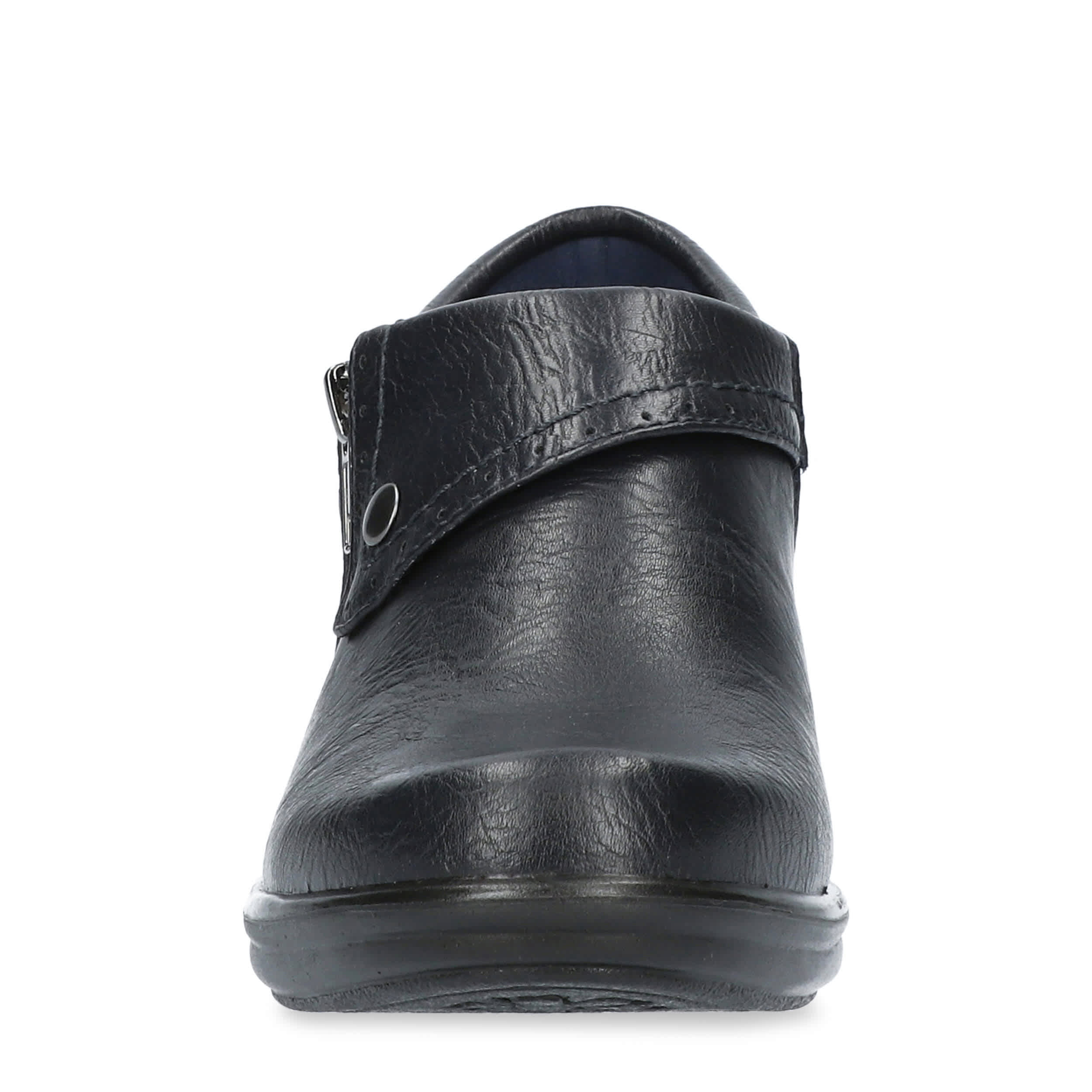 Made for styling, pick up a pair of the Easy Street Darcy women's booties. With a faux leather upper and fold-over collar, this outside zip bootie also features an elastic insert for a secure fit. The Comfort Wave technology offers cushioning while the 1½" block provides just enough lift.