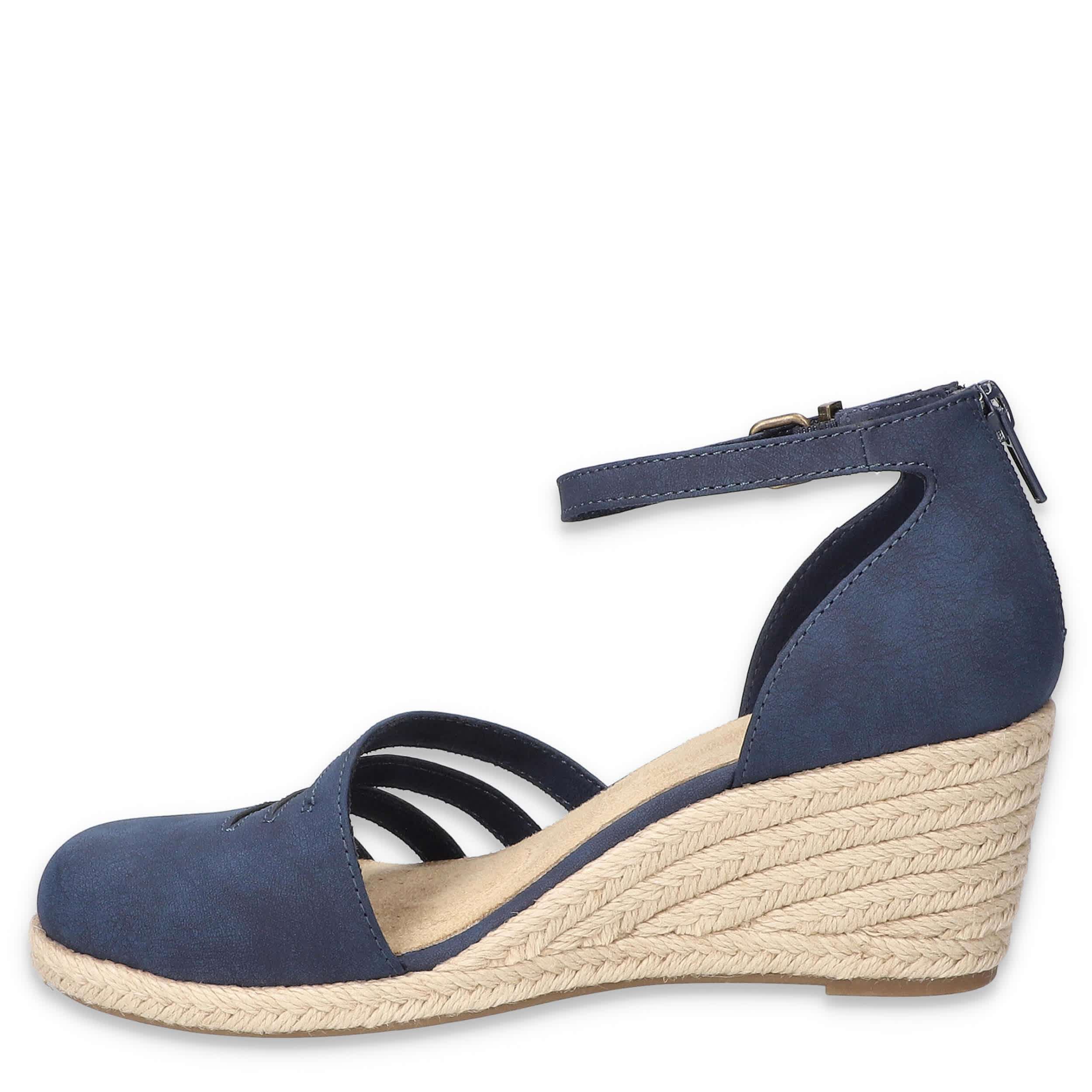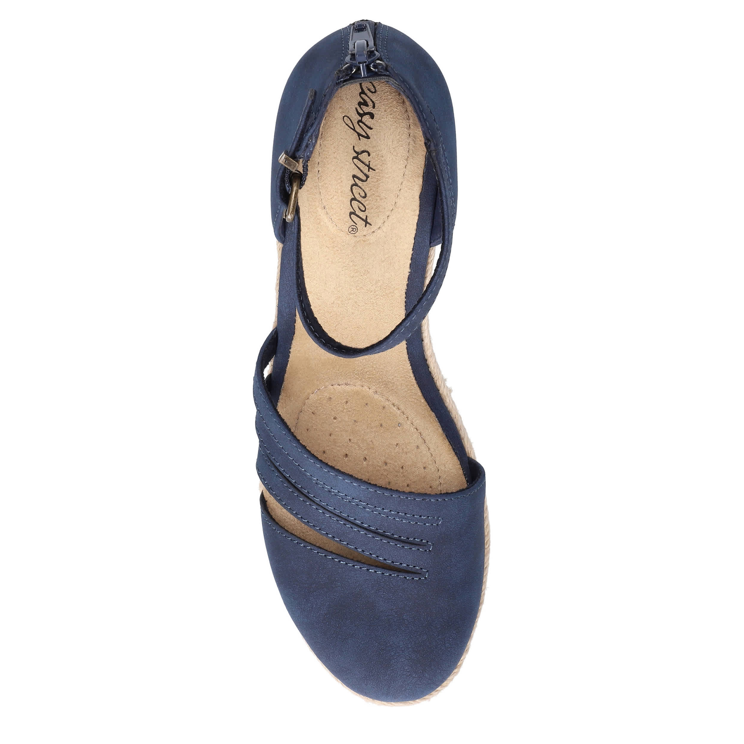 Get ready for summer with the Easy Street Daytona espadrille sandal. Easily slide on these faux leather sandals in comfort with an adjustable ankle strap and back zipper. The padded insole and Superflex outsole offer excellent comfort, while the heel lifts the look.