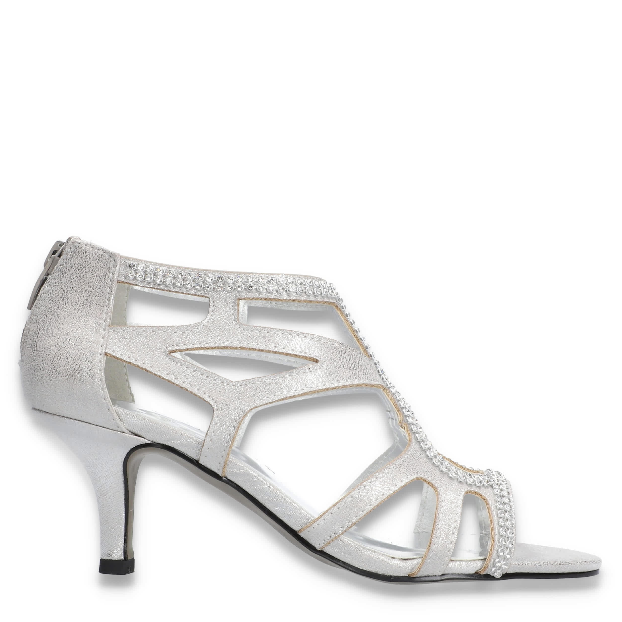Just wait for the compliments in the Easy Street Flattery women's sandal. With a synthetic upper and caged design, this rear zip heel also has an optional embellished trim that adds even more dazzle to any dressy look. The cushioned footbed & Dance Flex sole comfortably put you in the right mood for a confident night out.