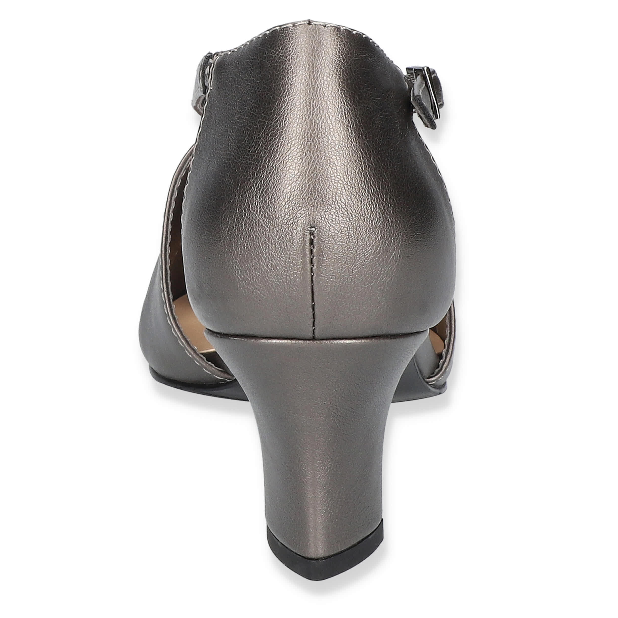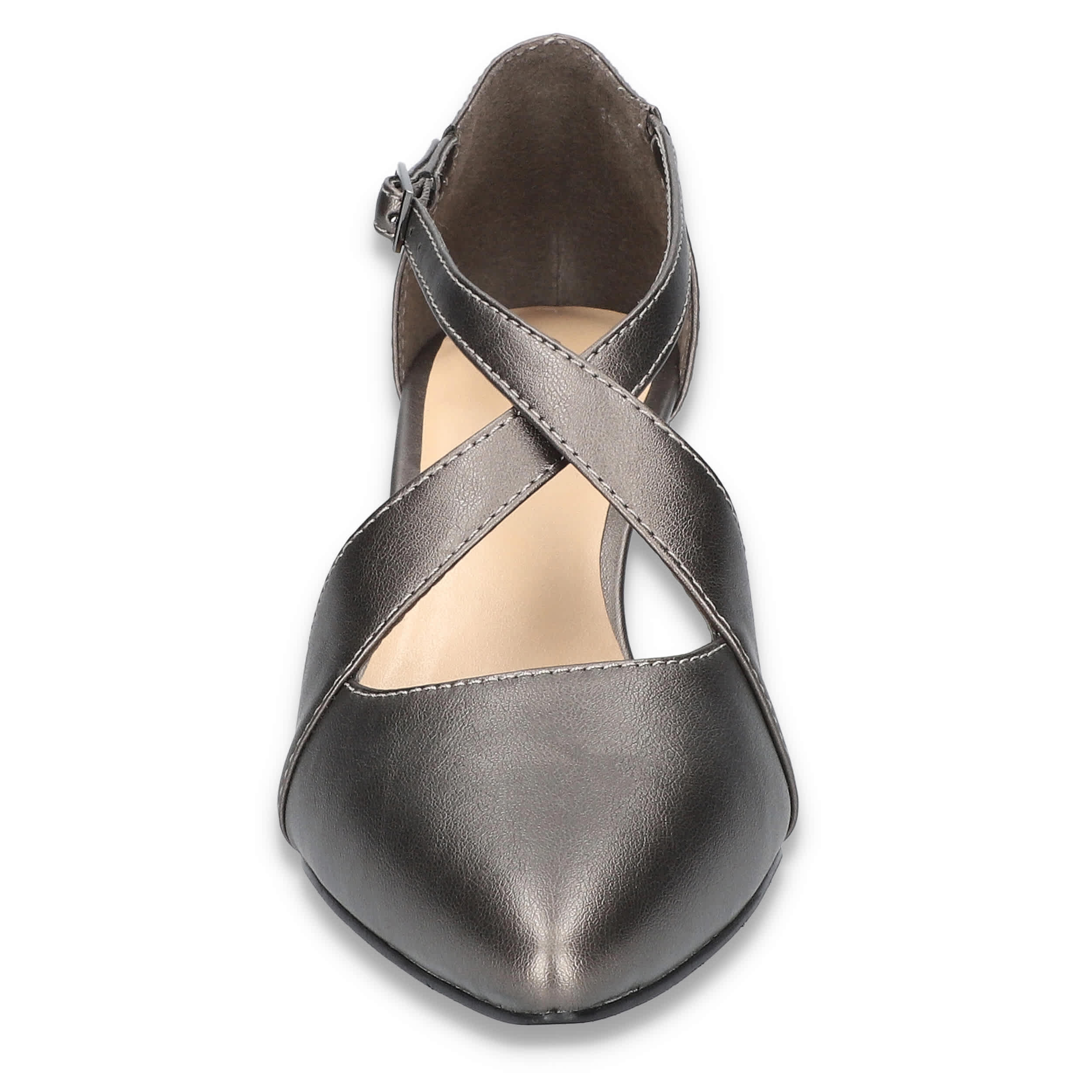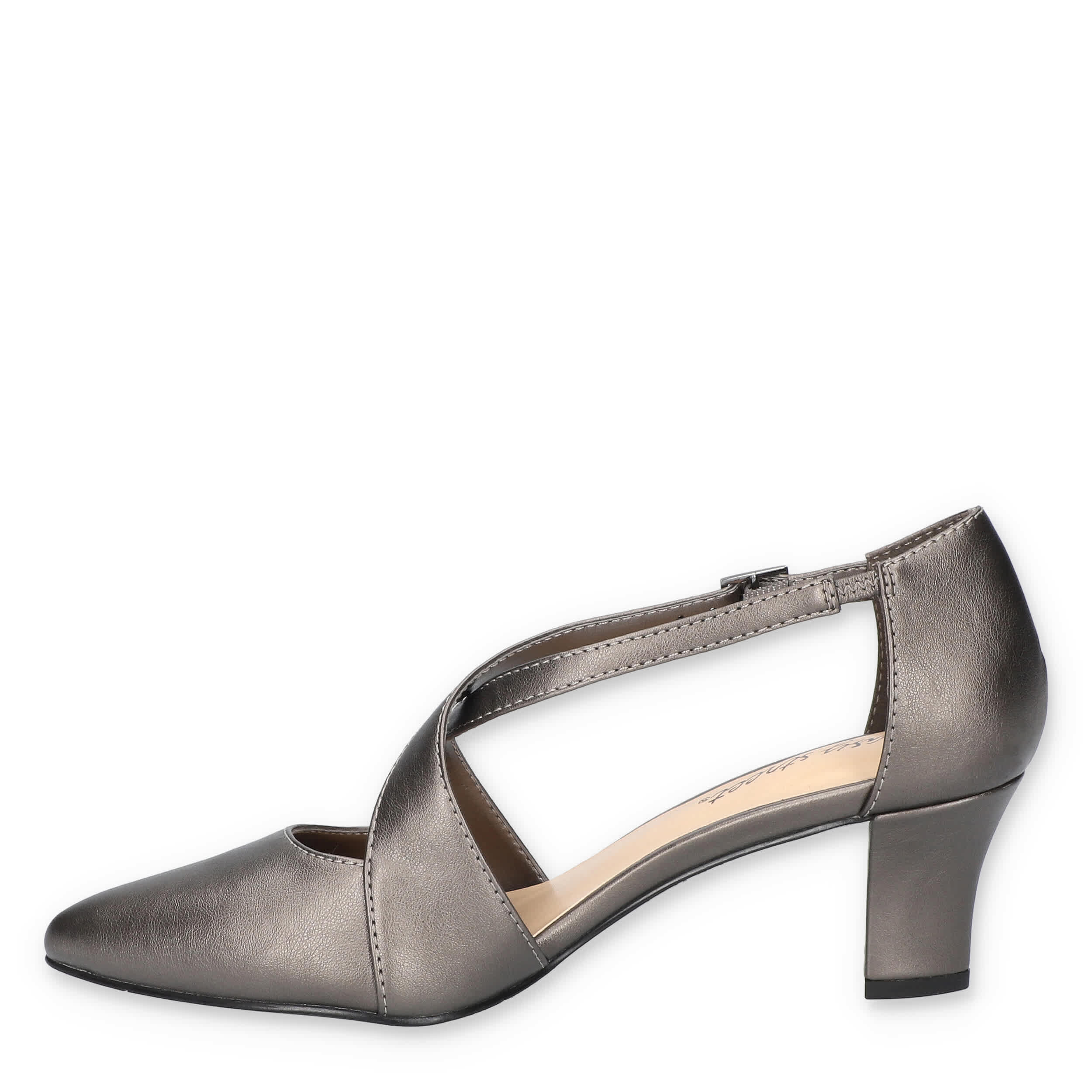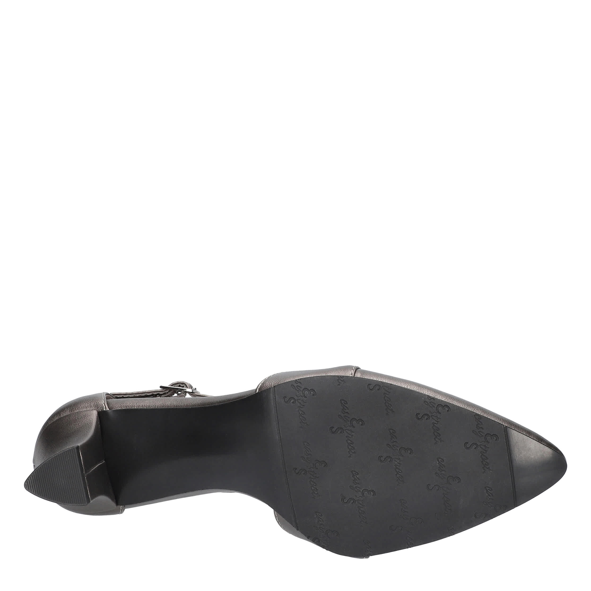 Put your sophistication forward in the Elegance women's pump from Easy Street. With a faux leather upper featuring a crossover vamp design and pointed toe for extra style, this ankle buckle strap shoe enhances your look. The footbed & flexible sole comfortably support every step on the just high enough heel.