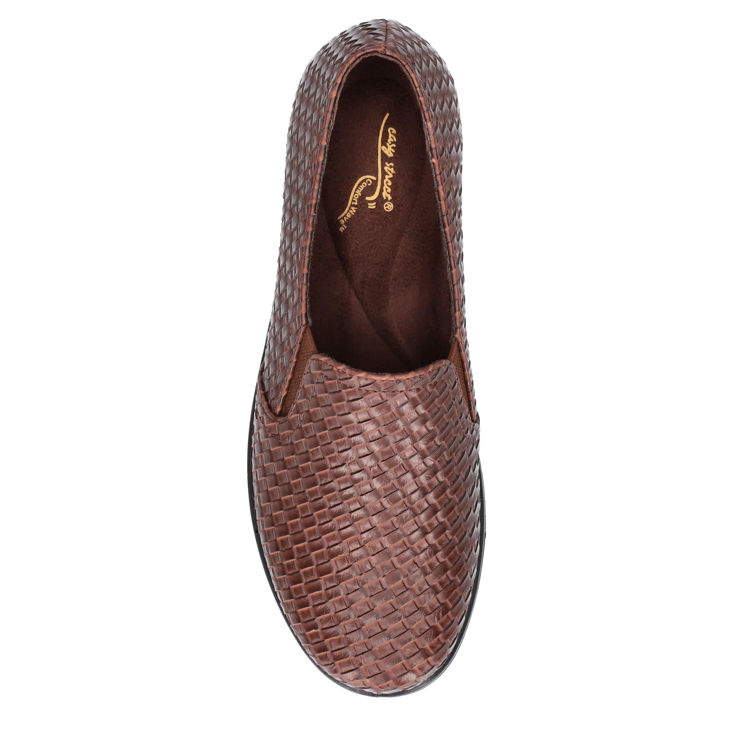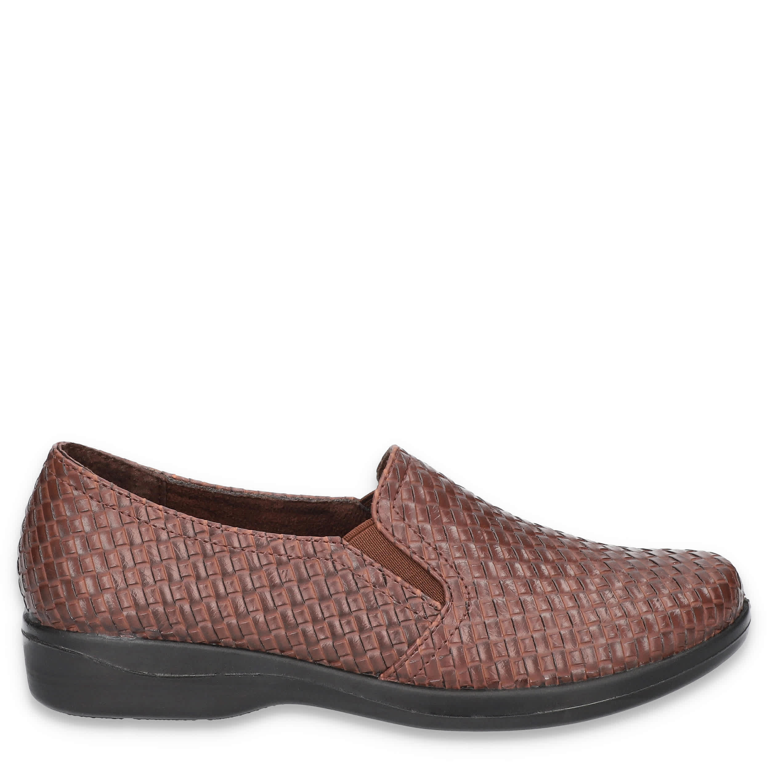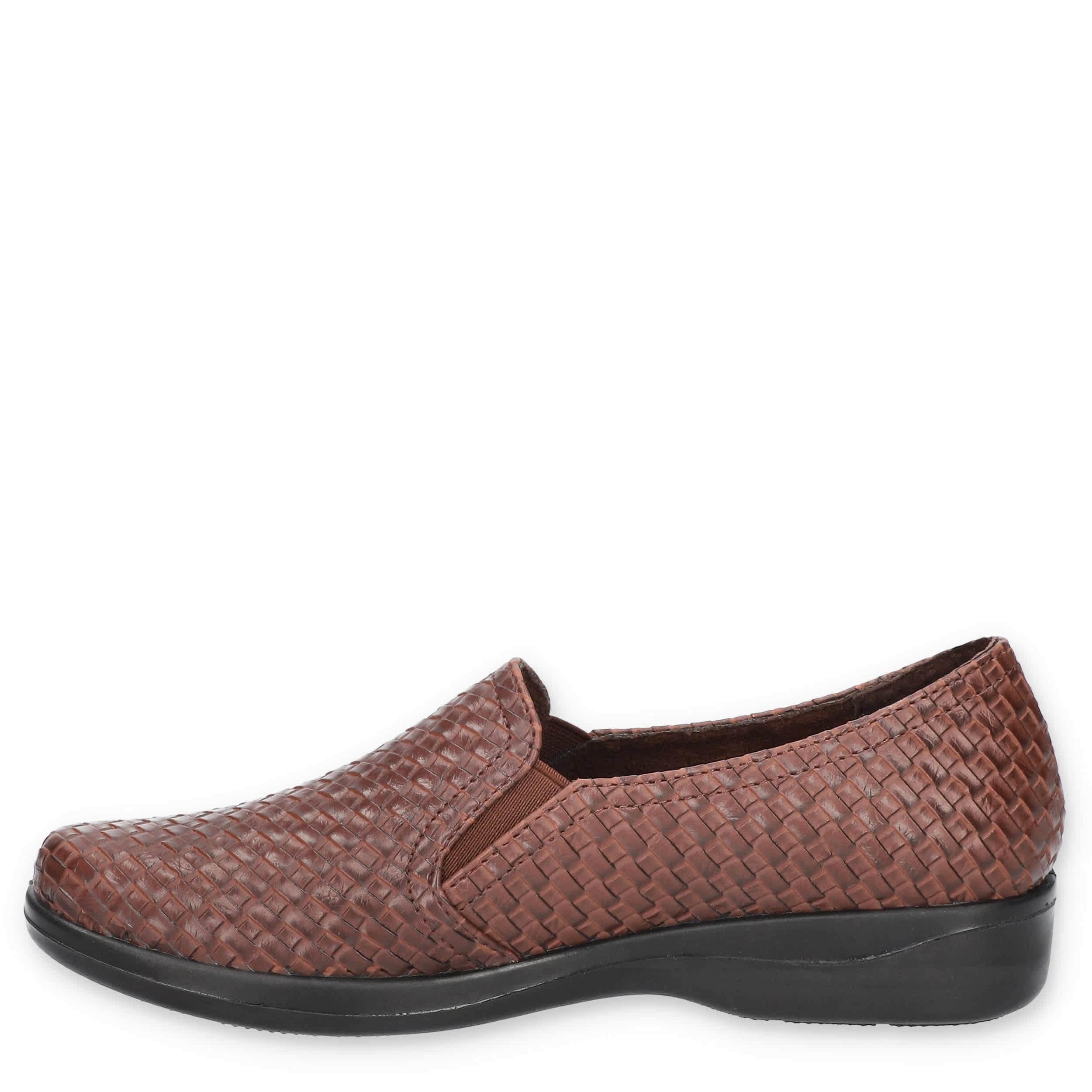 Go for something a little different with the Eternity women's loafer from Easy Street. Featuring a woven embossed upper with elastic inserts for a secure fit, this slip-on is trendy, but casual. The footbed cushions your foot while the synthetic outsole moves with you.