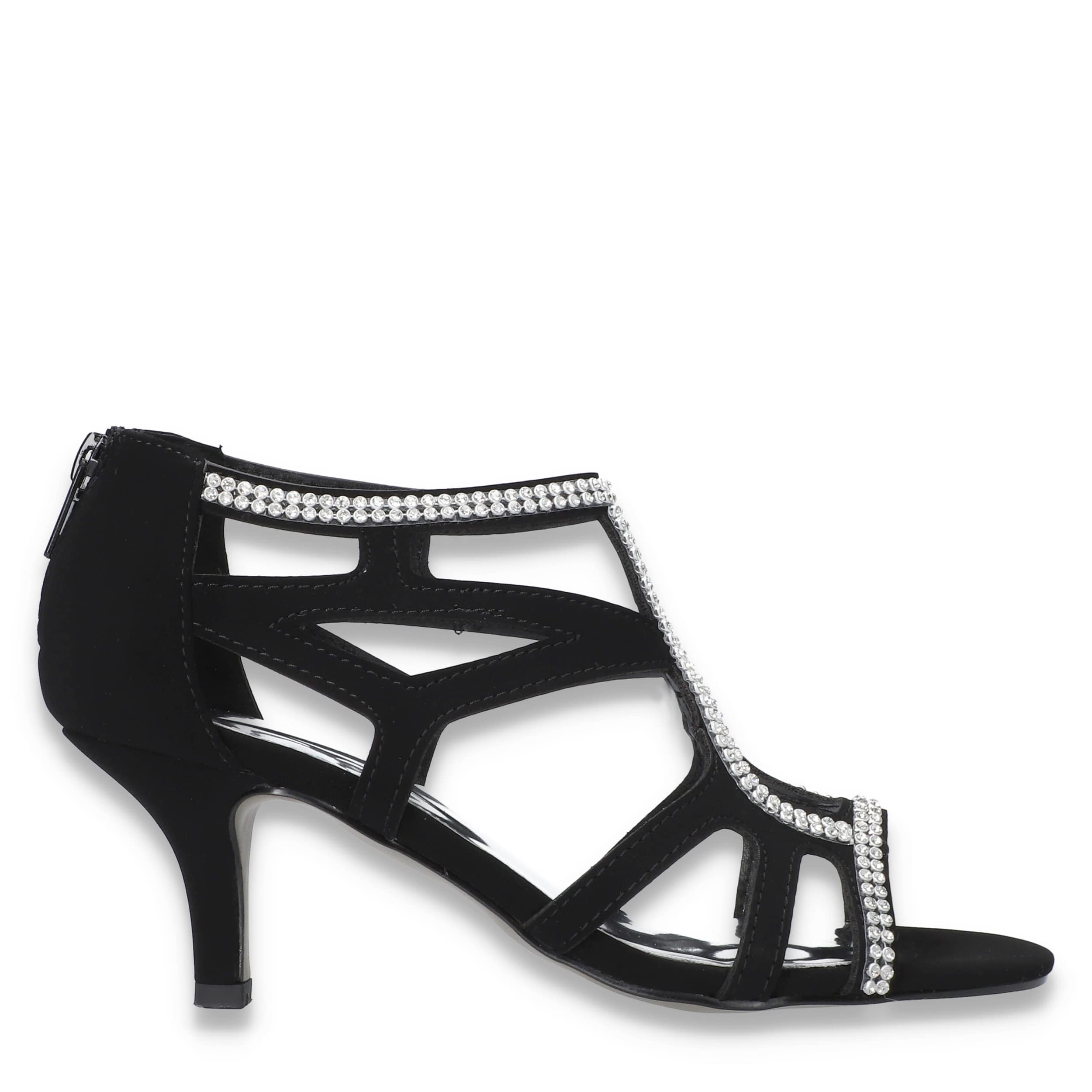 Just wait for the compliments in the Easy Street Flattery women's sandal. With a faux suede upper and caged design, this rear zip heel also has an optional embellished trim that adds even more dazzle to any dressy look. The cushioned footbed & Dance Flex sole comfortably put you in the right mood for a confident night out.