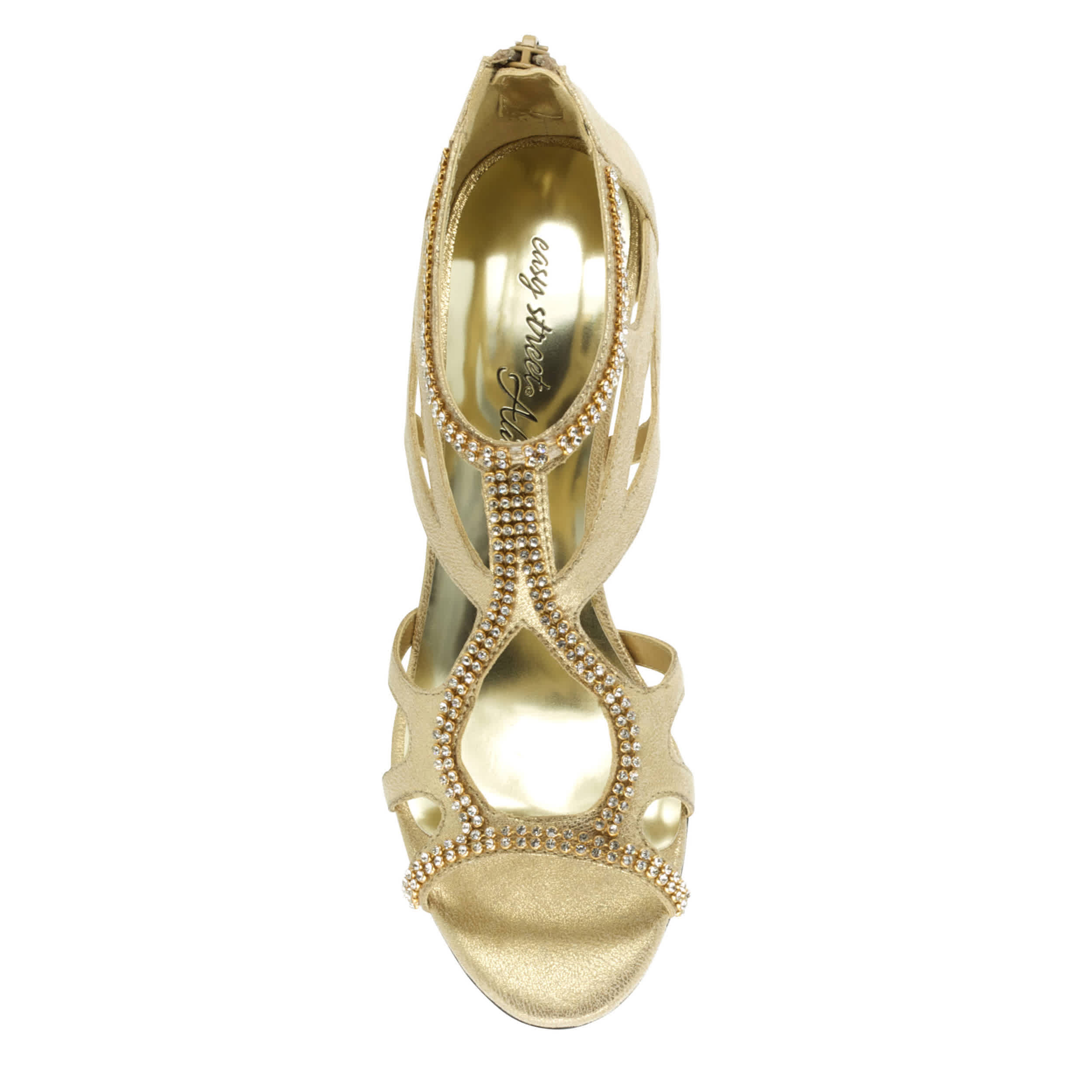 Just wait for the compliments in the Easy Street Flattery women's sandal. With a synthetic upper and caged design, this rear zip heel also has an optional embellished trim that adds even more dazzle to any dressy look. The cushioned footbed & Dance Flex sole comfortably put you in the right mood for a confident night out.