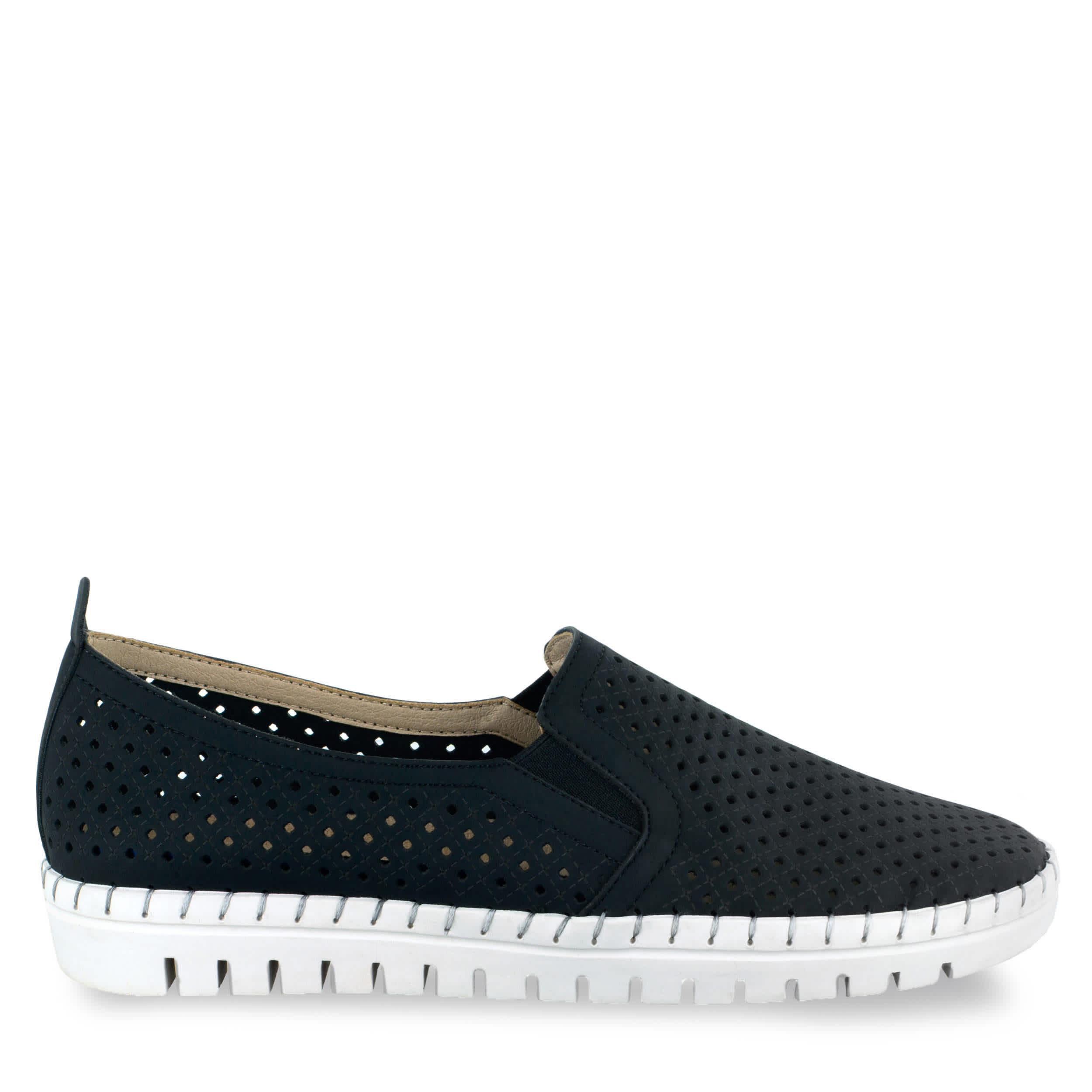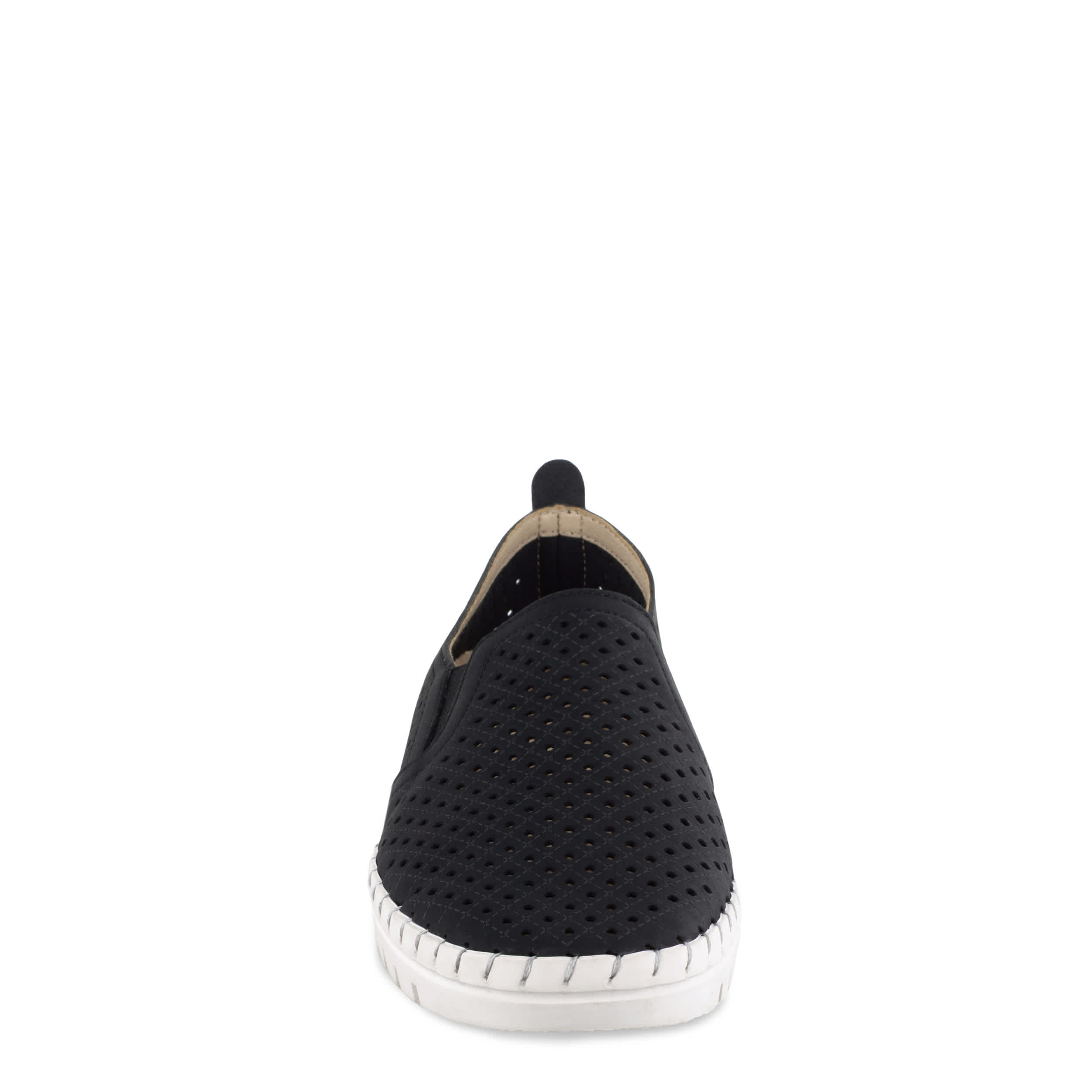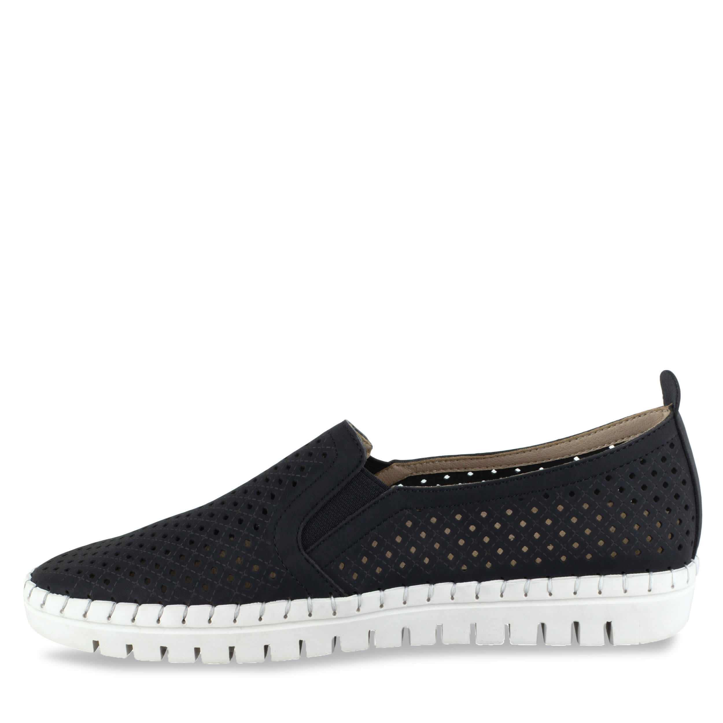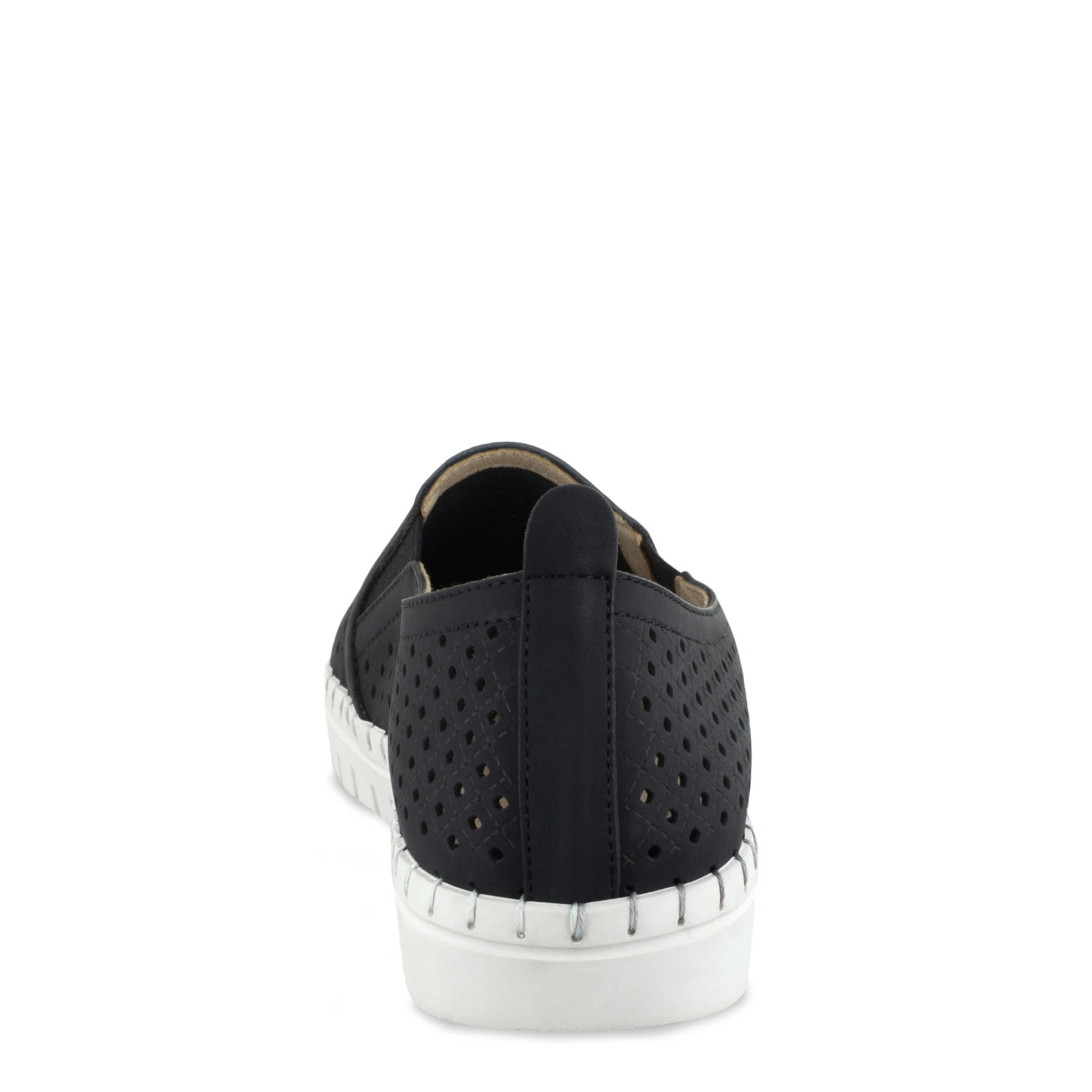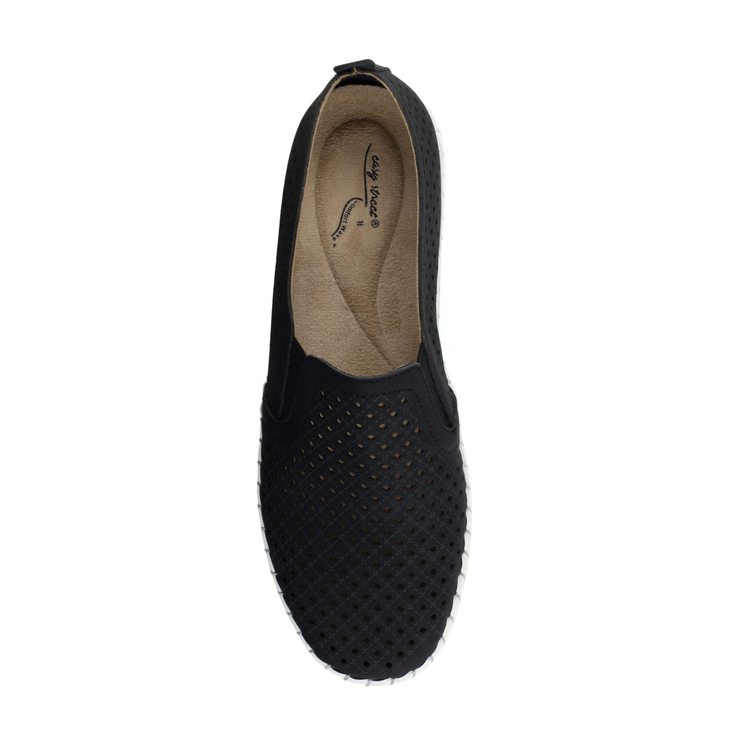 Keep your fashion choices light and breezy with the Easy Street Fresh women's slip-on sneaker. With a faux leather upper and perforated design, this slip-on offers breathability in warm weather. The padded footbed and rubber outsole comforts your foot and adds bounce.