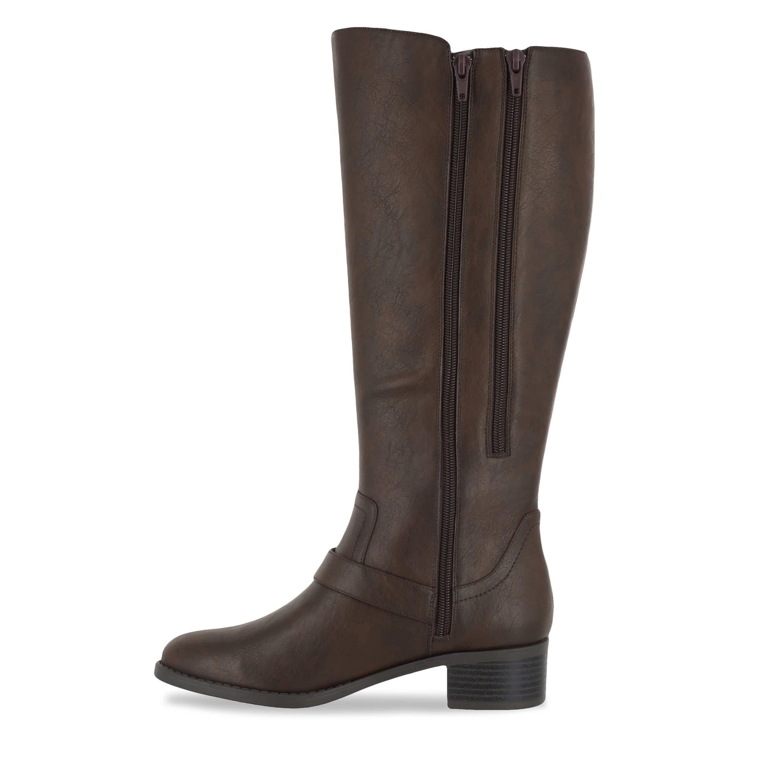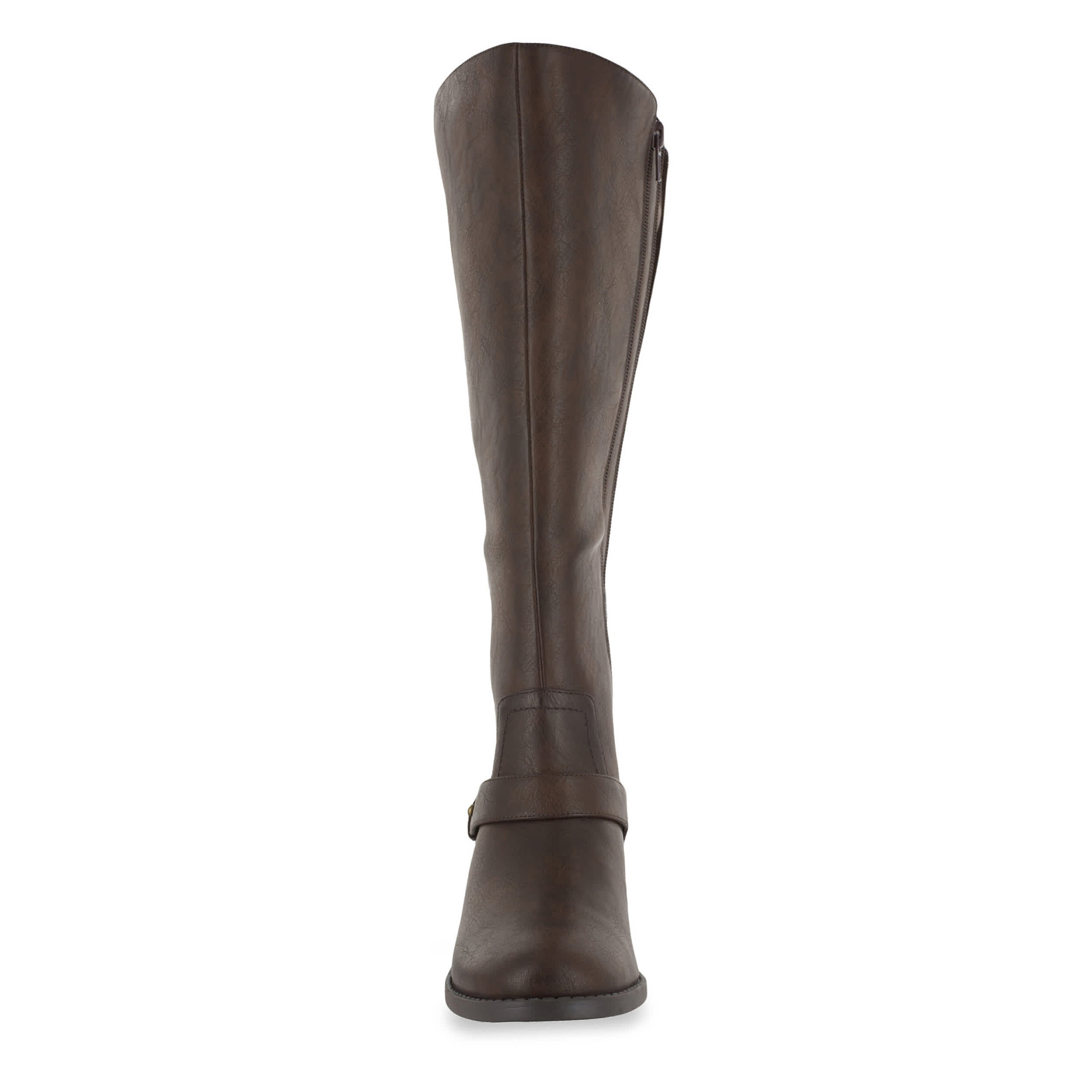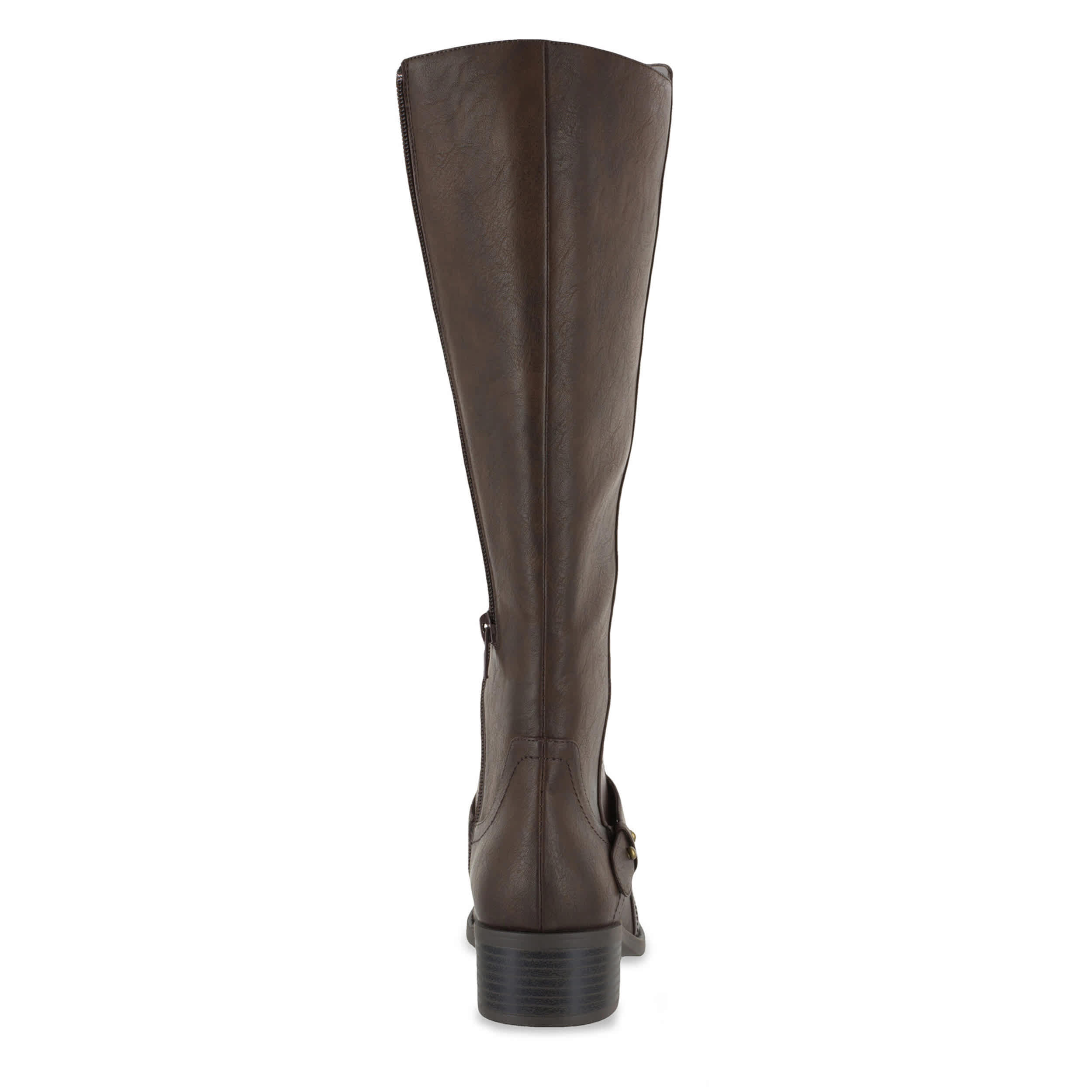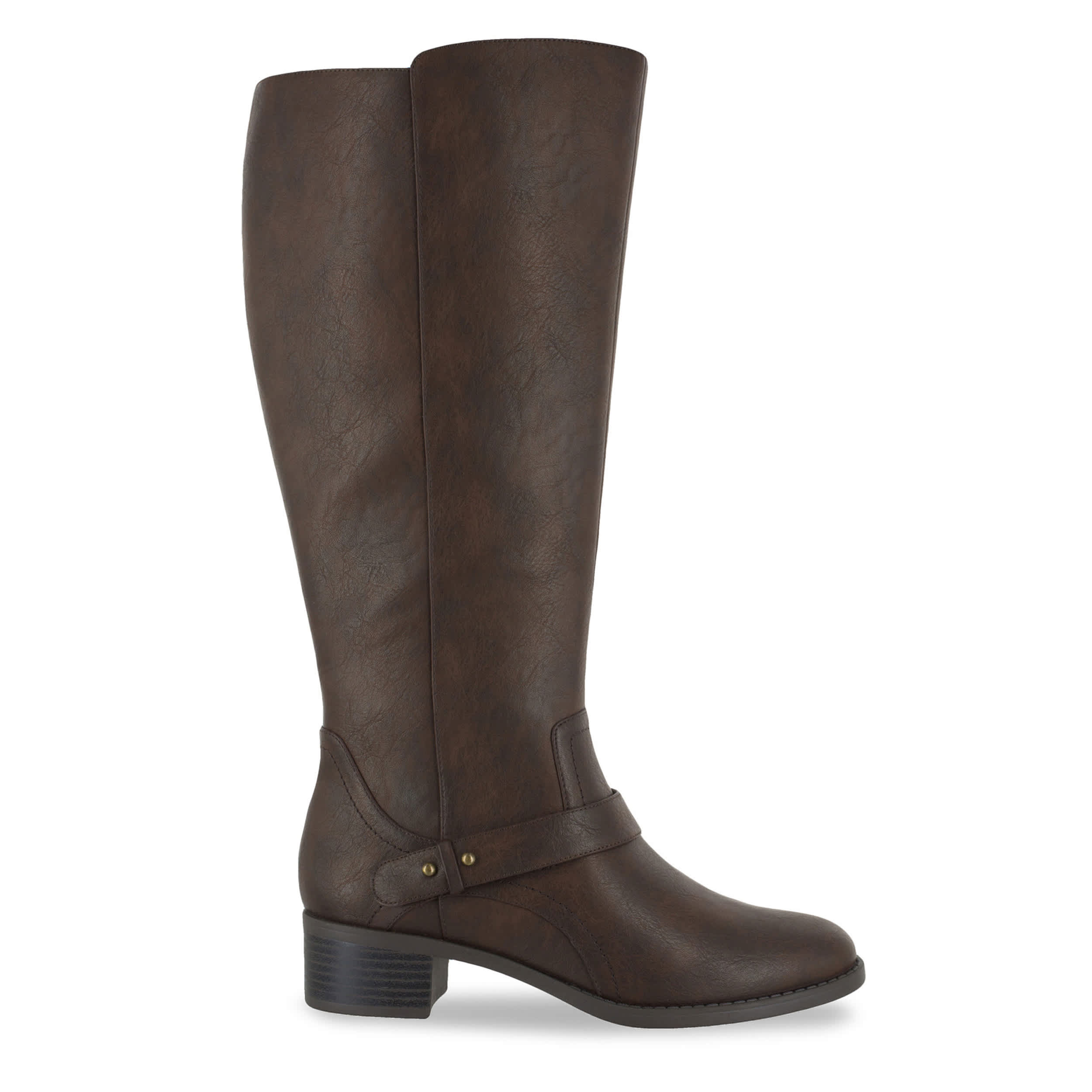 Ride (or step) in style with this Easy Street Jewel tall boot. With a faux leather upper featuring a refined style that is easy to pair with any outfit, this inside zip boot also makes room to adjust calf size with a zippered gusset panel. A nice blend of modern and Western, the stitching details accent the overlay strap that pulls the look together.