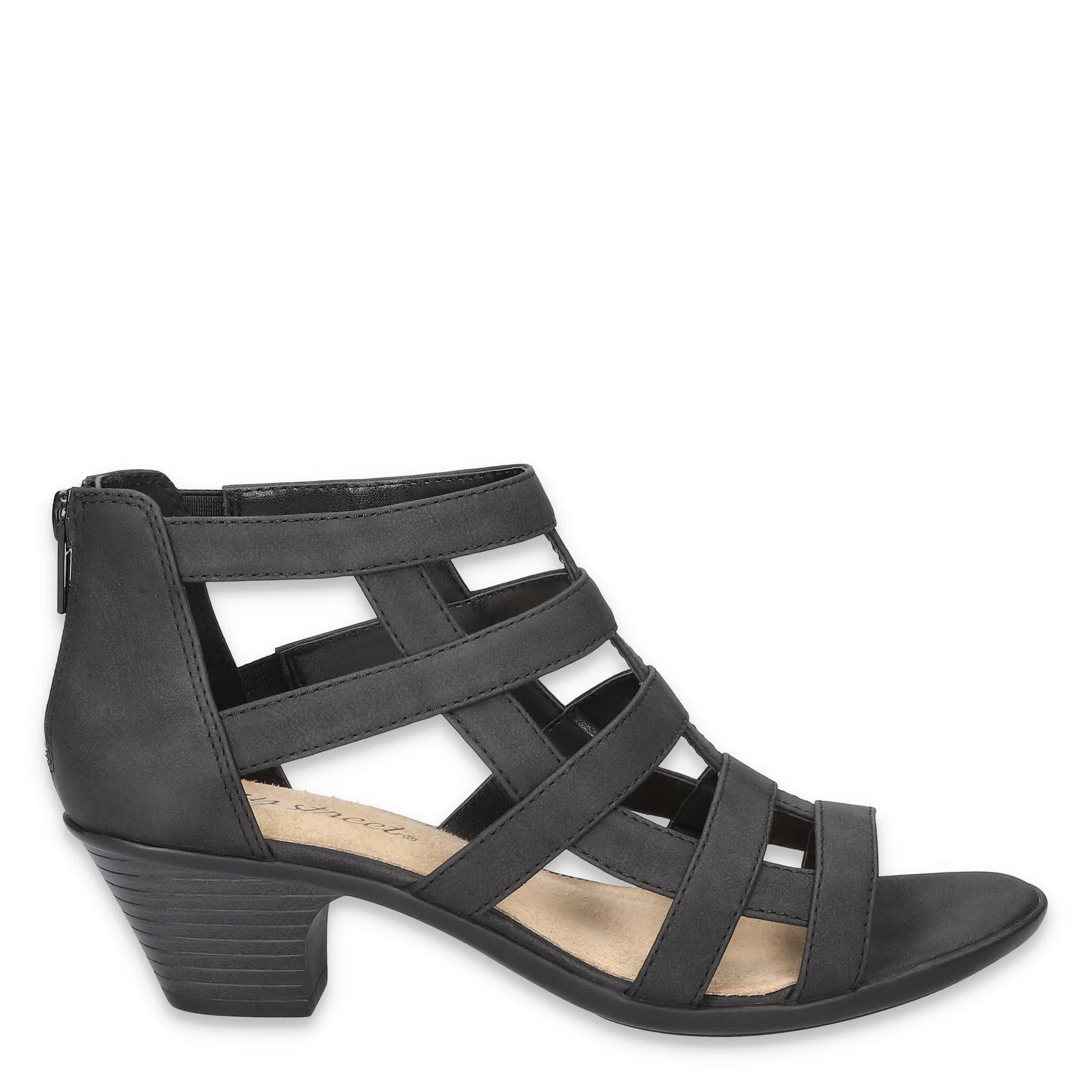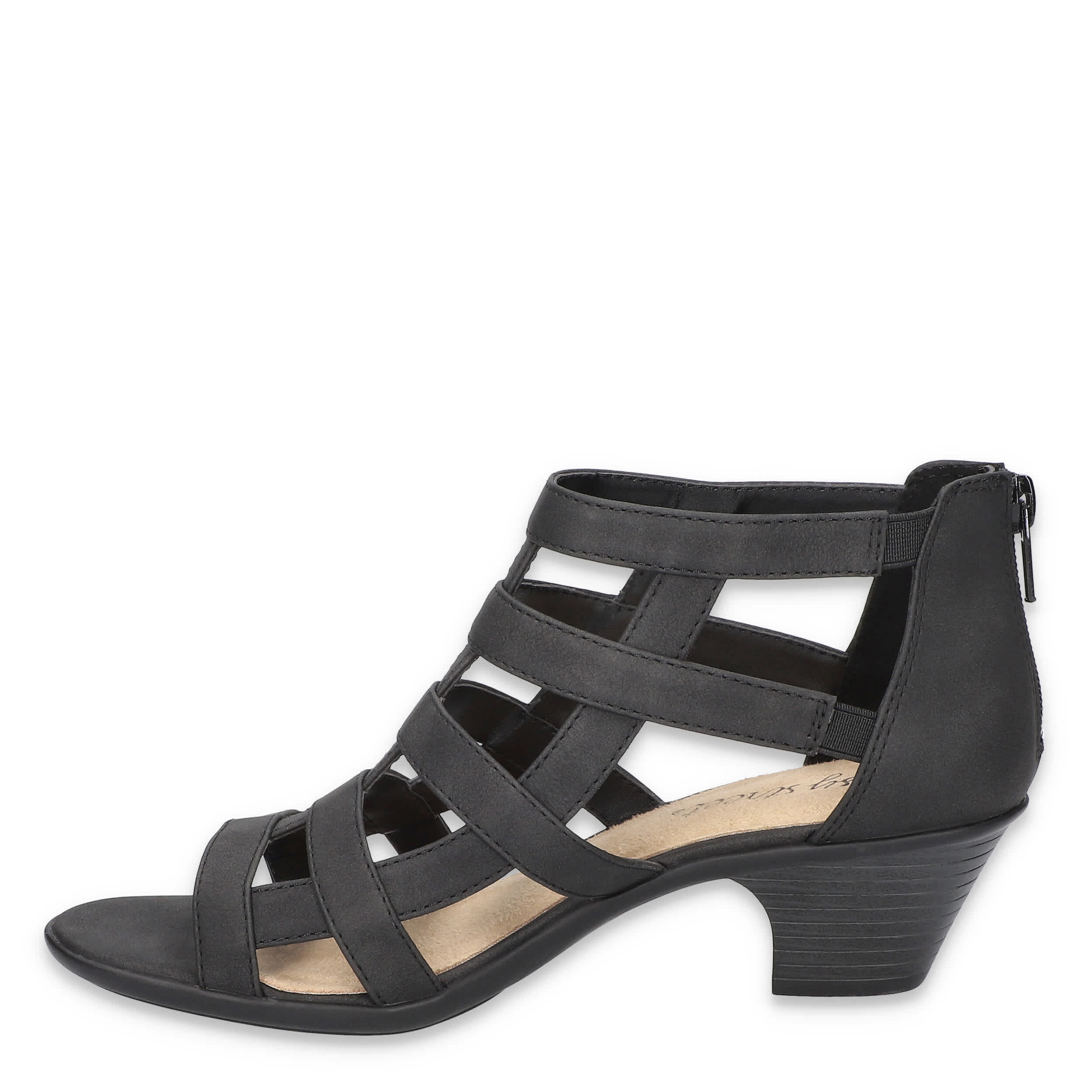 Summer fashion can still be tough, yet stylish in the Easy Street Marg women's sandal. With a faux leather upper and cage-like structure, this rear zip gladiator sandal gives edge and breathability to amp up all of your warm weather outfits. The footbed offers cushioning while the stacked heel adds just enough lift.