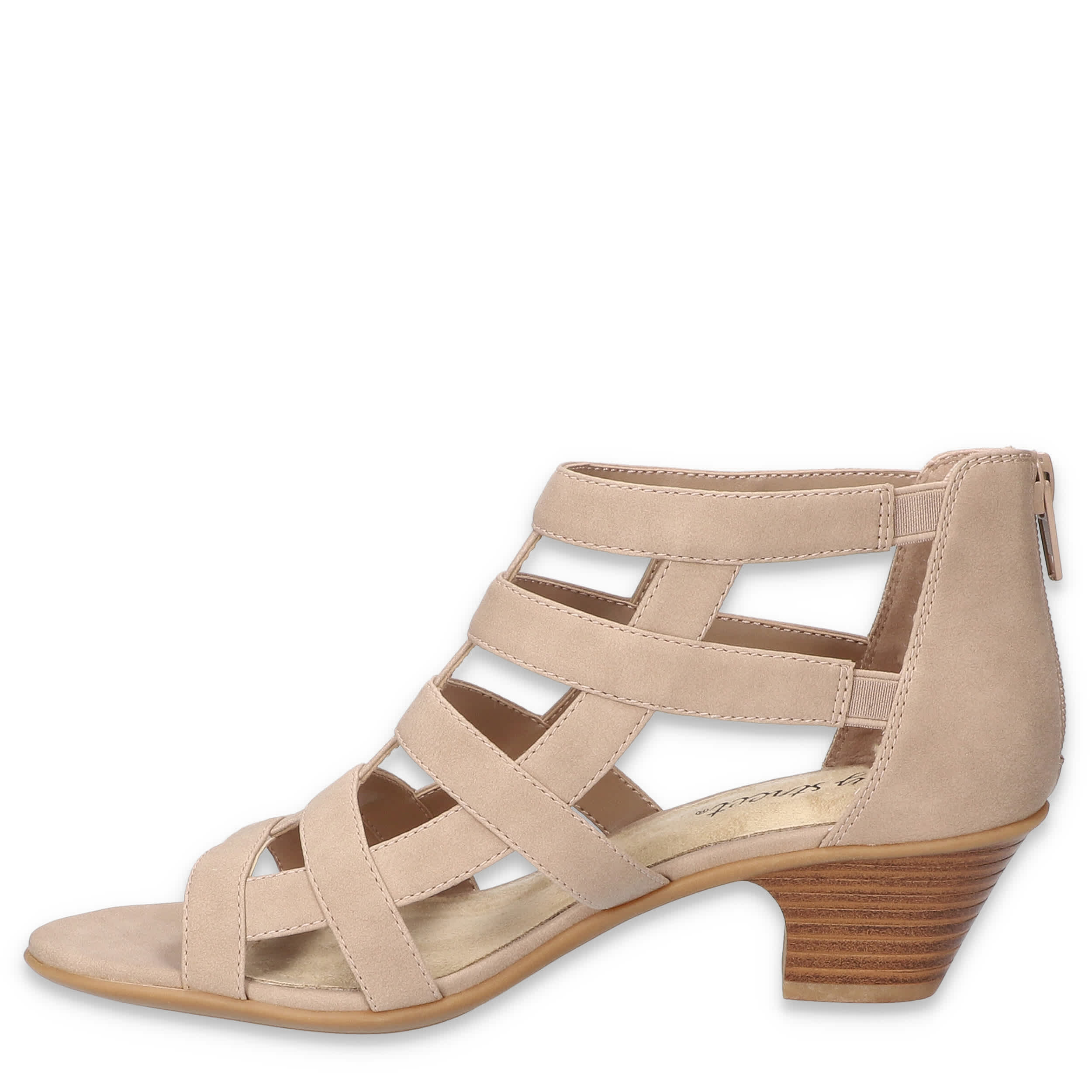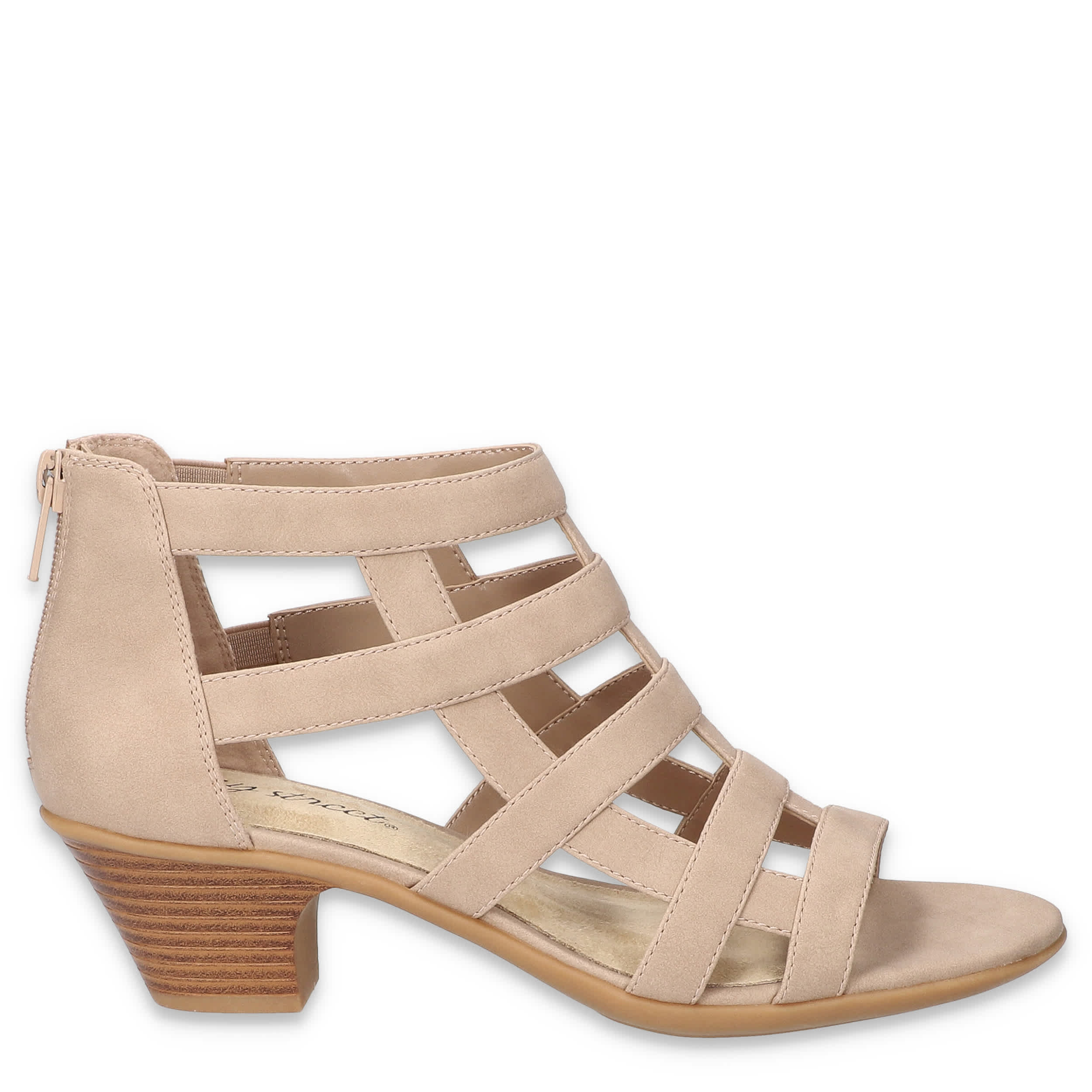 Summer fashion can still be tough, yet stylish in the Easy Street Marg women's sandal. With a faux leather upper and cage-like structure, this rear zip gladiator sandal gives edge and breathability to amp up all of your warm weather outfits. The footbed offers cushioning while the stacked heel adds just enough lift.